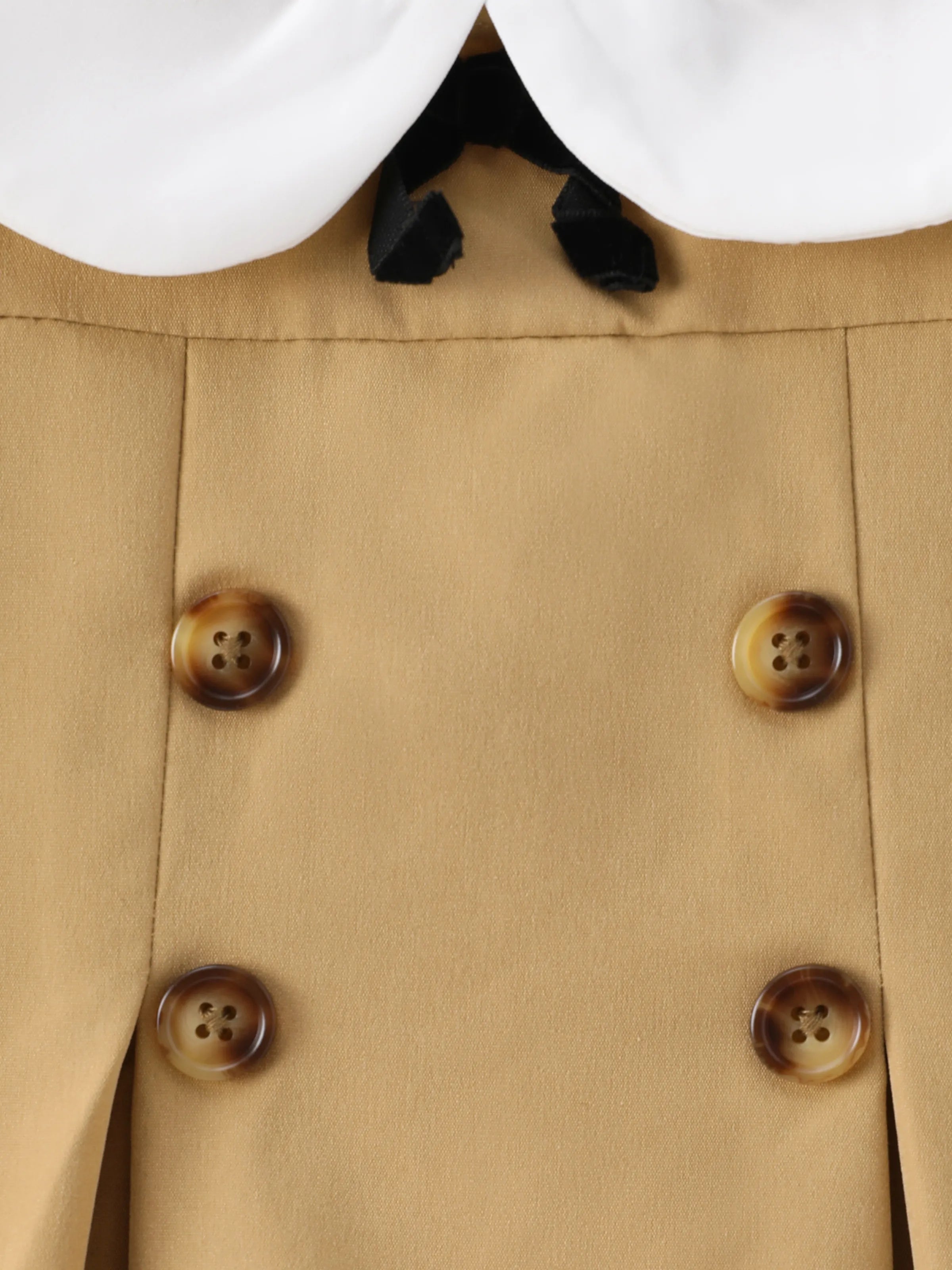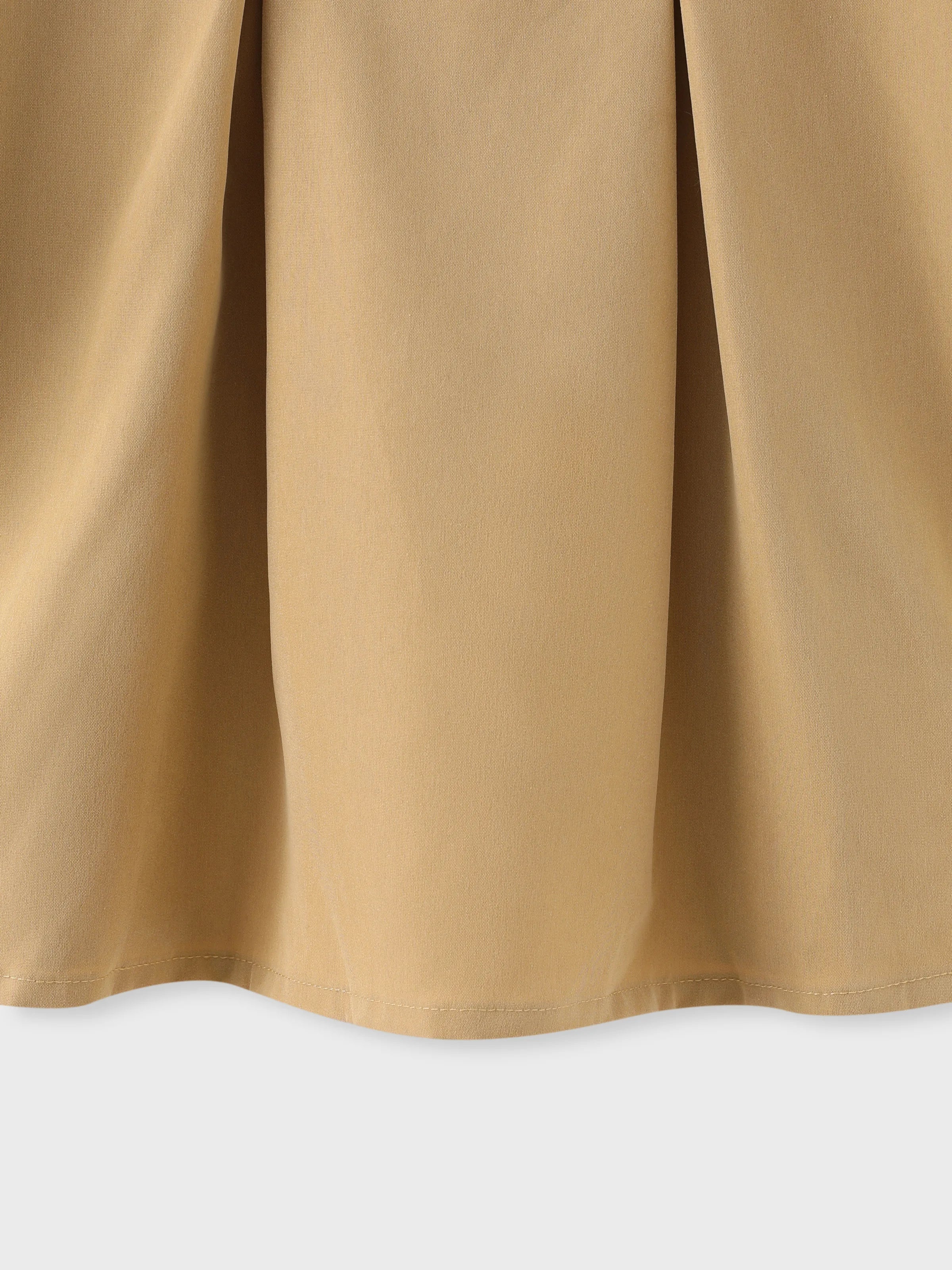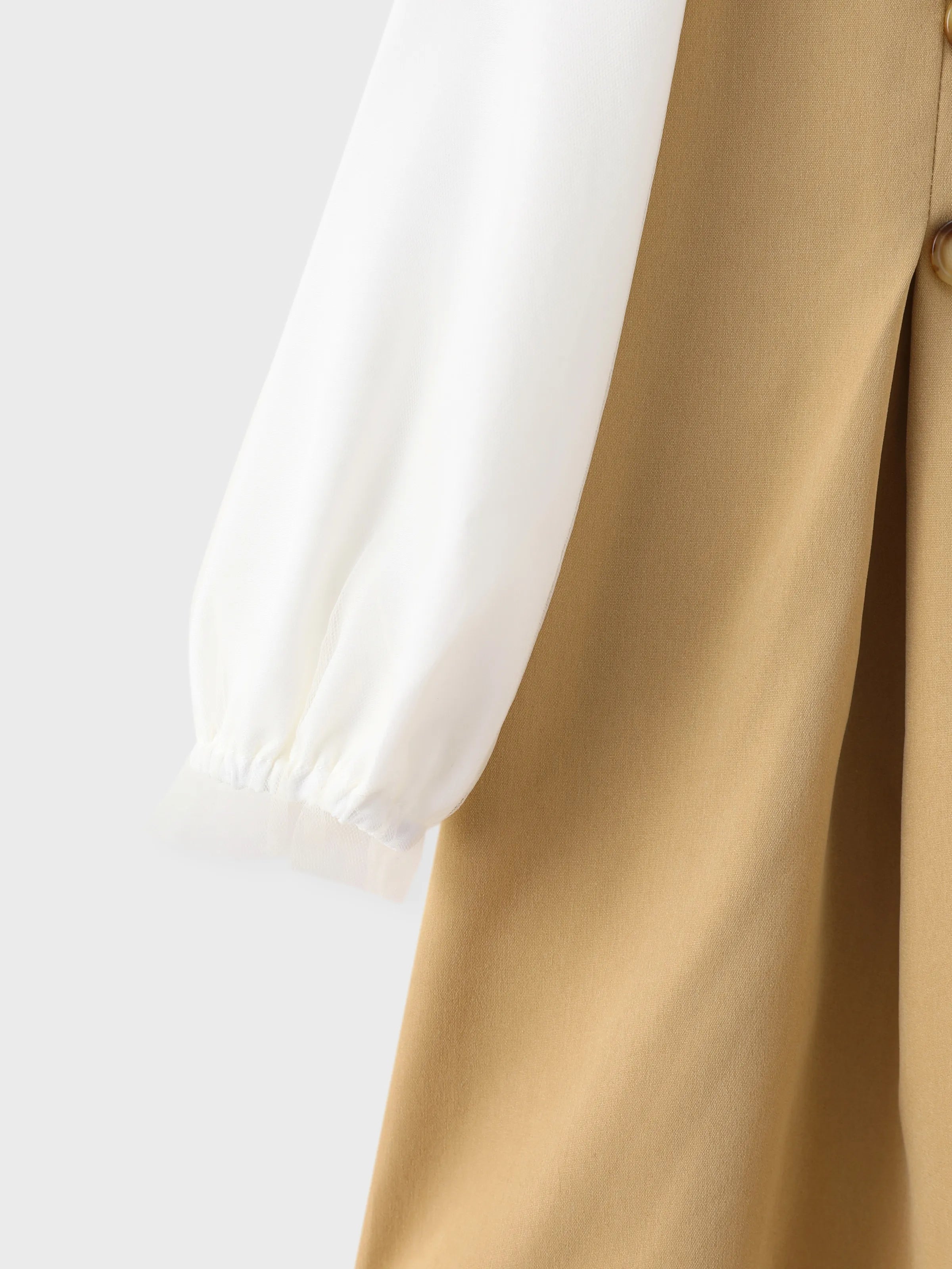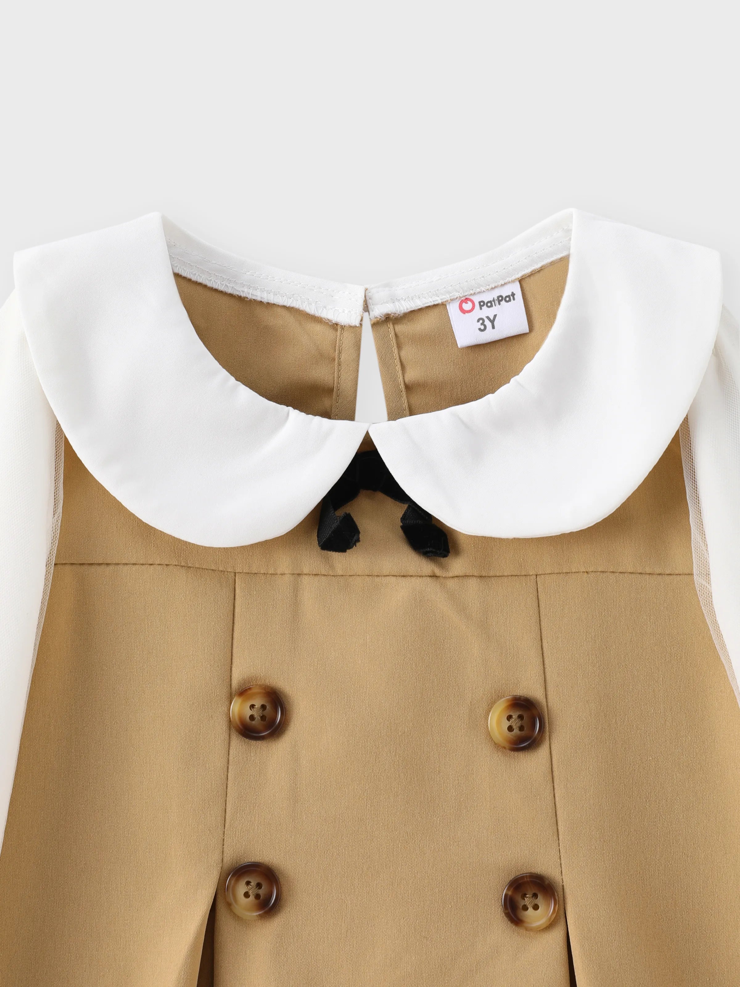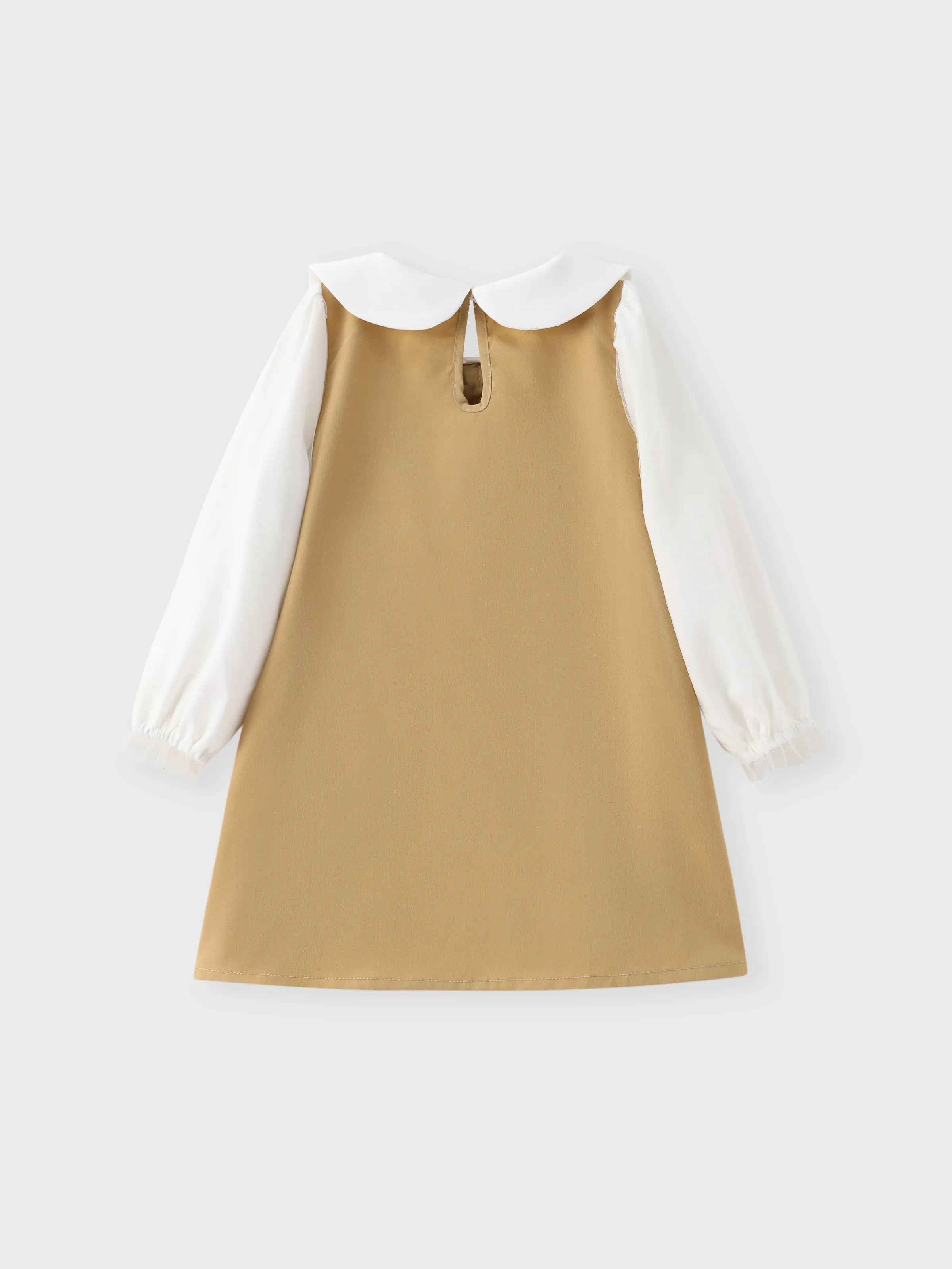 Vestido caqui de manga larga de malla con diseño de lazo y cuello de muñeca para niña pequeña