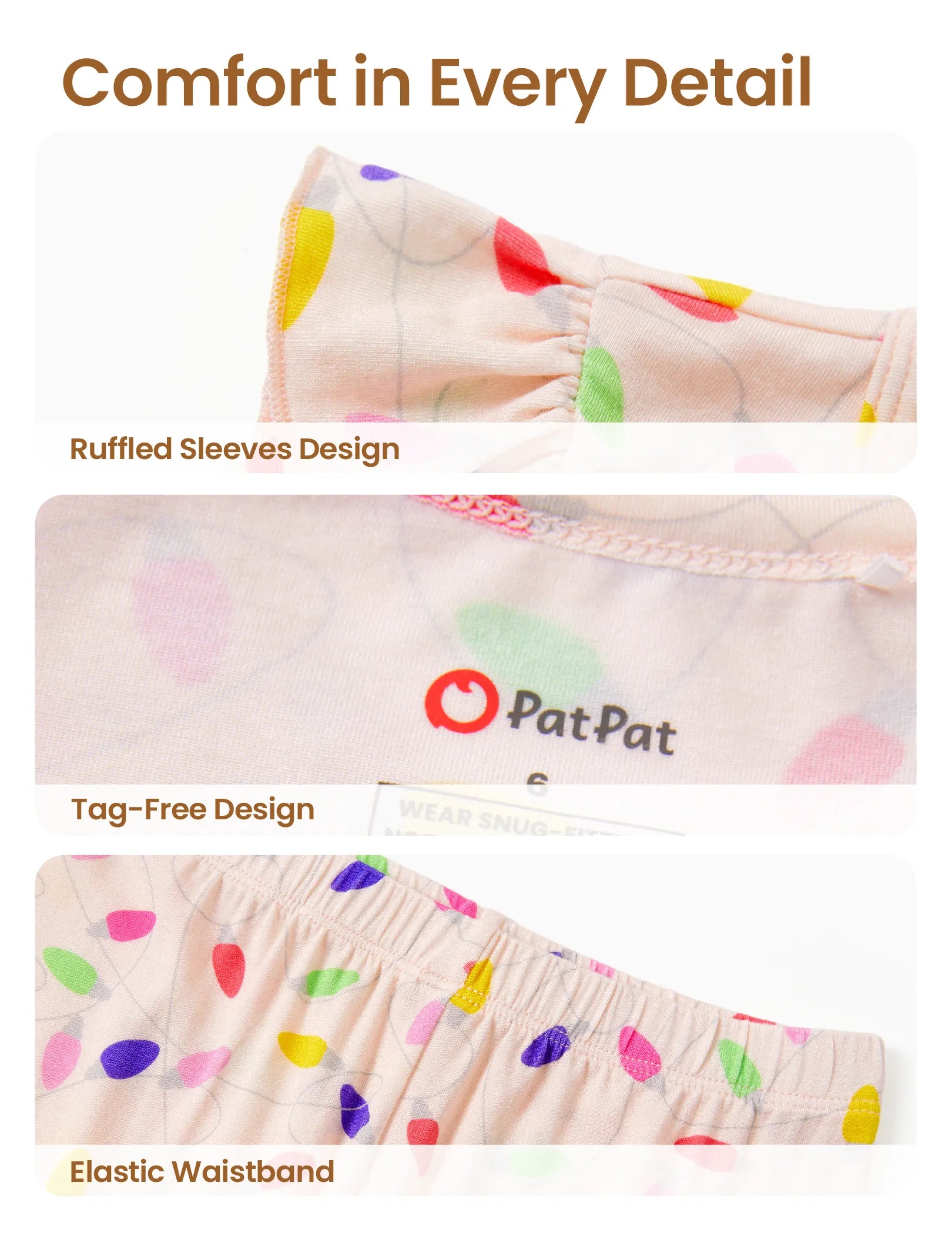 【Diseño adorable y encantador】Diseñado con un dulce fruncido con volantes y escote redondo, este conjunto de pijama presenta estampados y colores alegres que a toda niña le encantarán. Combinación de encanto divertido y estilo cómodo.