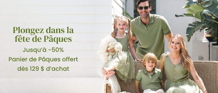 Notre collection de Pâques réunit des tenues coordonnées pour bébés, enfants et adultes en un seul endroit, rendant les achats familiaux simples et sans stress. Chaque article est vendu séparément, vous permettant de sélectionner la bonne taille pour chaque membre de la famille. Conçue pour le confort printanier, la collection propose des tissus en coton doux et mélanges de coton qui sont respirants, légers et doux pour la peau — parfaits pour le temps plus chaud de Pâques. Des tableaux de tailles détaillés et des informations sur les tissus vous aident à magasiner en toute confiance.
