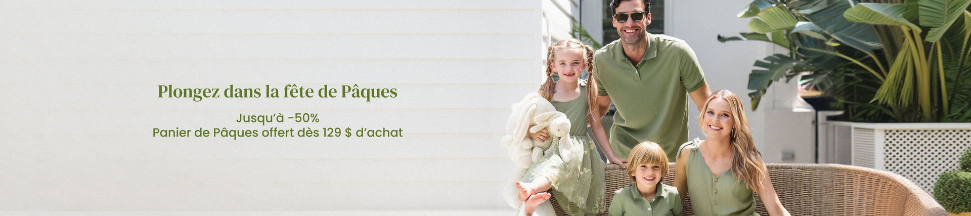 Collection de Pâques sur PatPat allant des tenues de lapin de Pâques pour enfants aux tenues printanières assorties pour la famille pleines de couleurs et de plantes, ainsi que des ensembles mode sur fond de printemps. Que vous alliez au service religieux du dimanche de Pâques (comme nous), que vous célébriez le premier Pâques de votre bébé ou que vous vouliez simplement un moment parfait pour une photo de famille, PatPat a les solutions pour vos vêtements de Pâques qui sont de haute qualité et stylés. La collection a un thème de Pâques unmistakable, avec des lapins, des œufs, des fleurs et les tons doux rose, jaune, vert associés à la saison.