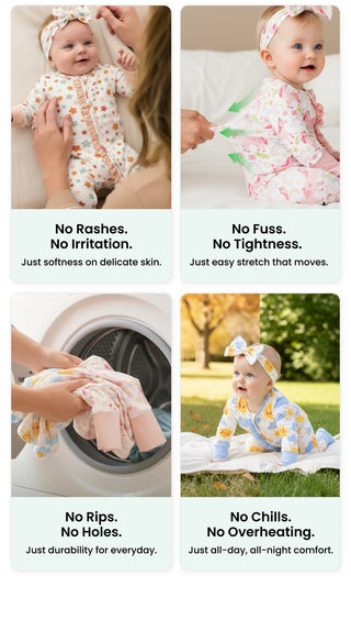 Sublimez la garde-robe de votre chambre avec des vêtements bébé en bambou qui répondent à tous les critères : douceur, durabilité et style. Découvrez dès aujourd'hui notre gamme complète de vêtements de nuit bio pour bébé et offrez à votre bébé la douceur qu'il mérite. Respirants, biodégradables et conçus pour durer, chaque câlin doit être aussi agréable.