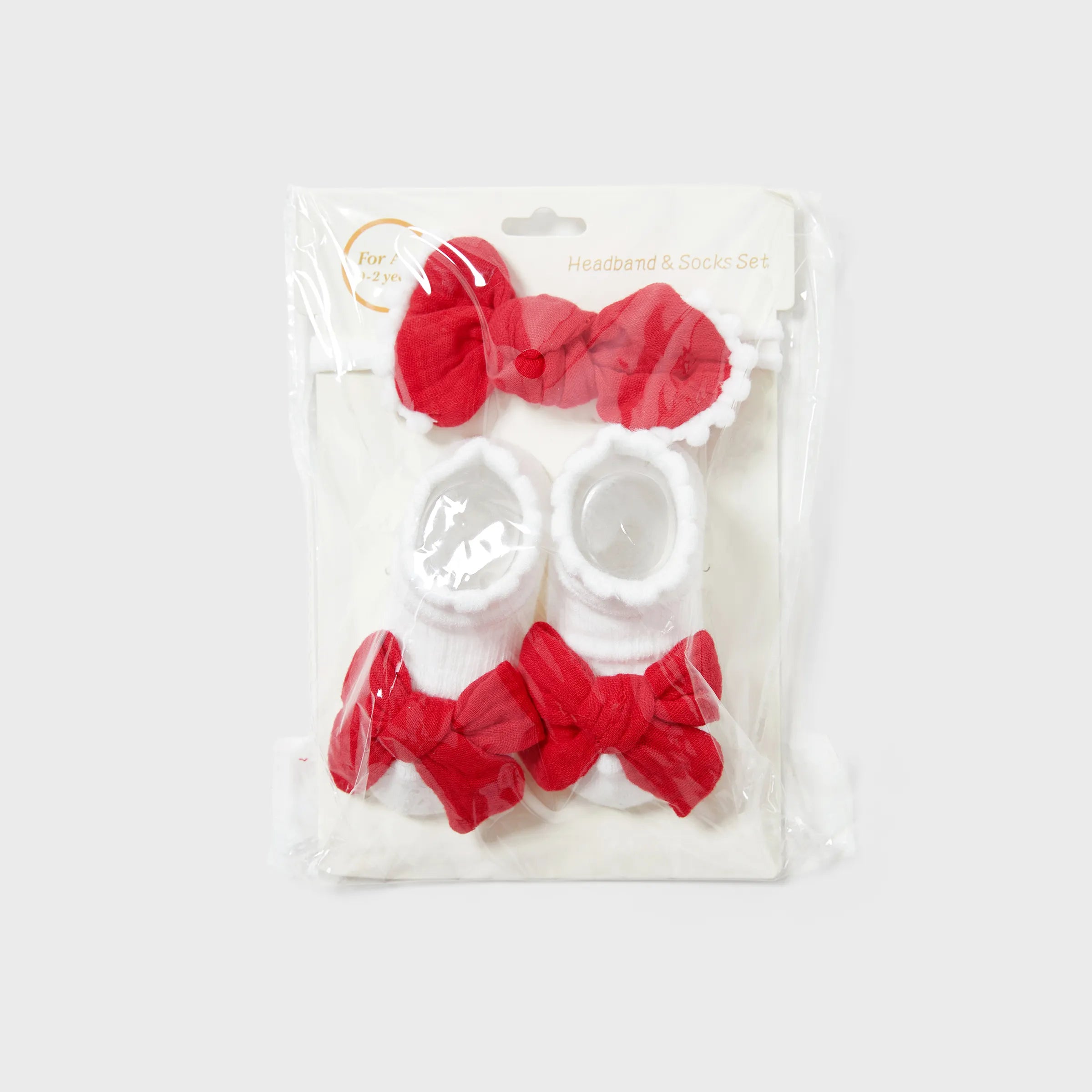 Lot de 2 ensembles bandeau et chaussettes à fleurs pour bébé fille, rouge