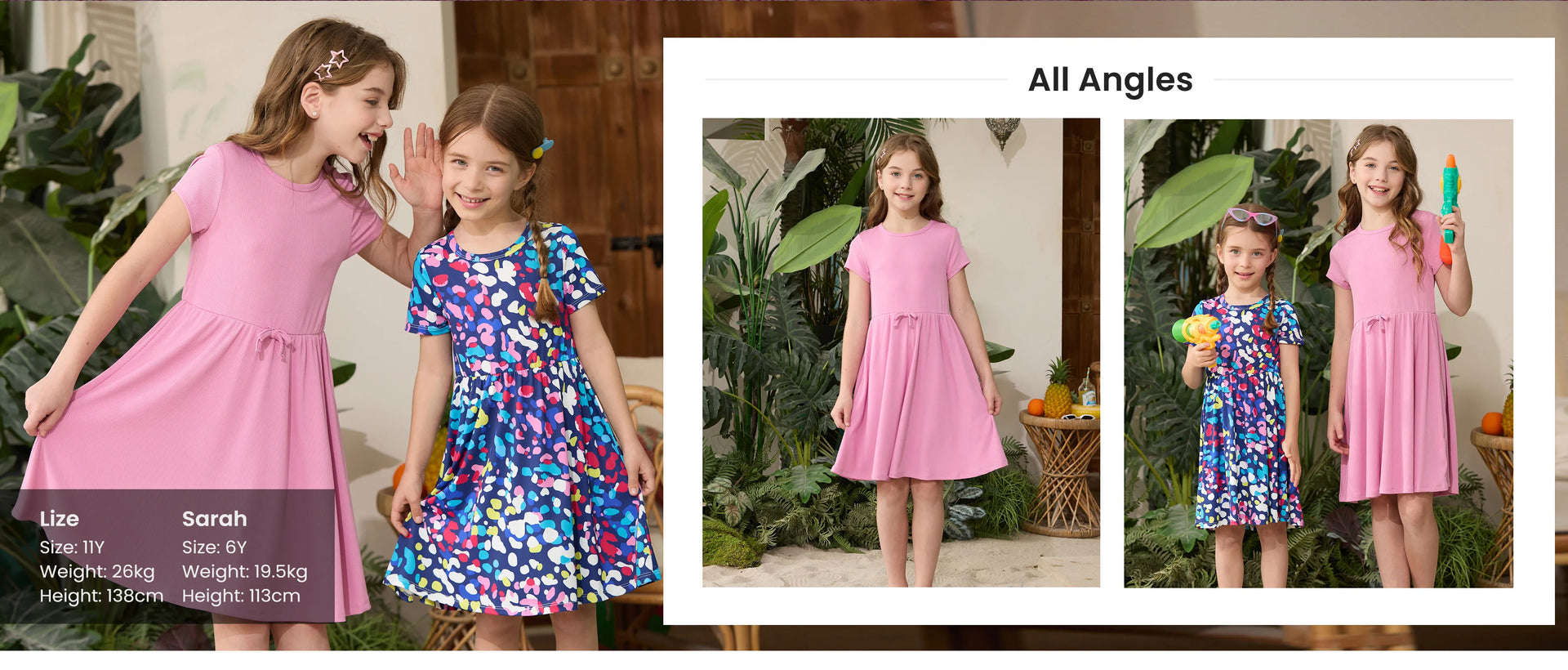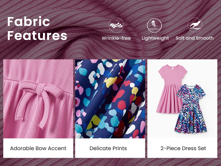 Lot de 2 robes décontractées imprimées et unies pour petite fille, violettes