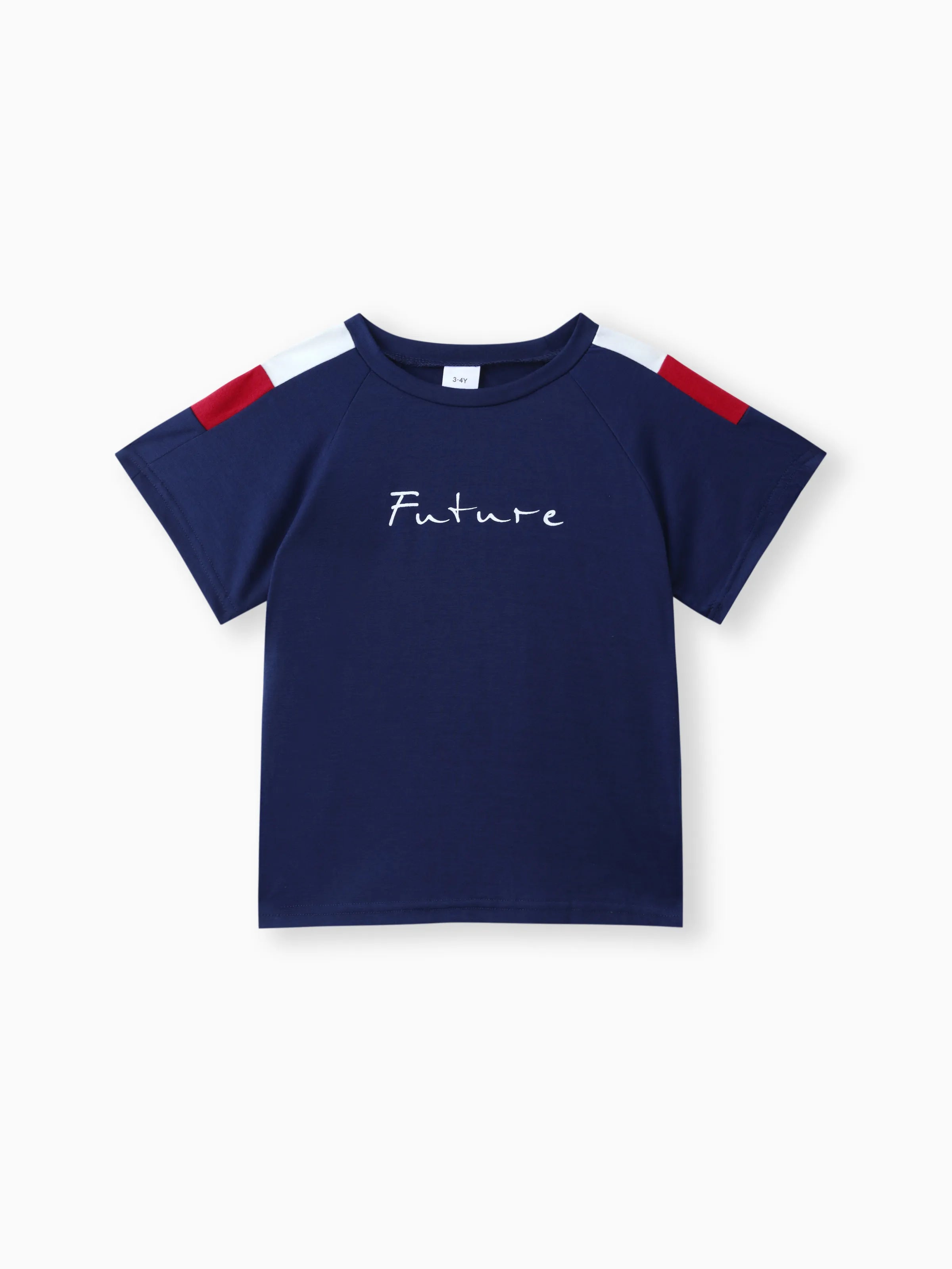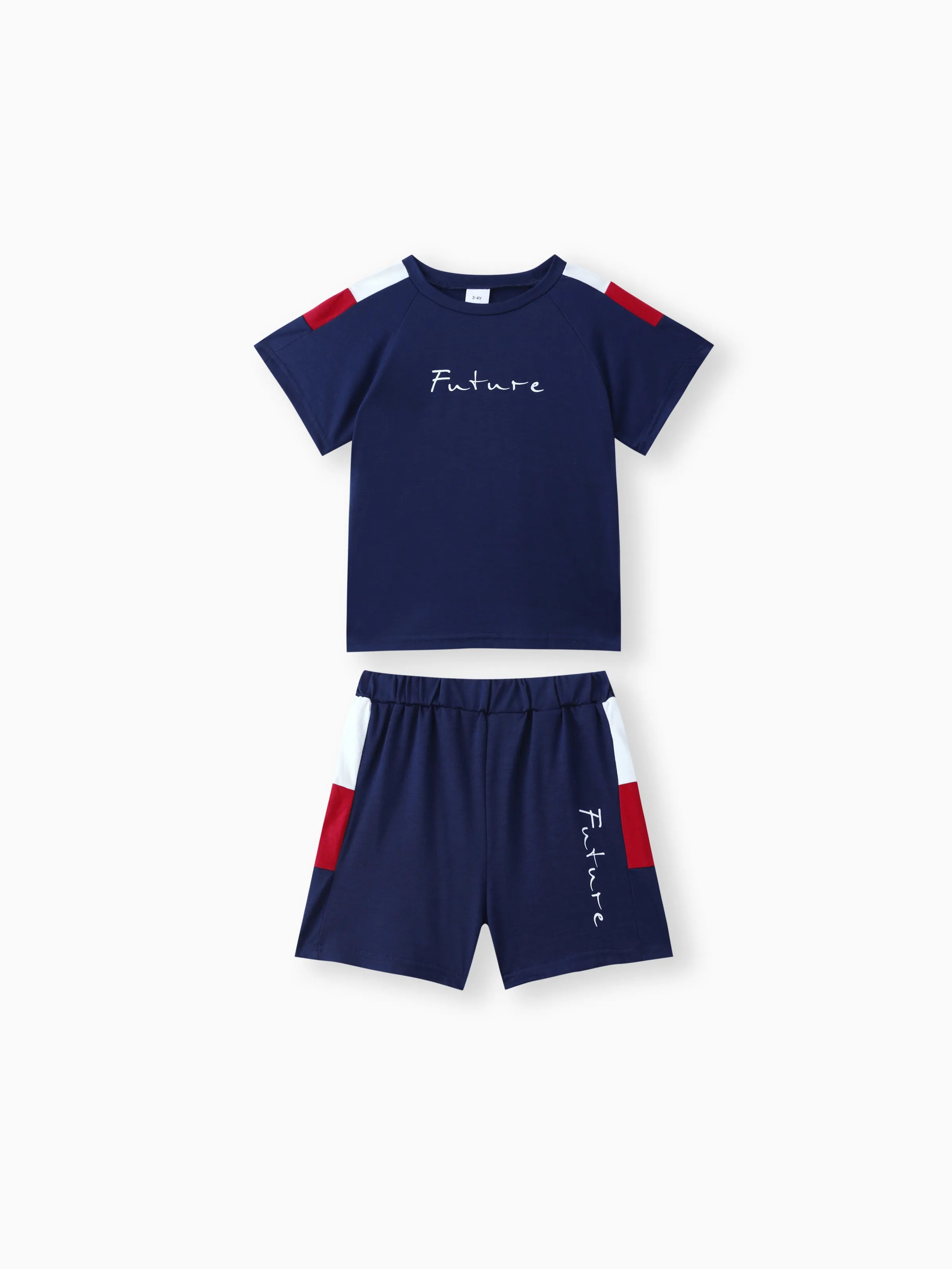 Ensemble t-shirt et short décontractés à imprimé lettres colorblock pour tout-petits.