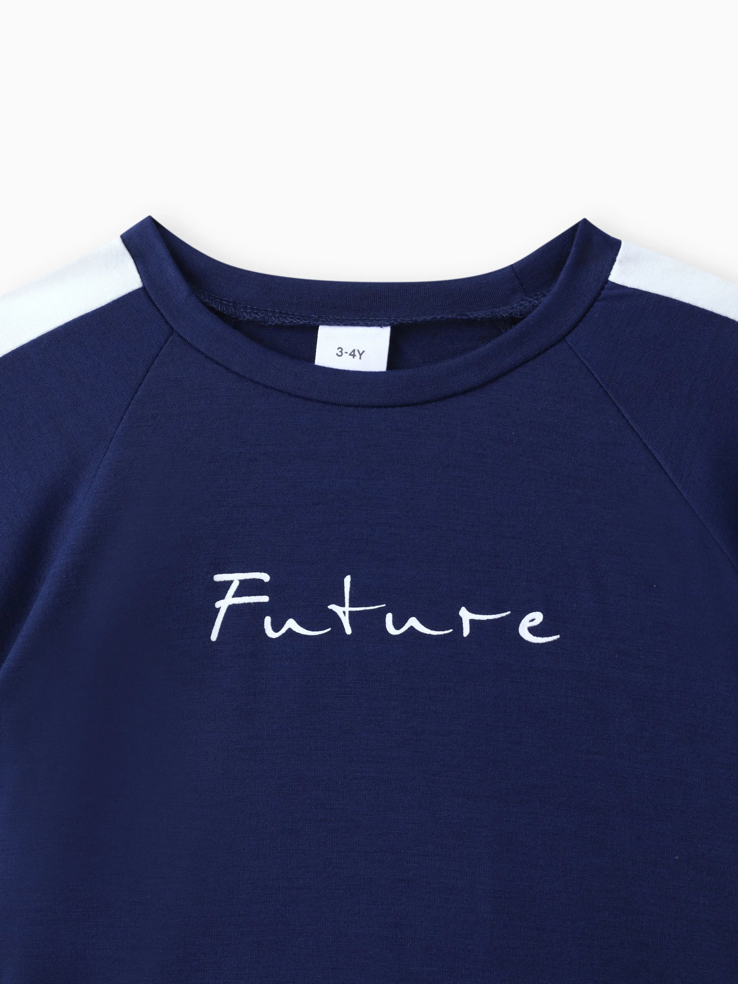 Ensemble 2 pièces t-shirt et short décontractés à imprimé lettres colorblock pour tout-petit garçon, bleu foncé
