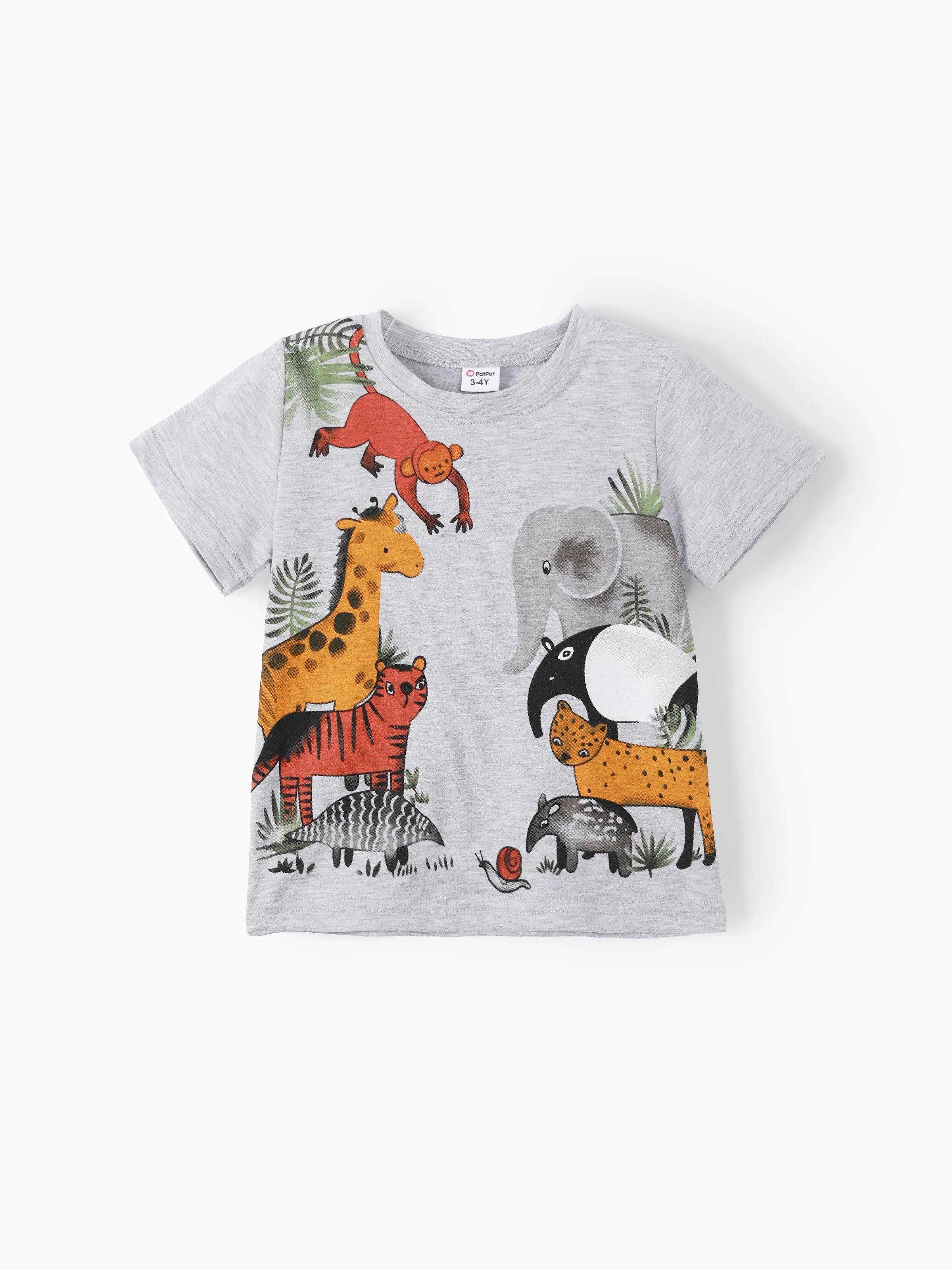 Ensemble 2 pièces t-shirt et short à imprimé animal ludique pour tout-petit garçon, gris