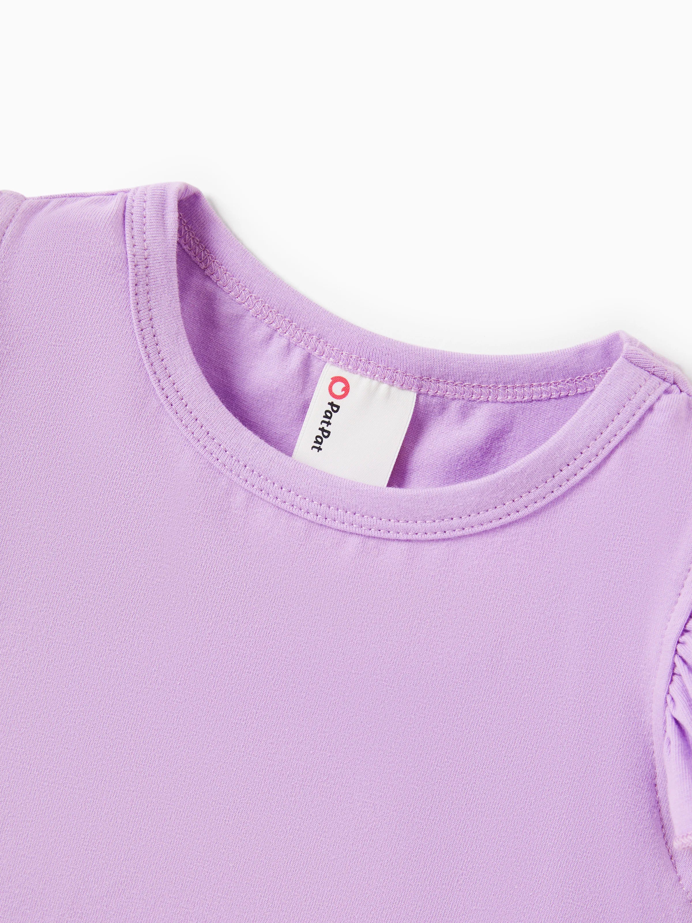 Ensemble 2 pièces pour petite fille : t-shirt à manches volantées et short rayé avec ceinture, violet clair