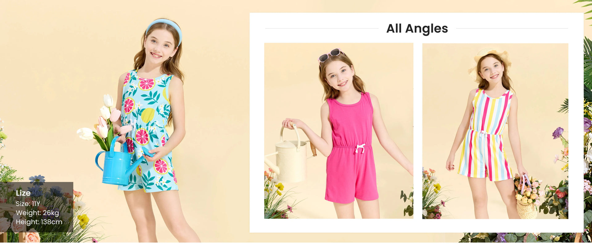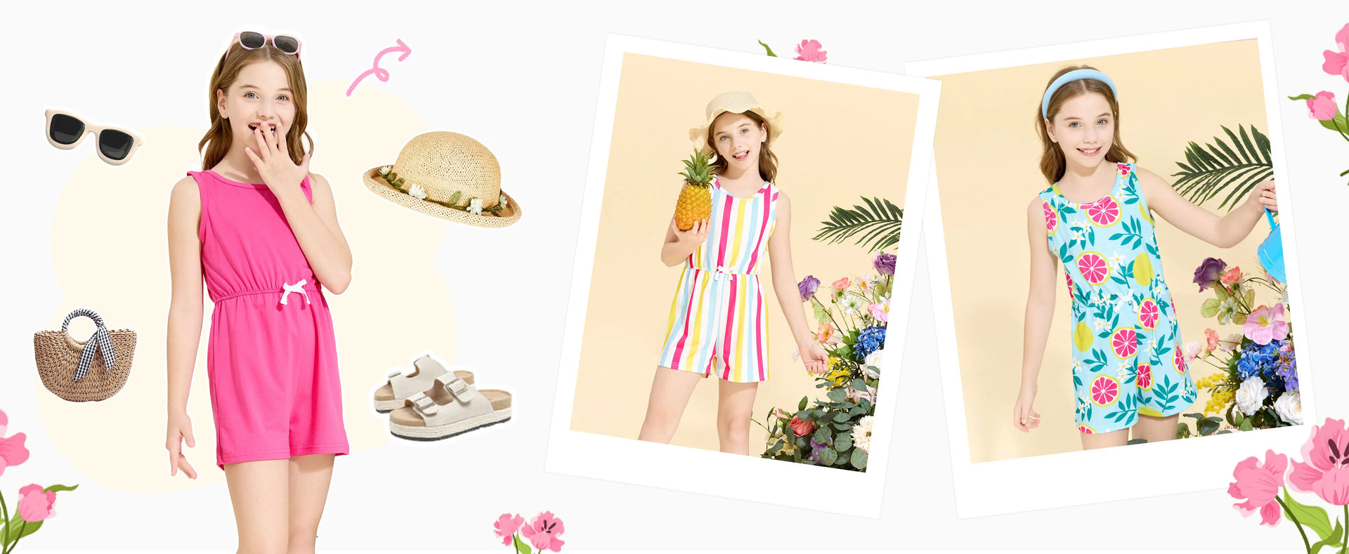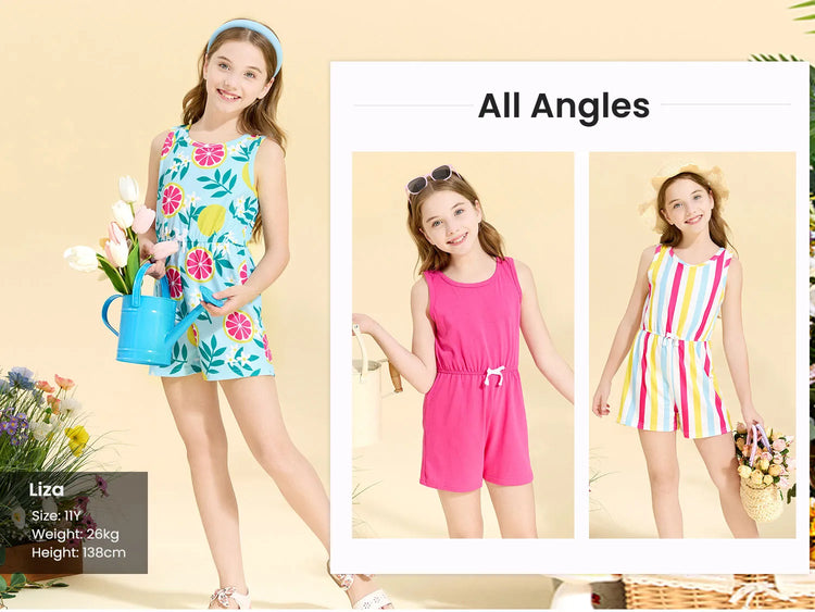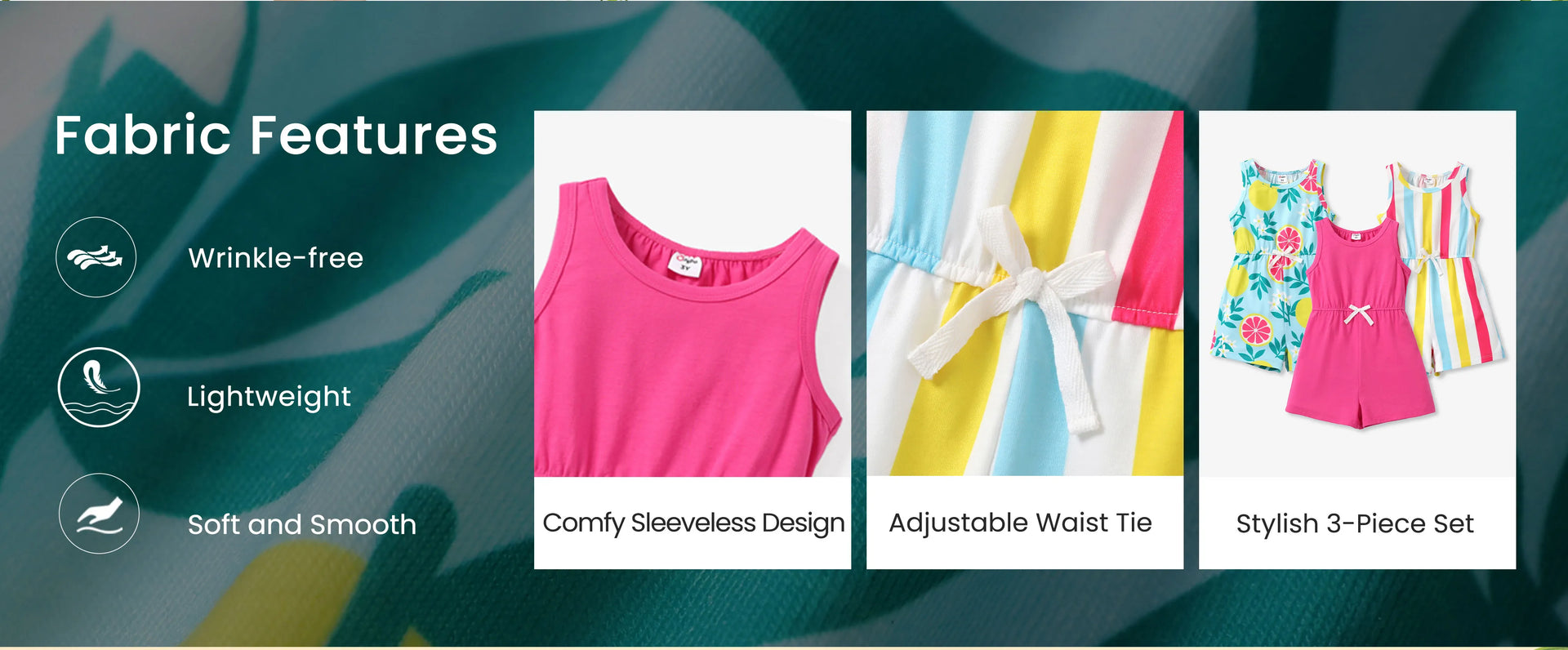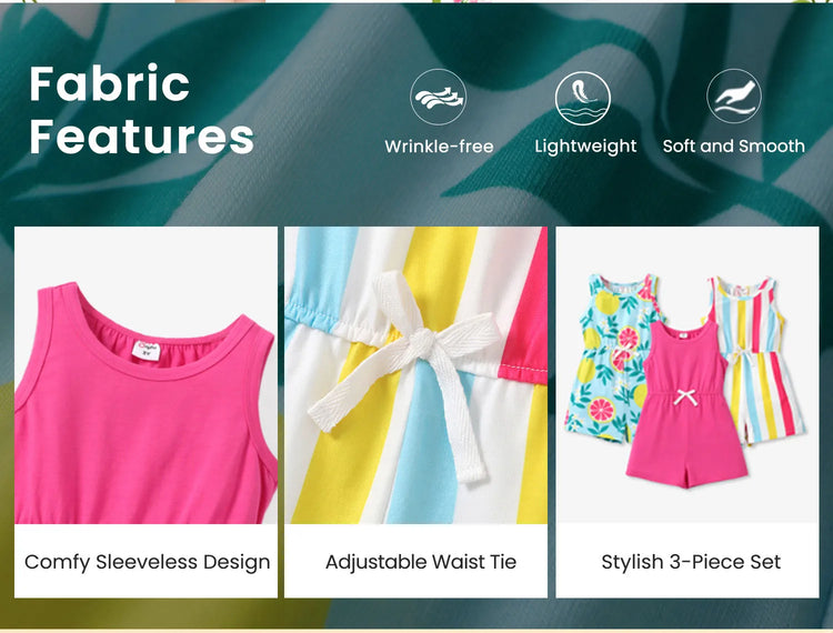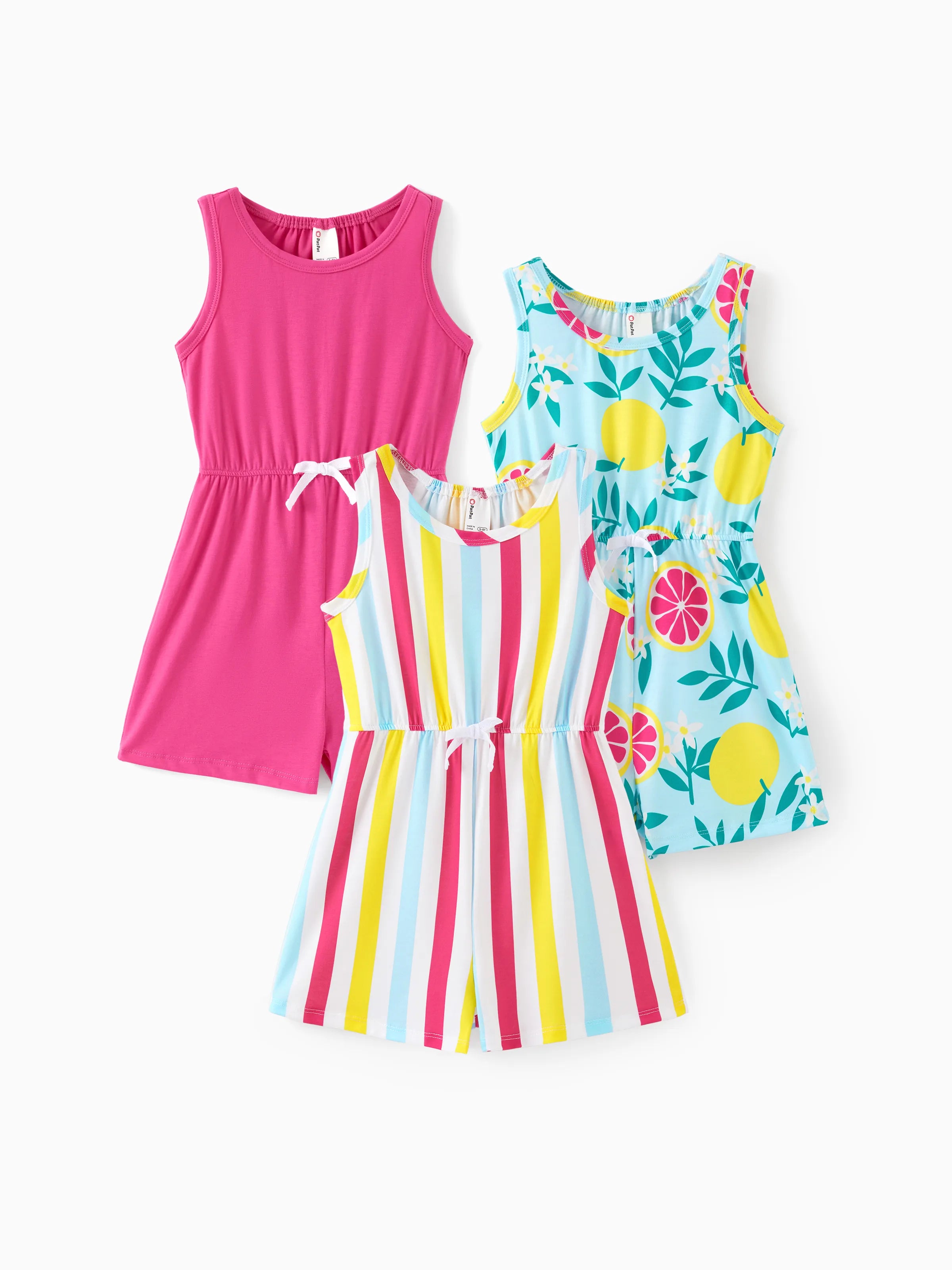 Lot de 3 combinaisons sans manches pour fille, multicolores