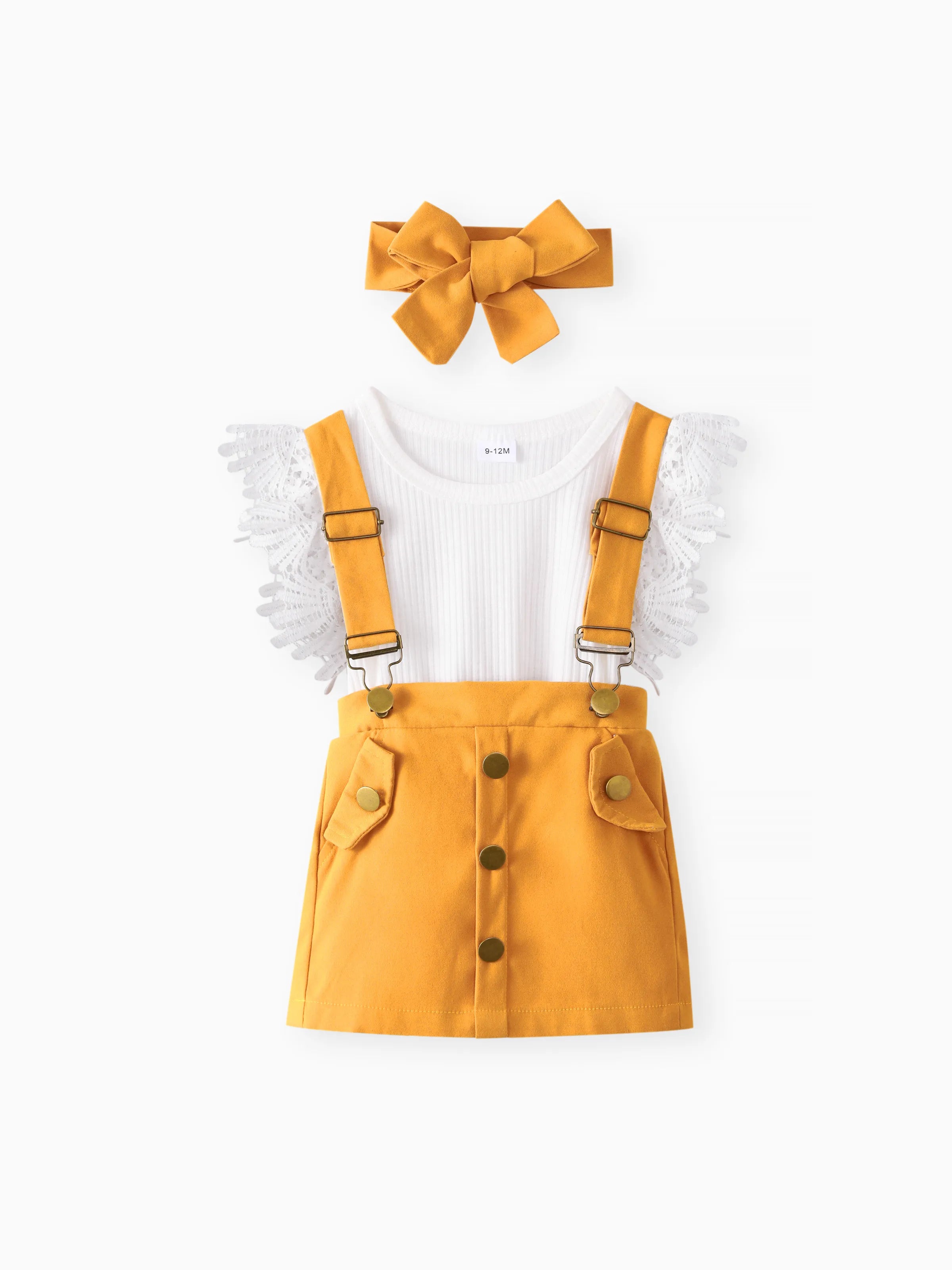 Cet adorable ensemble pour bébé allie douceur et praticité, composé d'une barboteuse élégante, d'une jolie jupe et d'un bandeau assorti. Parfait pour les sorties estivales quotidiennes.