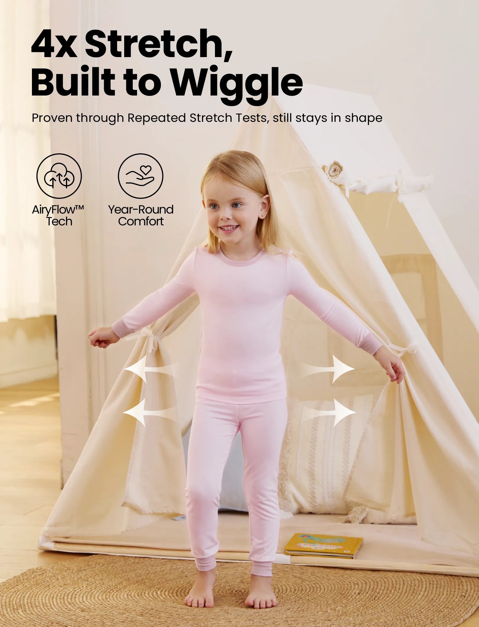 Extensible amélioré pour plus de confort : conçu avec 7 % d'élasthanne, le tissu offre une élasticité supérieure et un rebond doux, offrant un ajustement serré mais sans restriction qui s'adapte aux différentes formes de corps de bébé sans pincer les bras ou les cuisses.