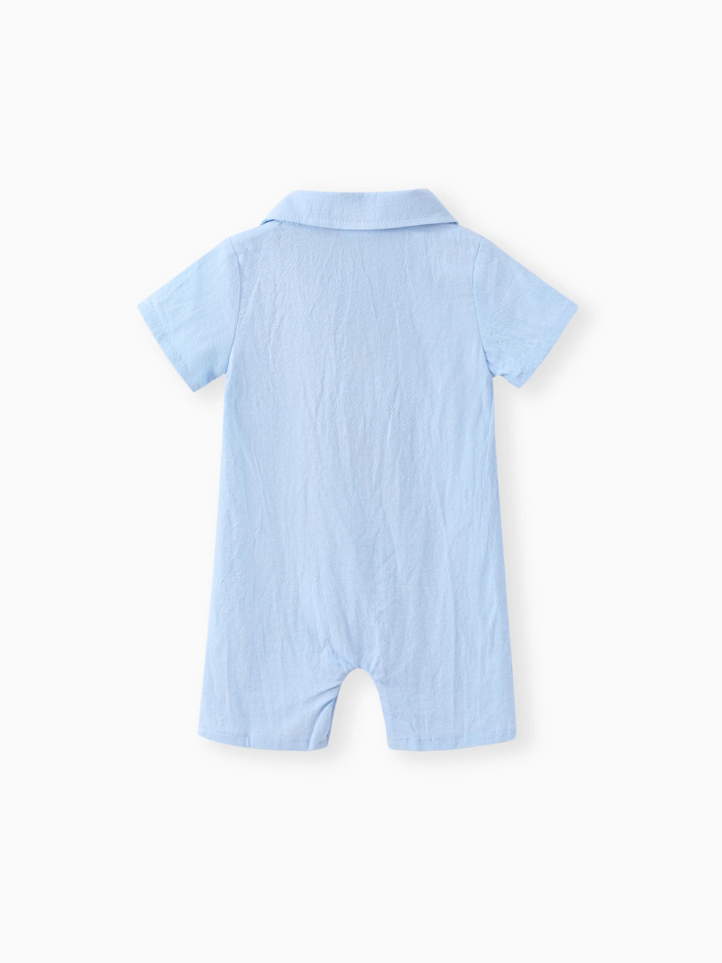 Combinaison bébé garçon 100 % coton avec poches à boutons sur le devant et motif dinosaure, col à revers, couleur unie, bleu