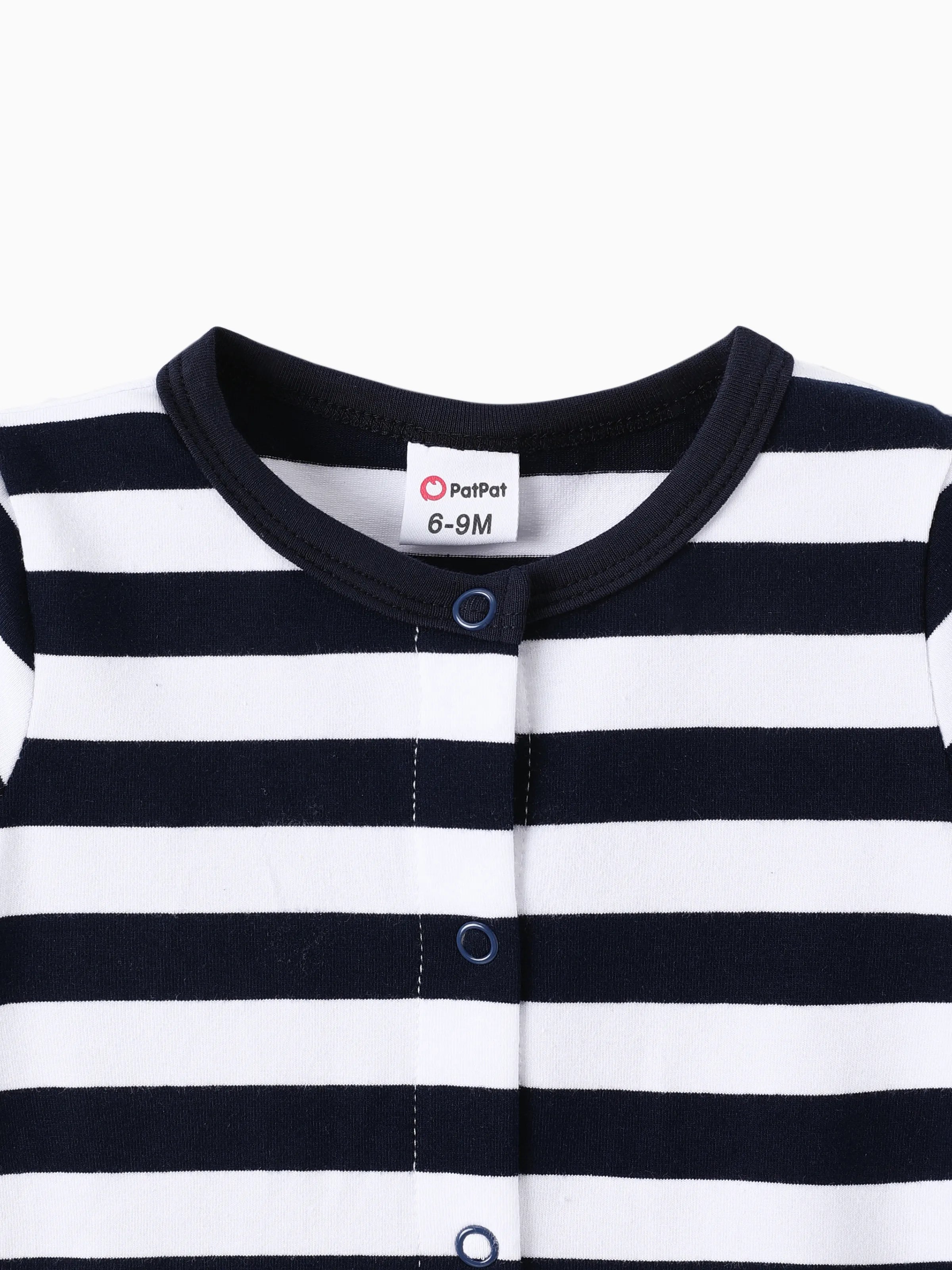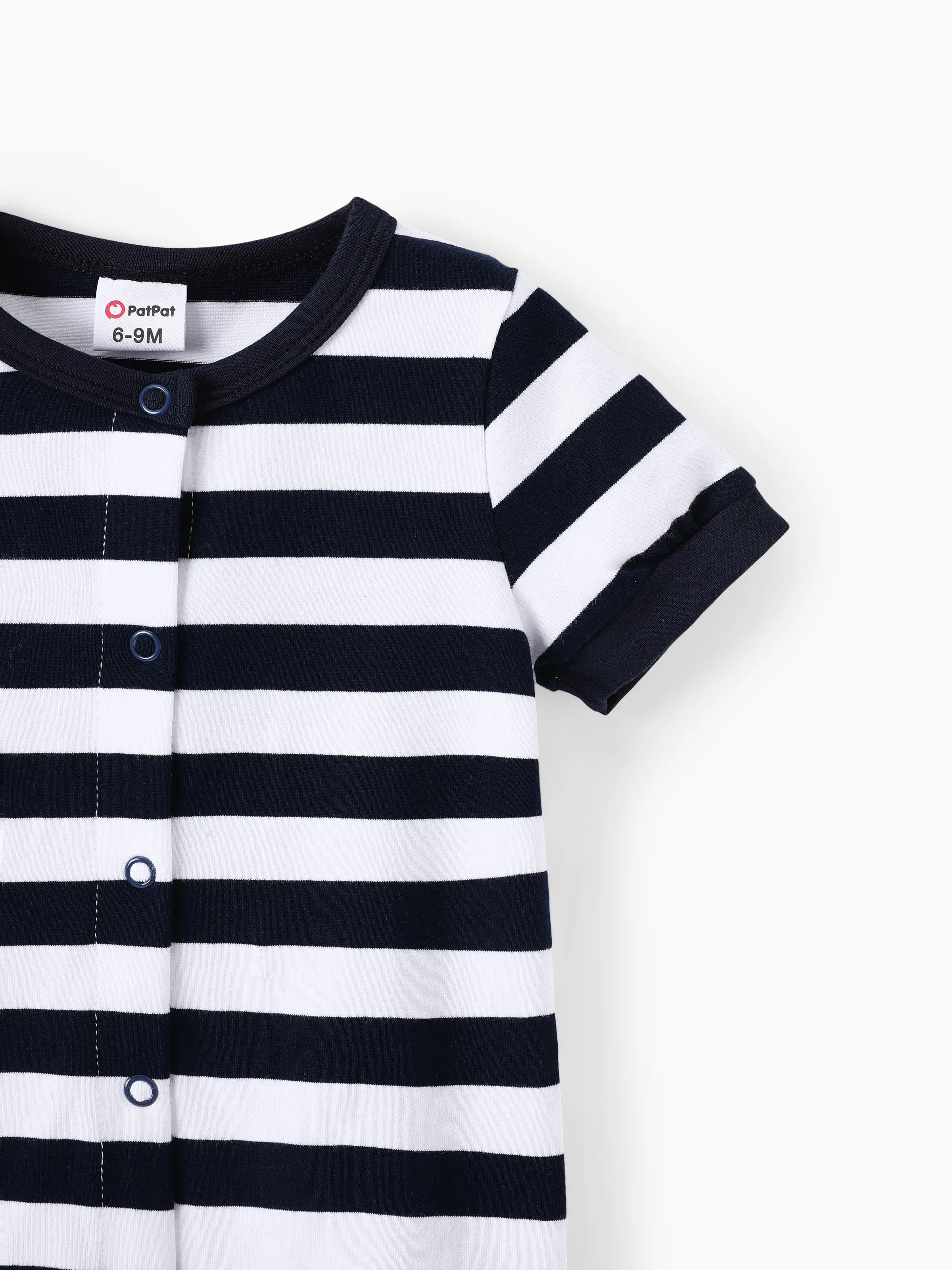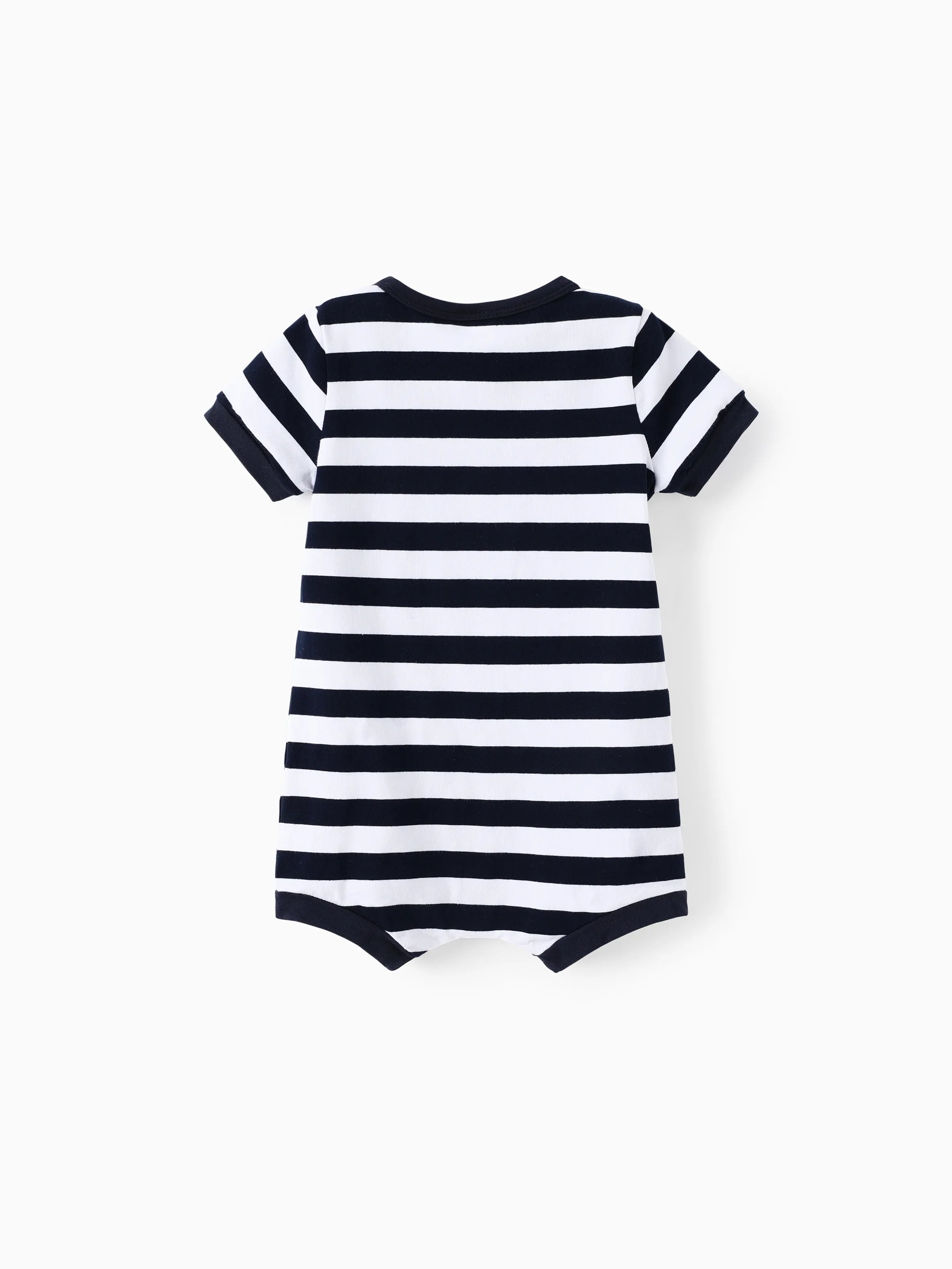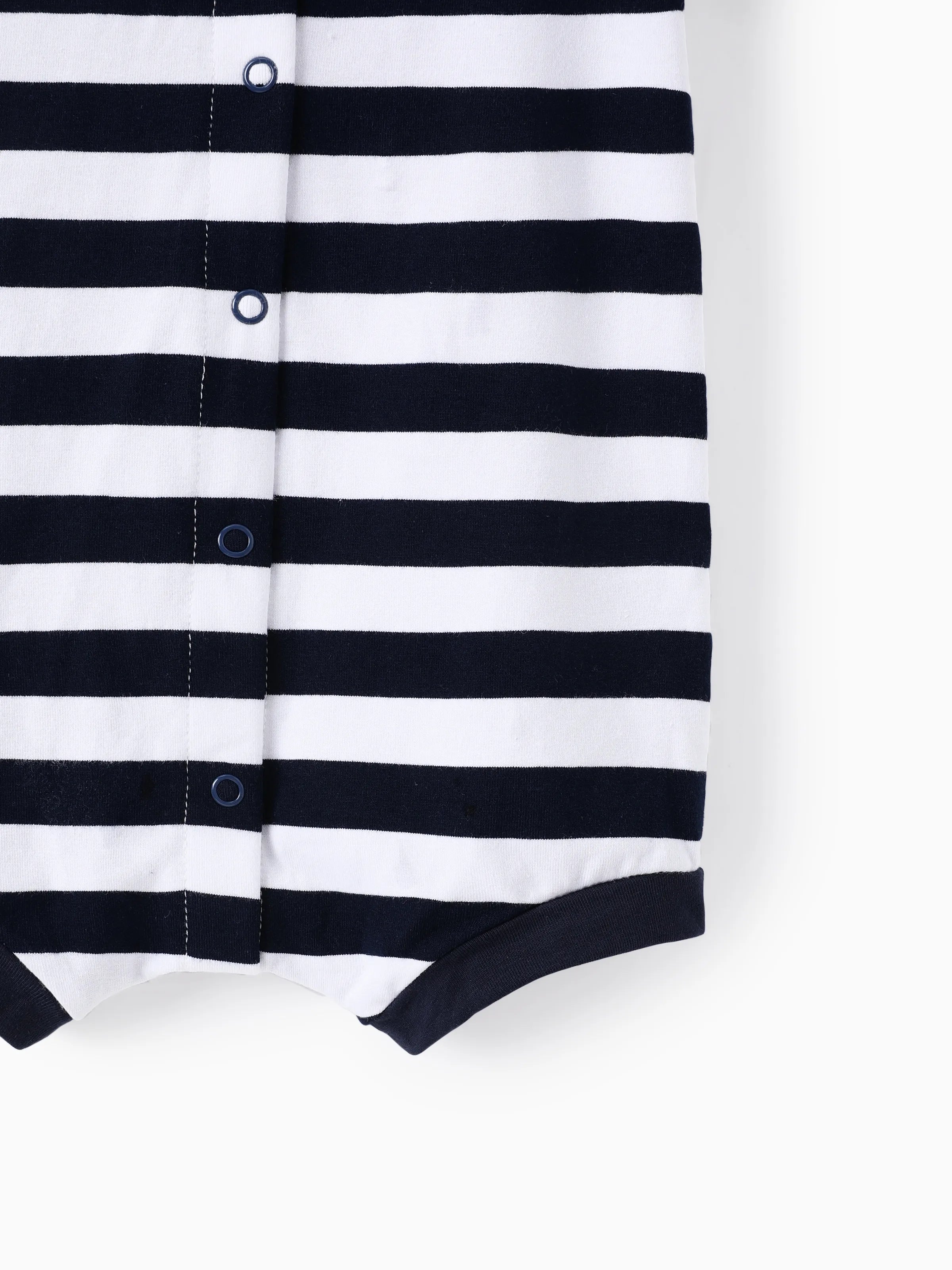 Plongez dans le plaisir de l'été avec notre barboteuse à manches courtes à imprimé/rayures pour bébé garçon.
