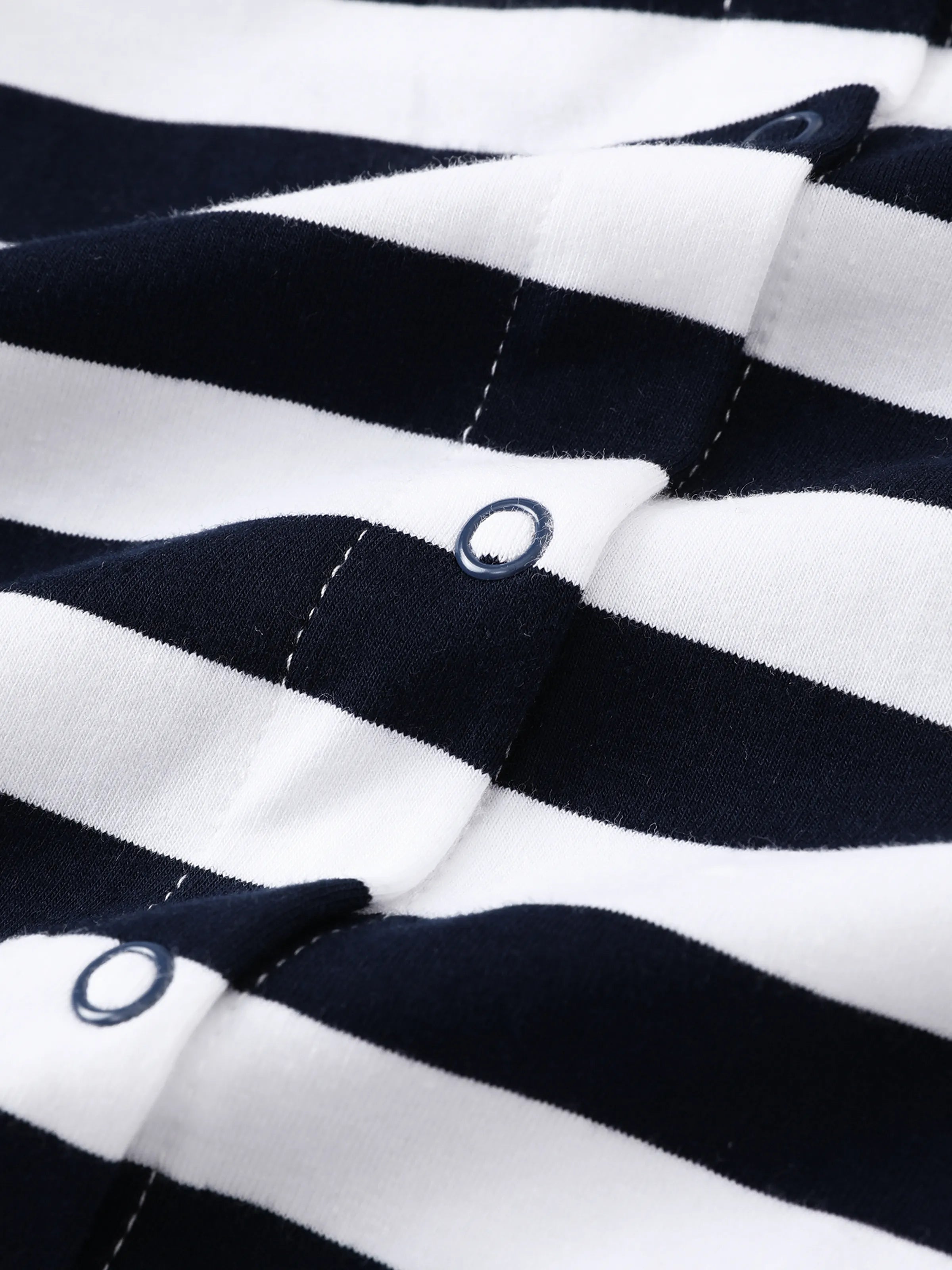 Barboteuse bébé garçon à manches courtes et boutons-pression, imprimé/rayé, bleu, noir et blanc