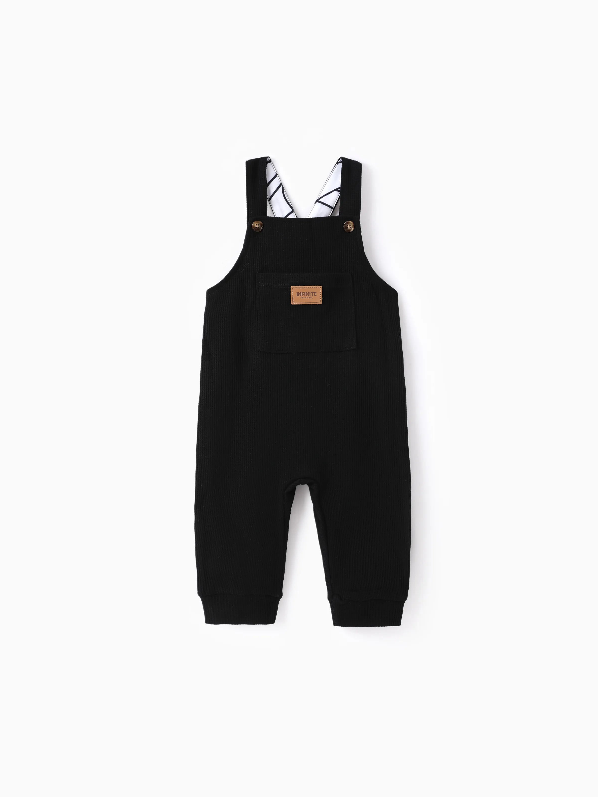 Salopette bébé garçon à imprimé gaufré et poches plaquées sur le devant, noire