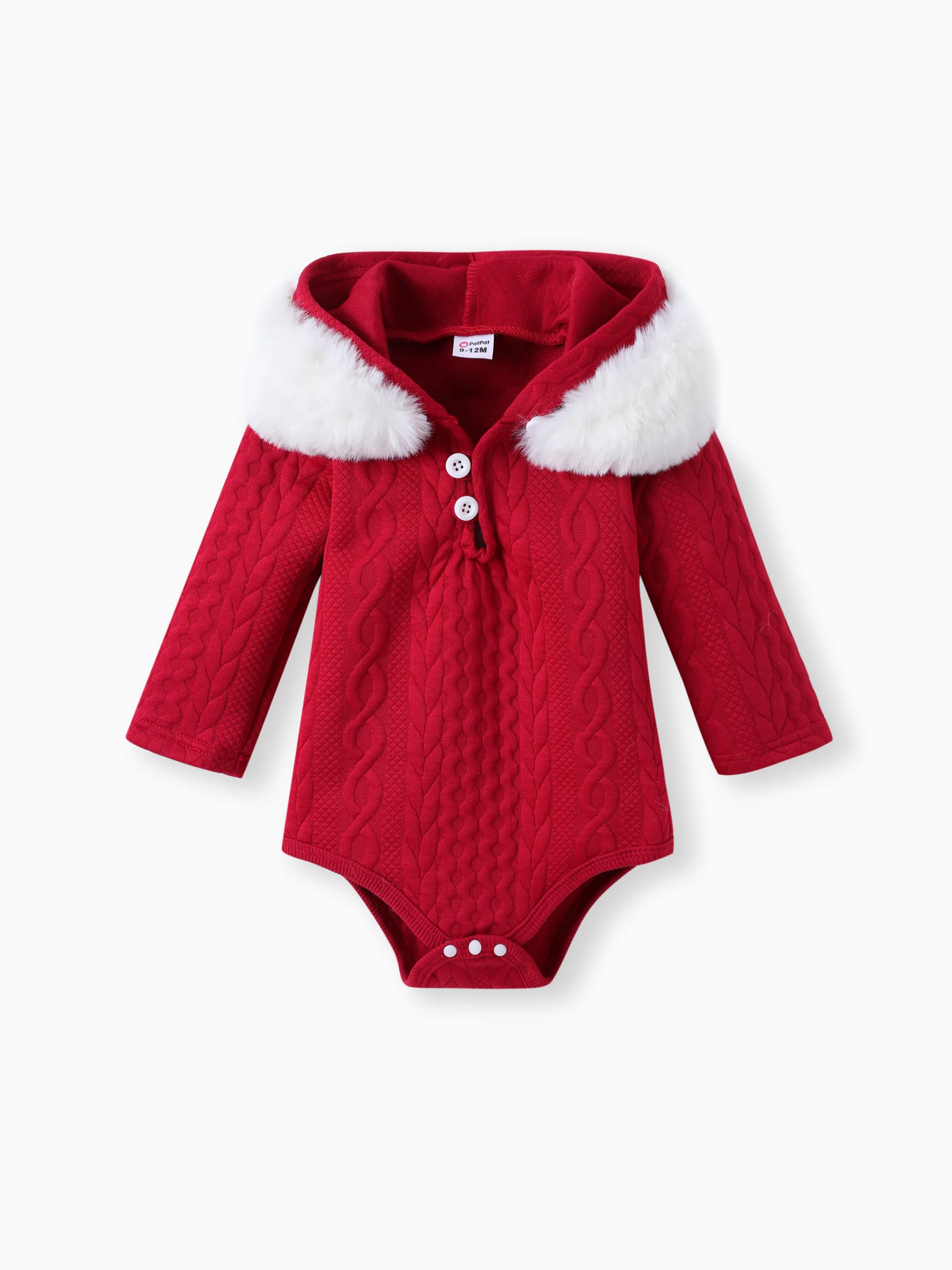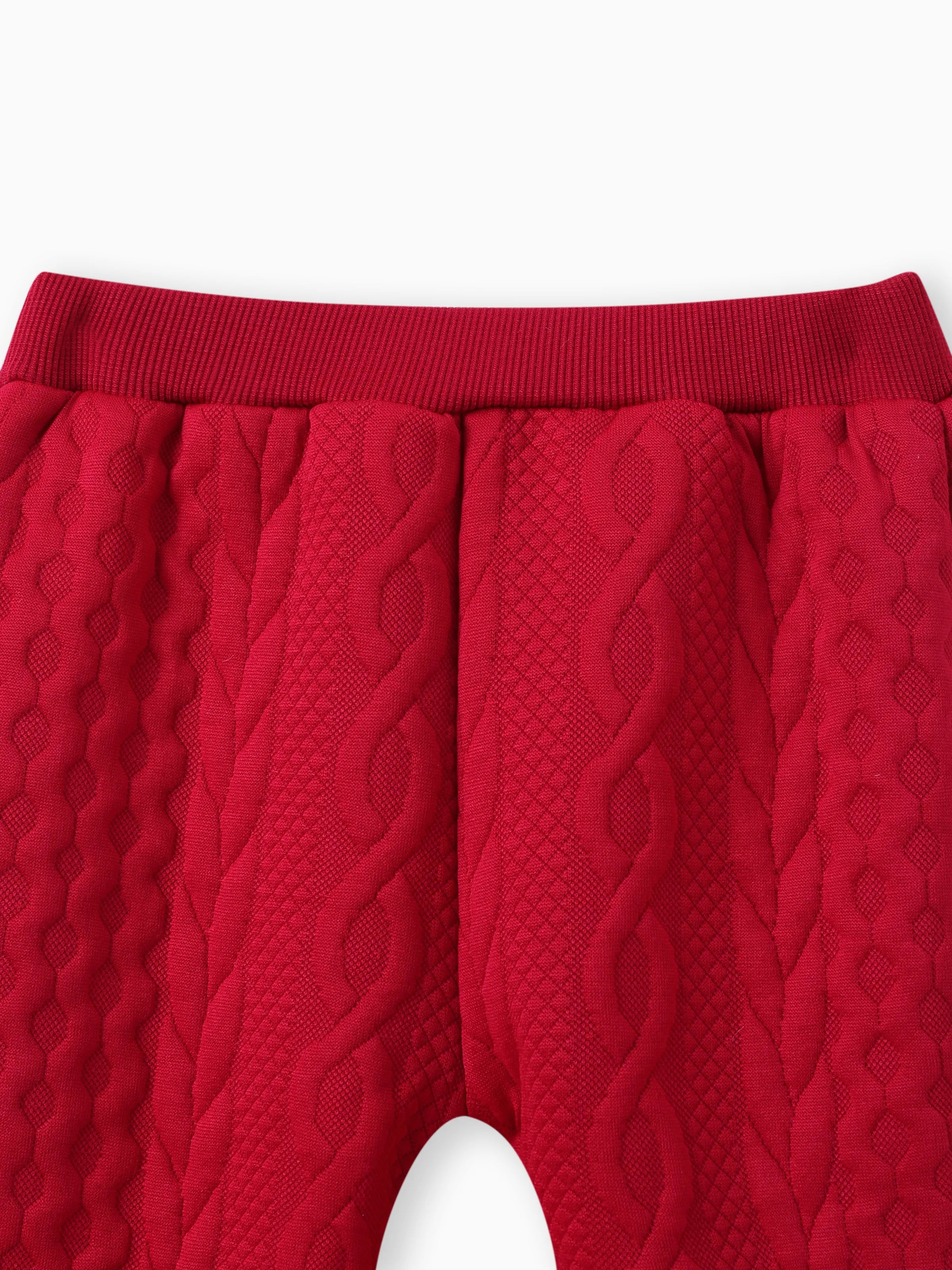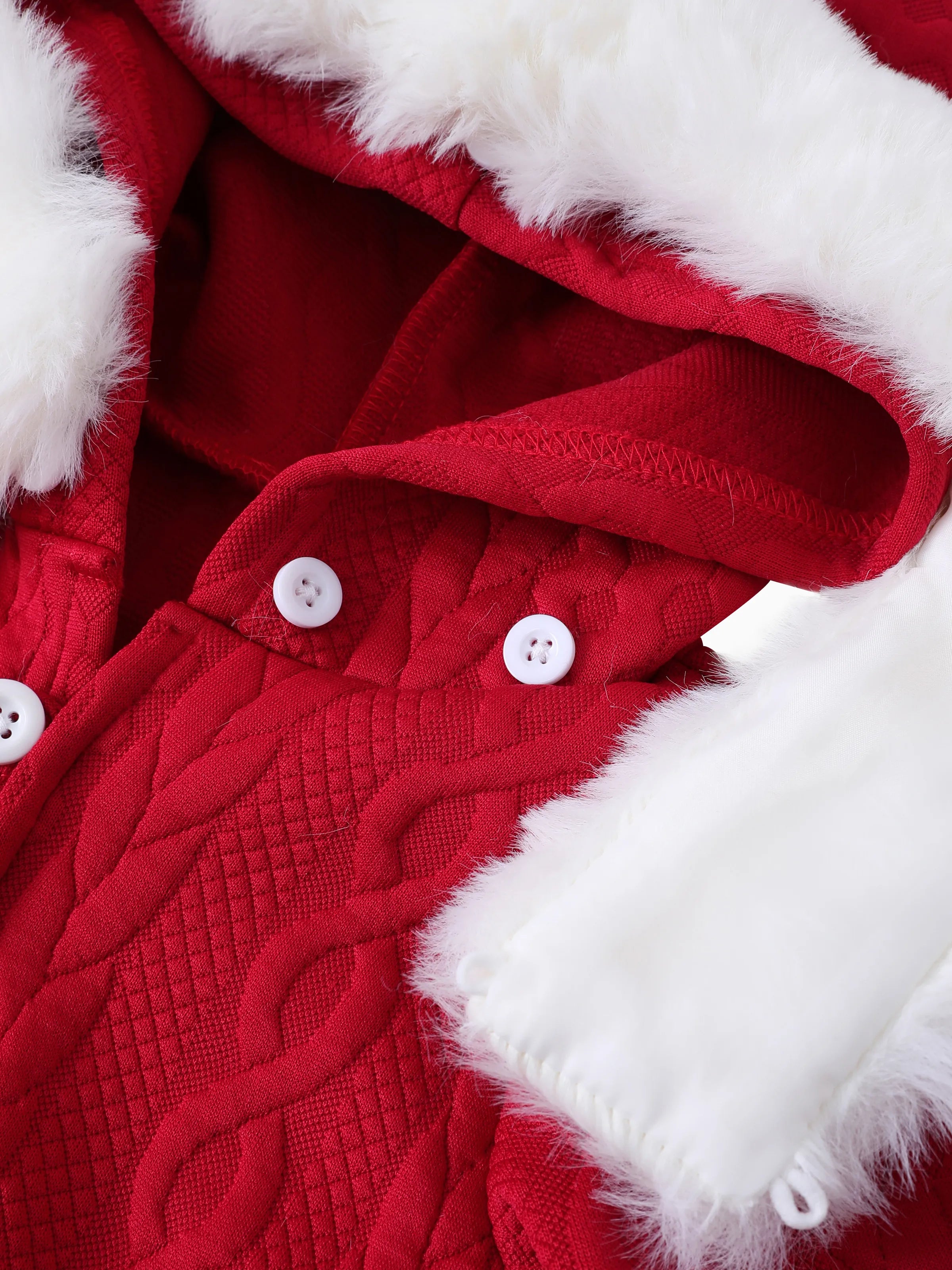 Ensemble 2 pièces bébé garçon/fille avec barboteuse à capuche texturée et pantalon rouge