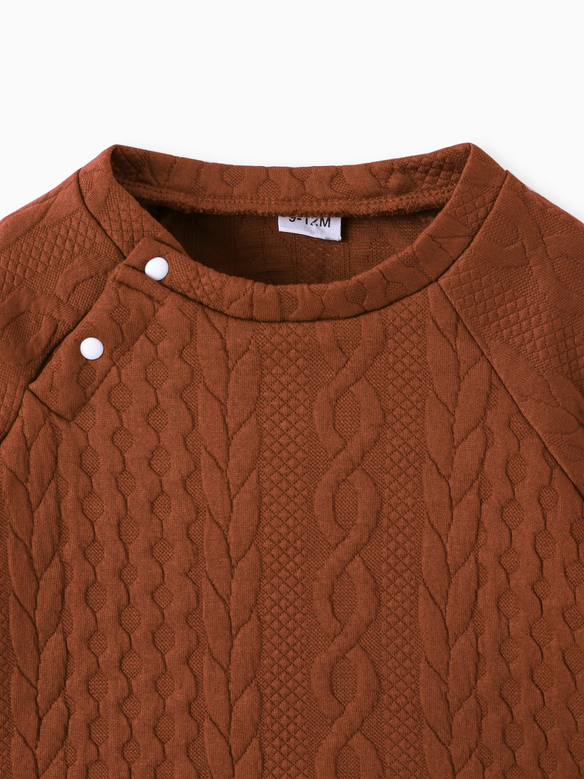 Ensemble 2 pièces sweat-shirt et pantalon en tricot uni pour bébé garçon/fille, marron