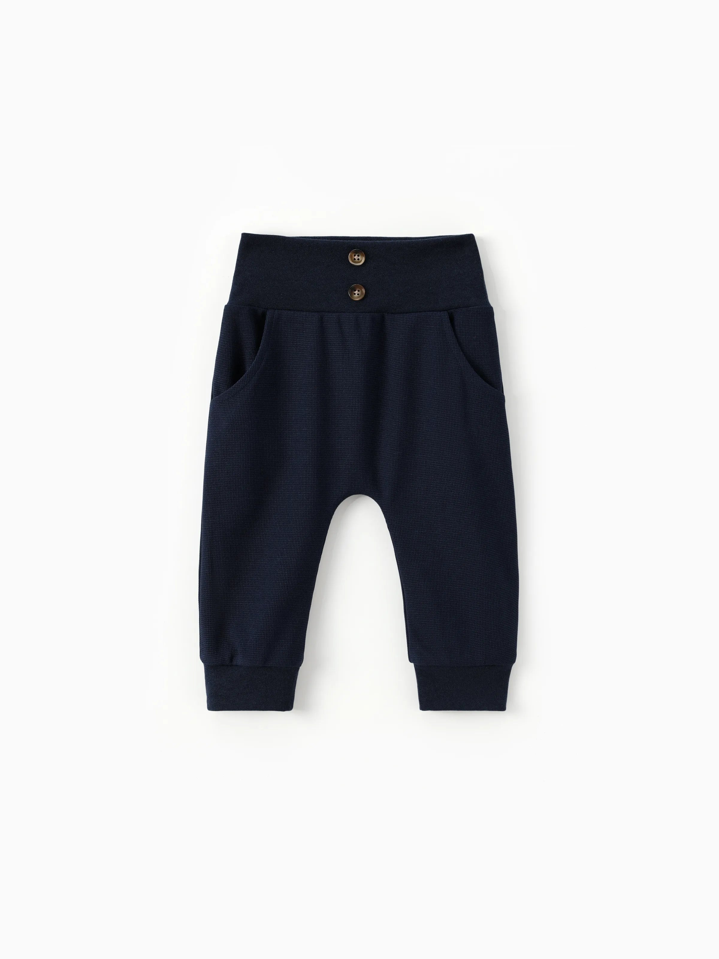 Pantalon taille haute texturé gaufré uni pour bébé garçon/fille, bleu tibétain