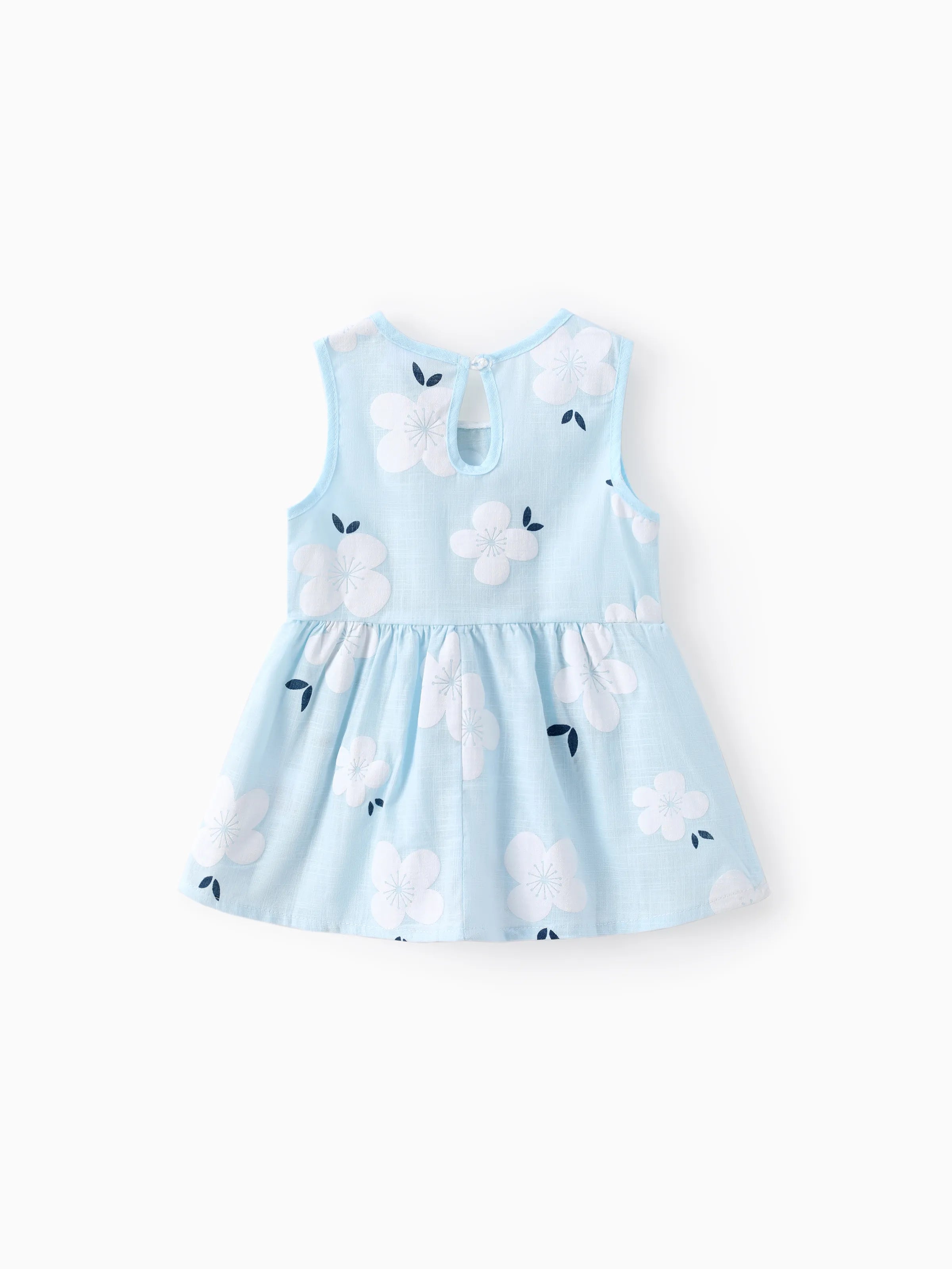 Robe débardeur à imprimé floral et col Claudine 100 % coton pour bébé fille, bleu