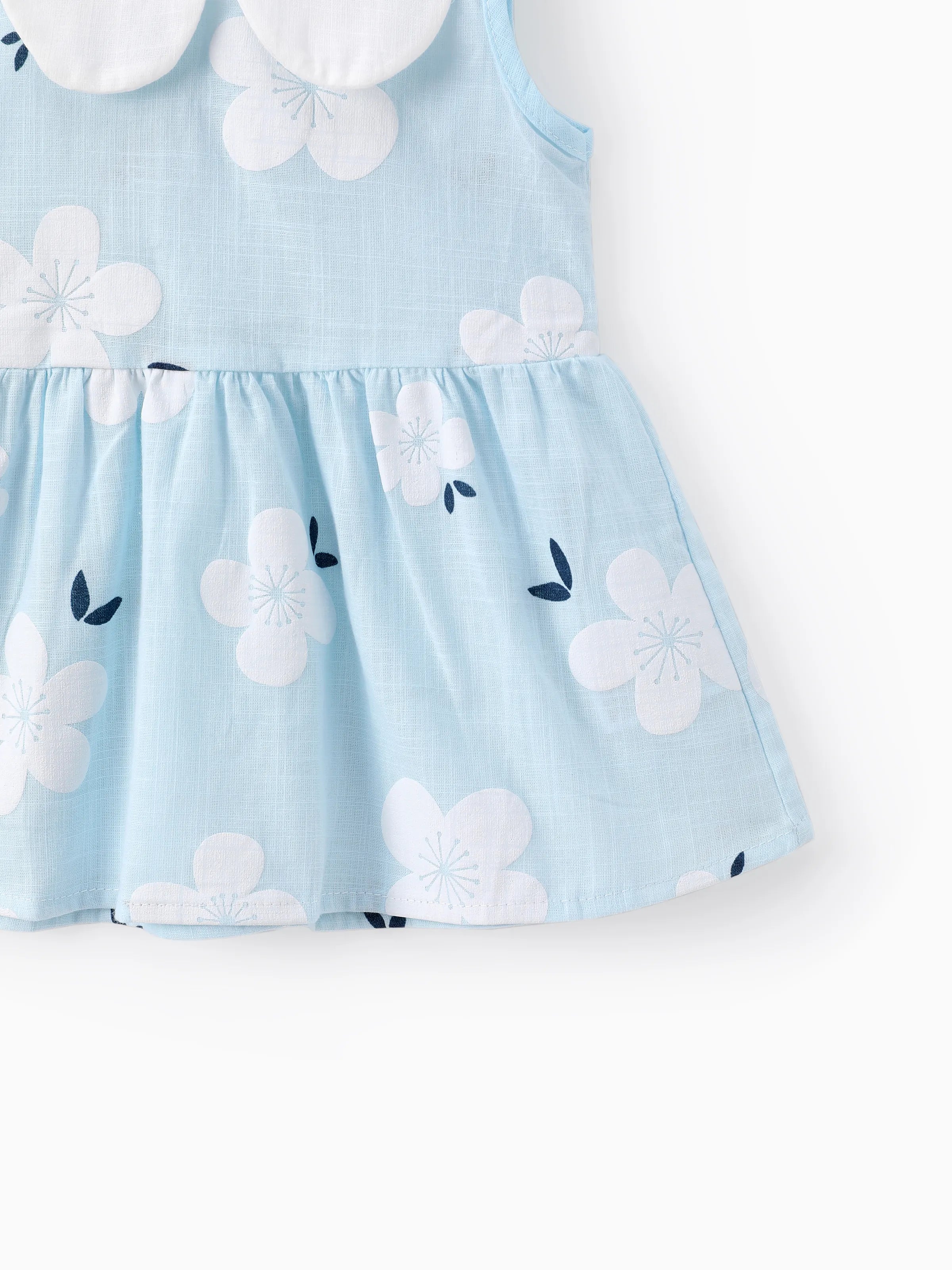 Adoucissez la garde-robe de votre petite fille avec notre robe débardeur à imprimé floral et col Peter Pan 100 % coton pour bébé fille !