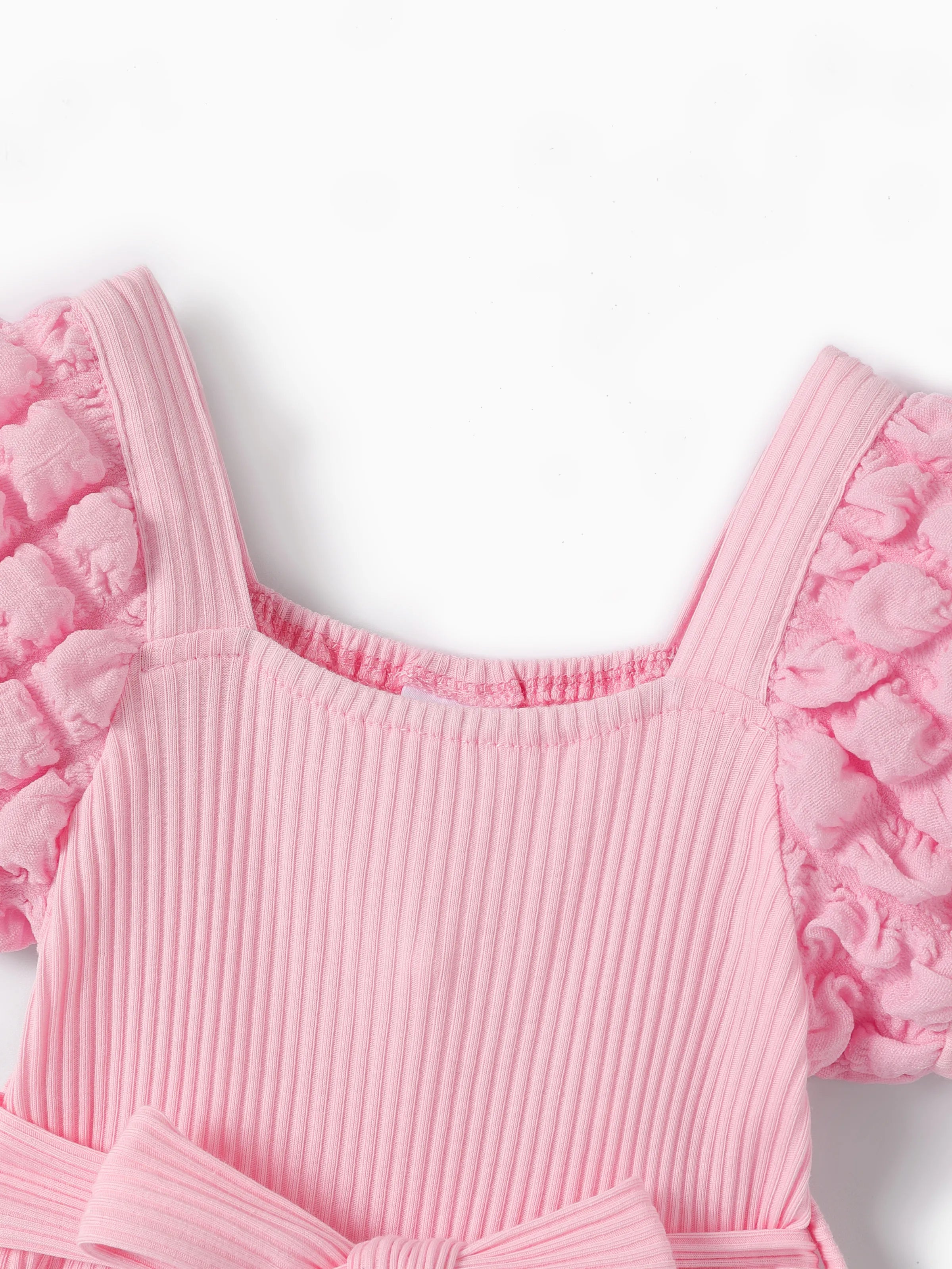 Combinaison bébé fille à manches bouffantes de couleur unie rose