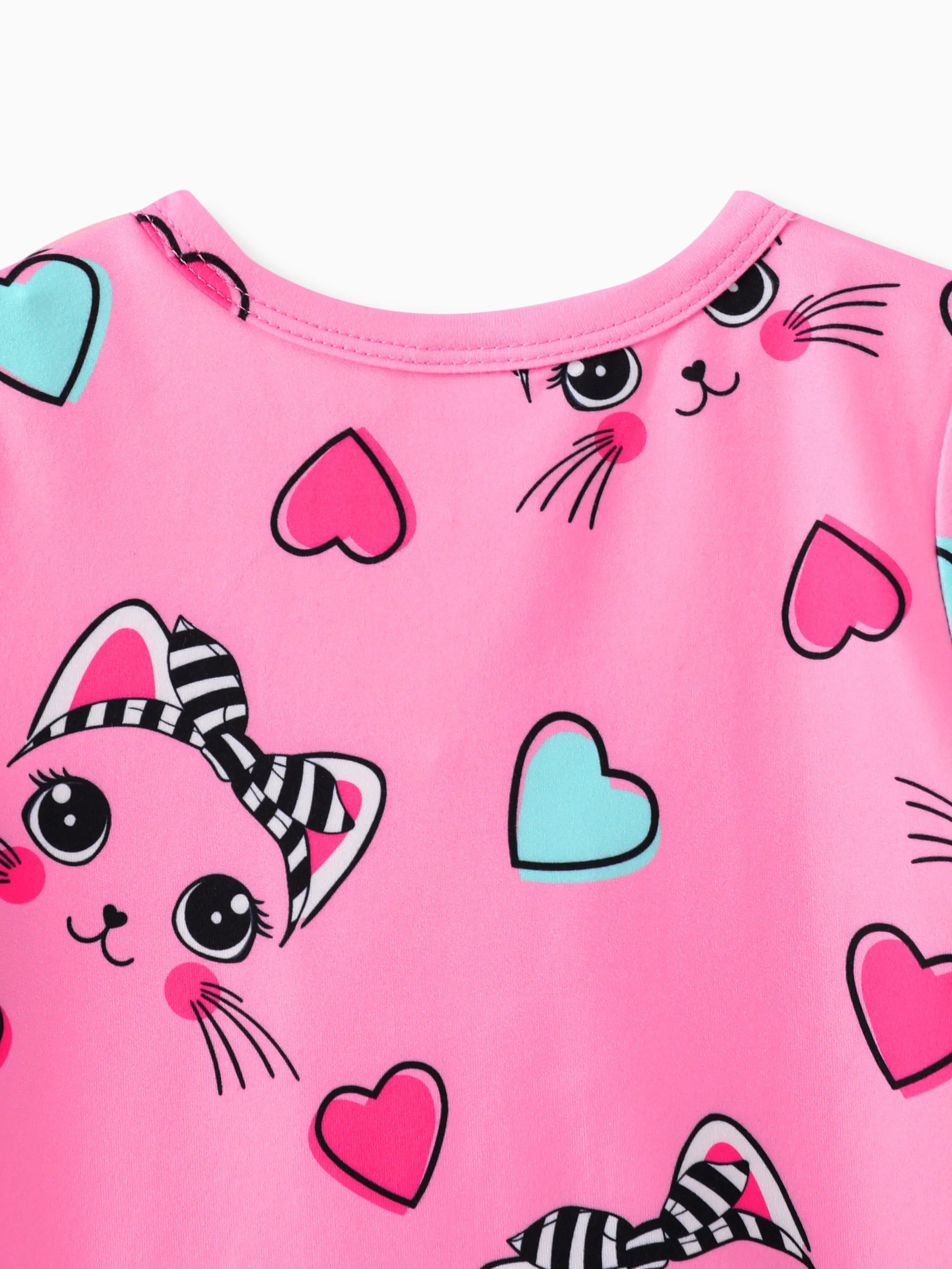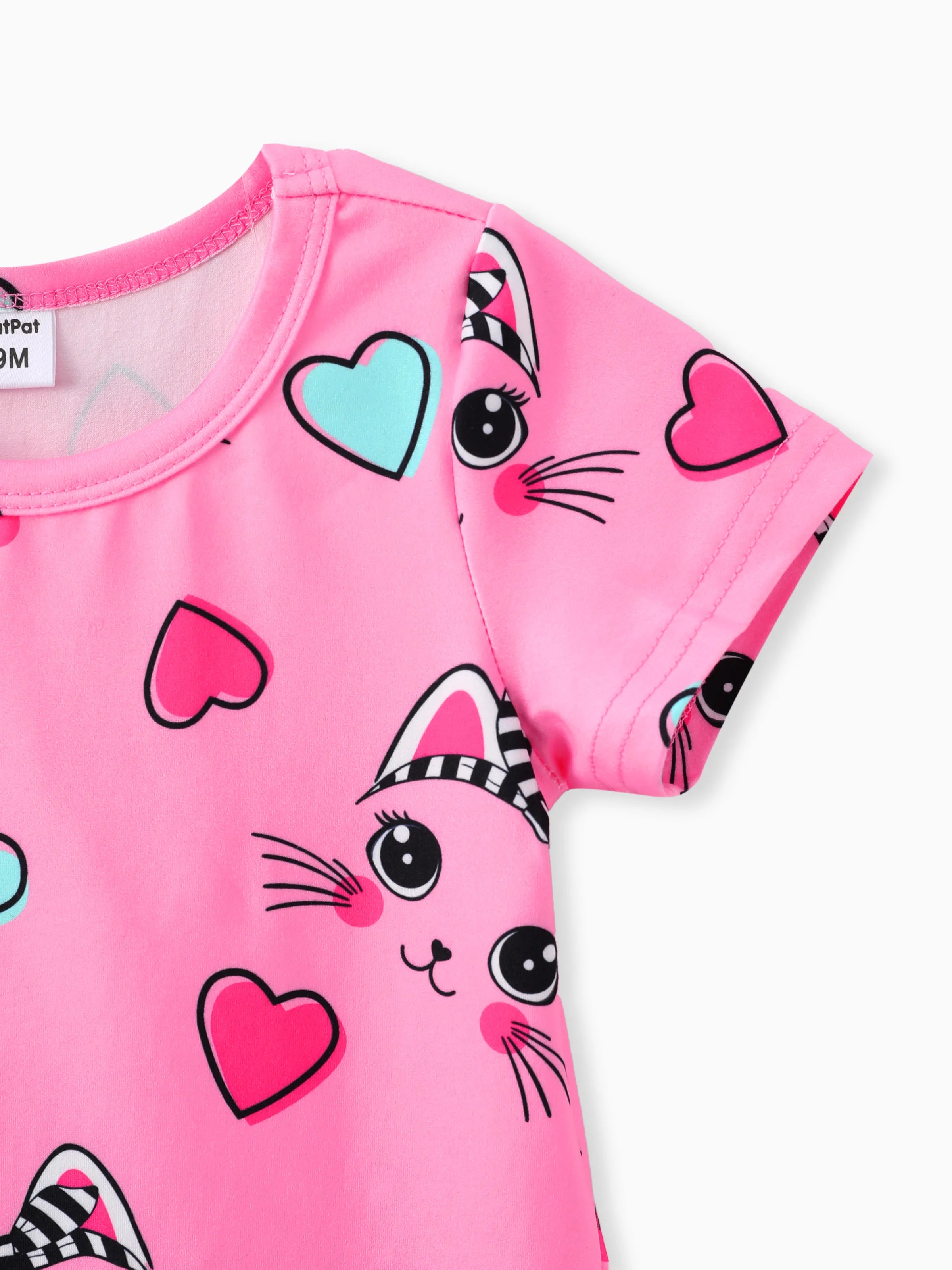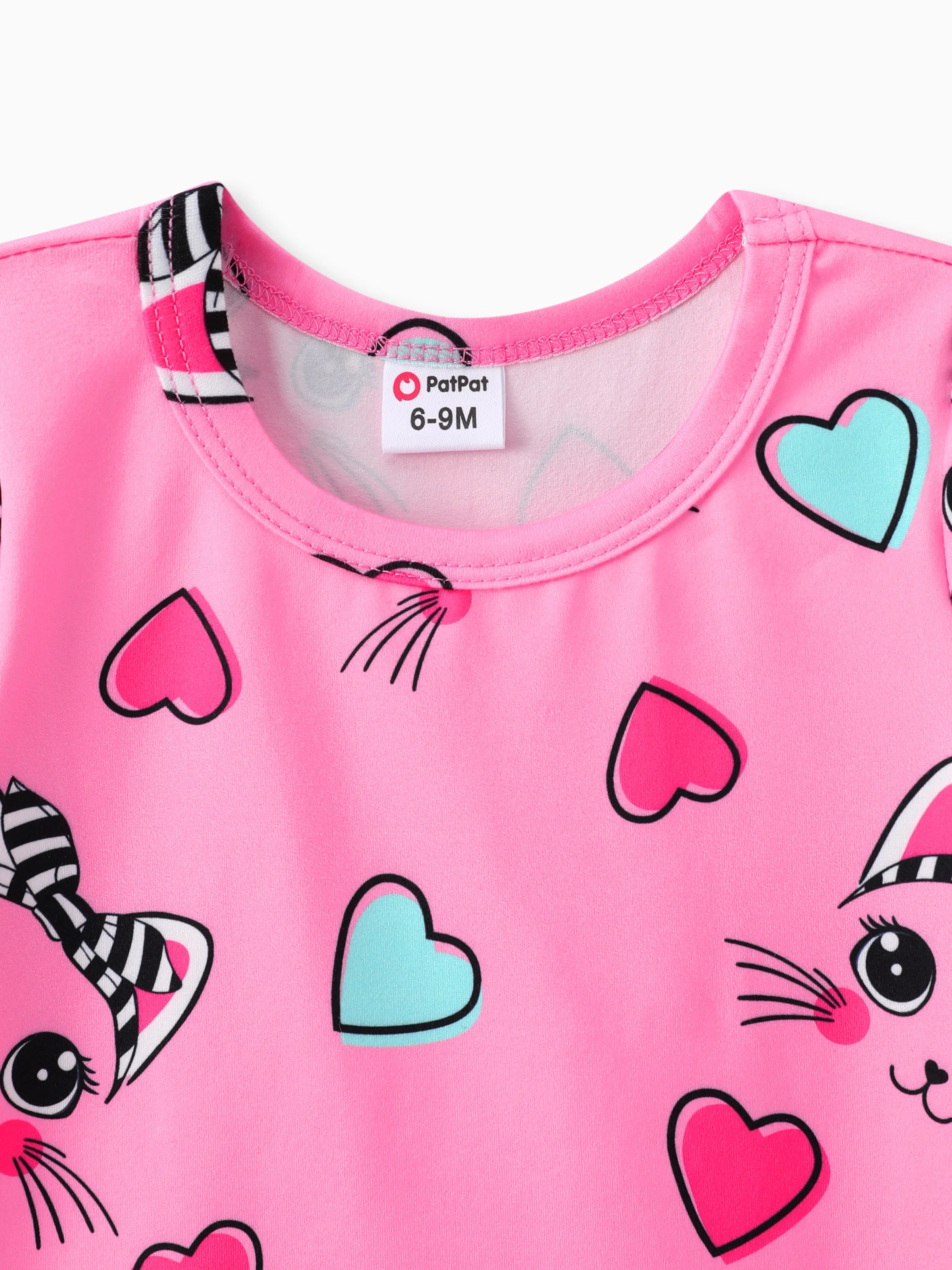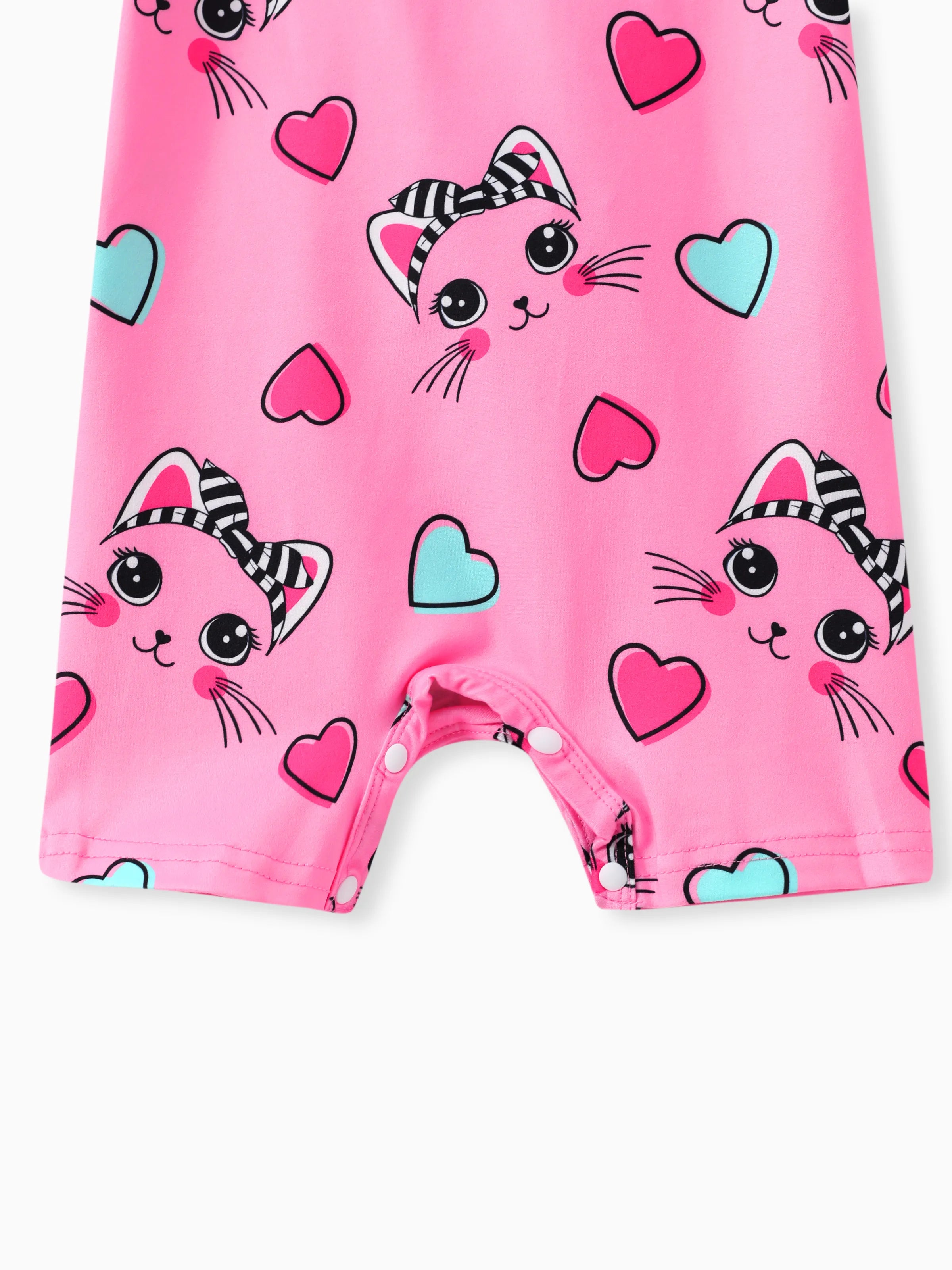 Barboteuse à manches courtes pour bébé fille, imprimé lapin, rose foncé