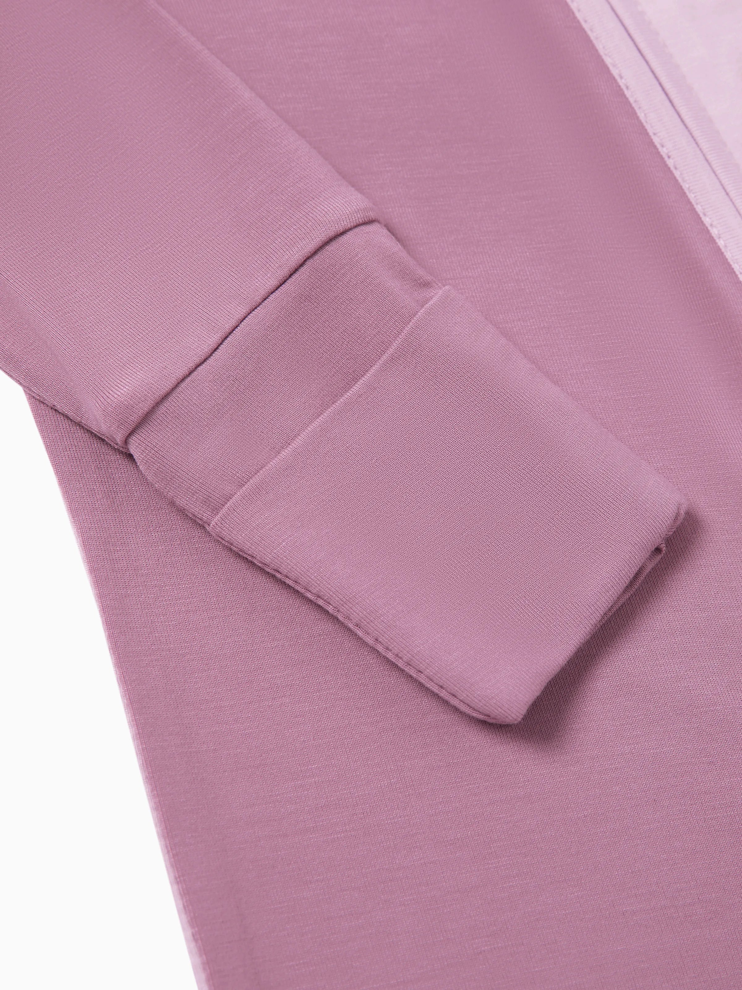 Grenouillère en bambou à manches longues et fermeture éclair bidirectionnelle pour bébé garçon/fille, couleur unie, antidérapante, violet