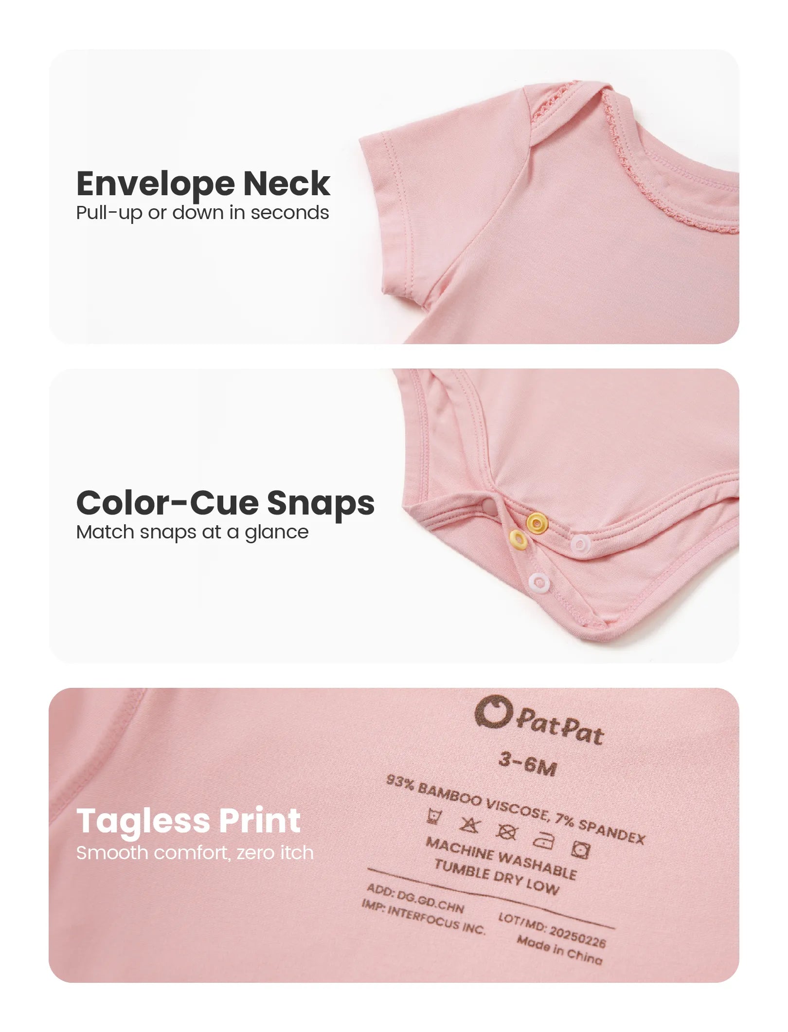 Ensemble de 2 barboteuses unies et imprimées en bambou pour bébé garçon/fille, rose