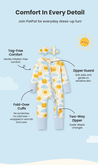 Une tenue pour bébé élégante et pratique avec une conception de main résistante aux rayures, une conception de pied pliable, une conception de semelle antidérapante, un motif antidérapant sur mesure, une double fermeture éclair et une étiquette sans étiquette.