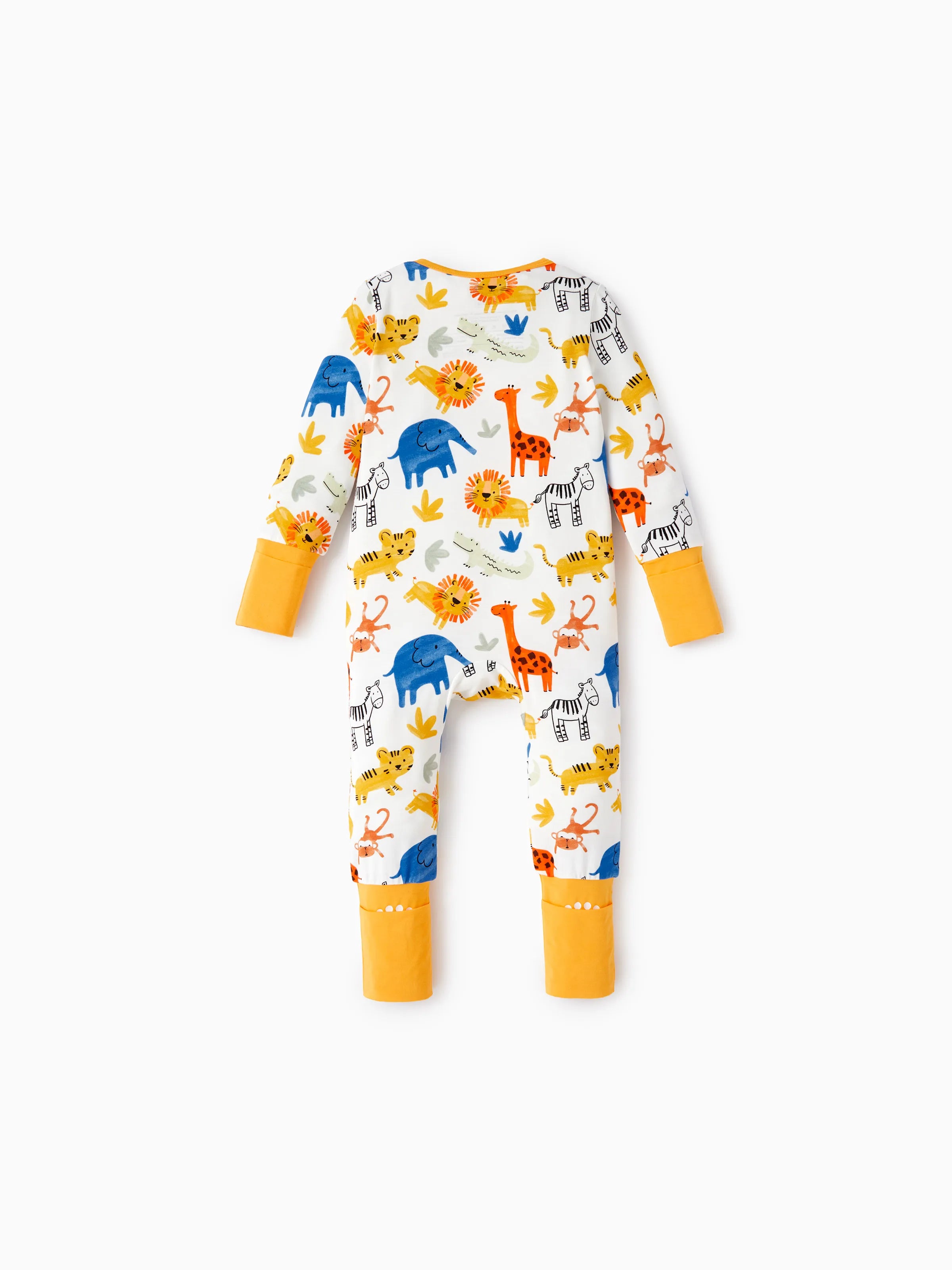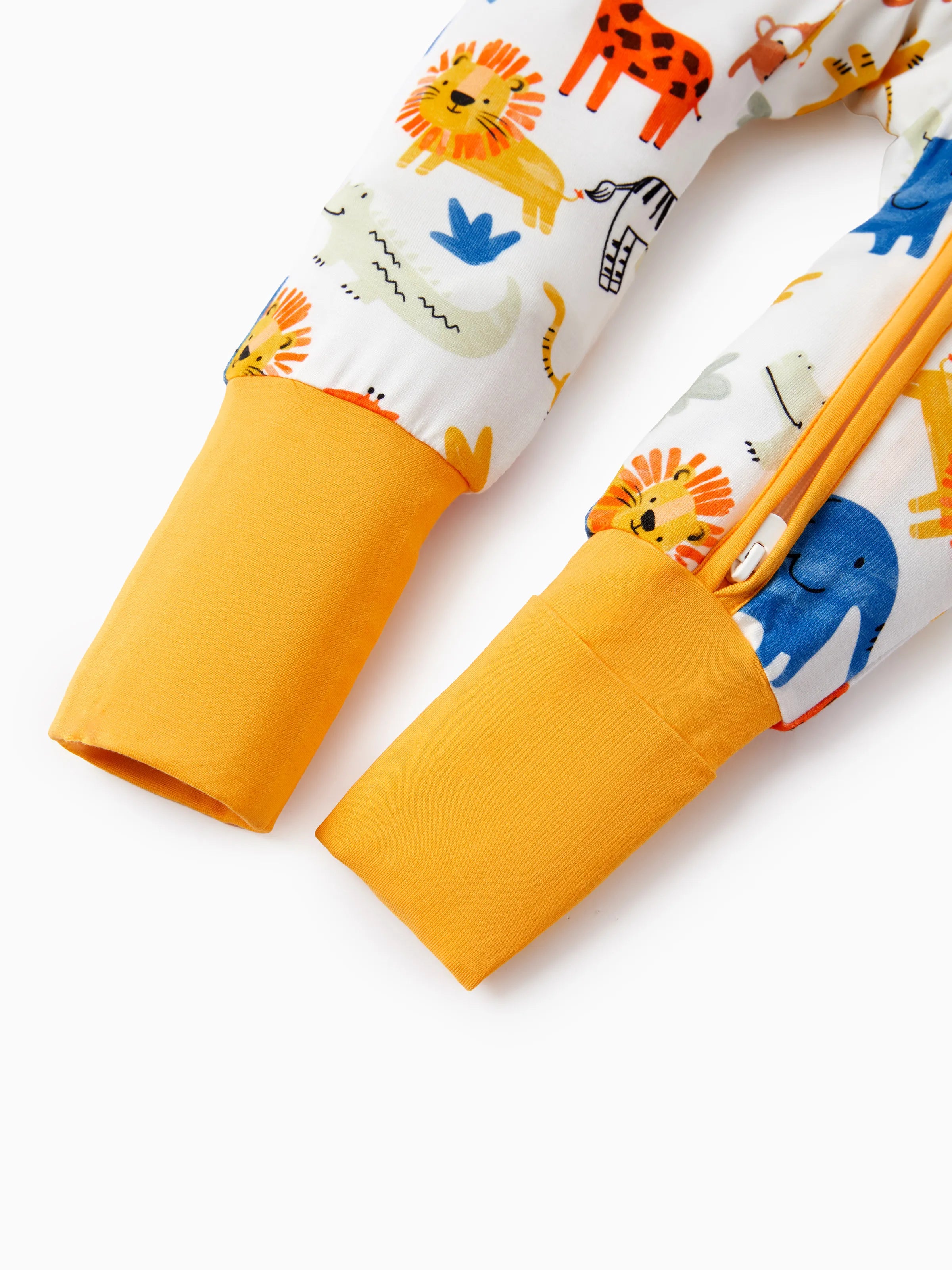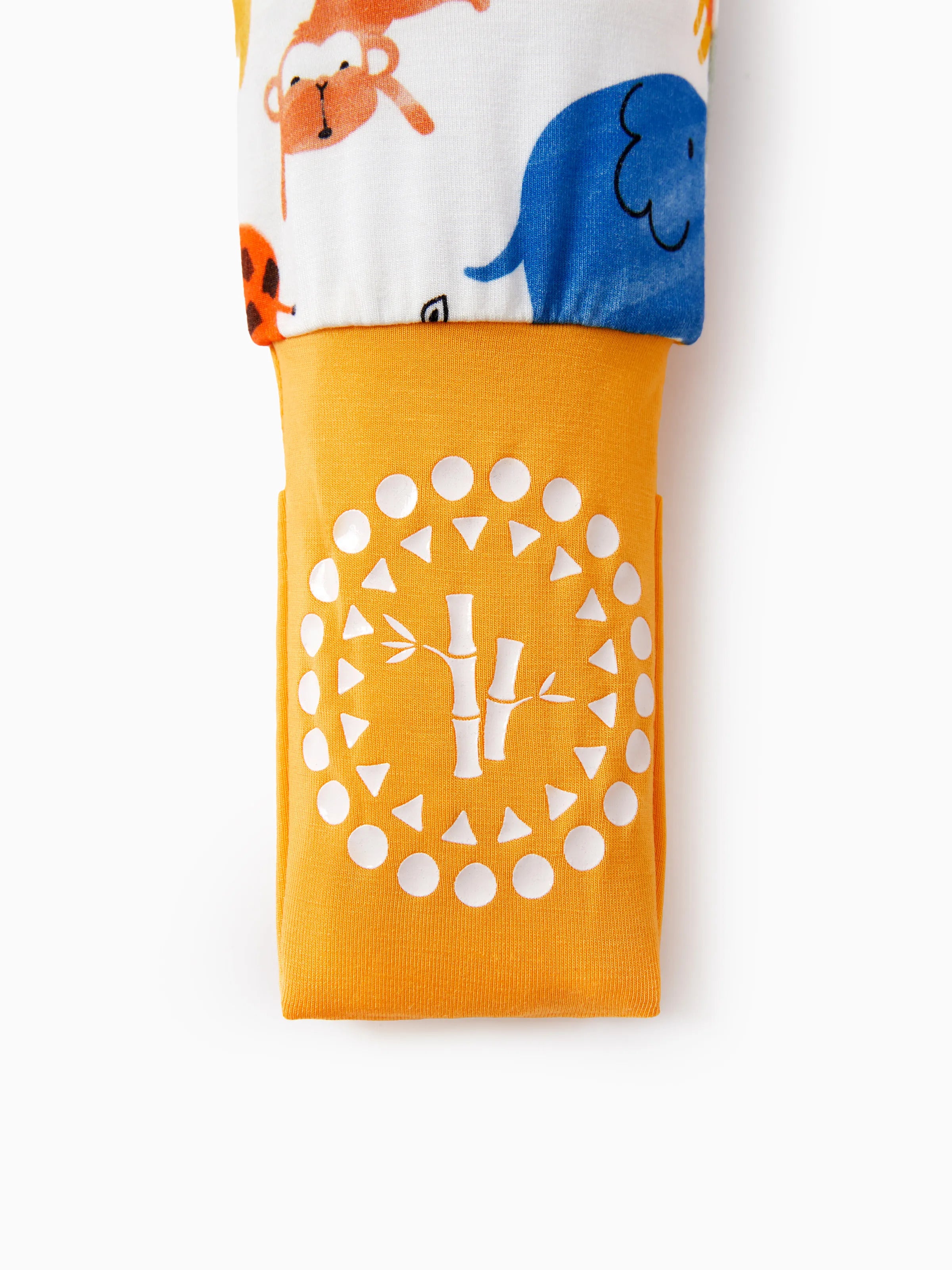 Bamboo Baby Boy/Girl Cartoon Printed 2-Way Zip Onesies Anti Slip Long-sleeve Footie Yellow