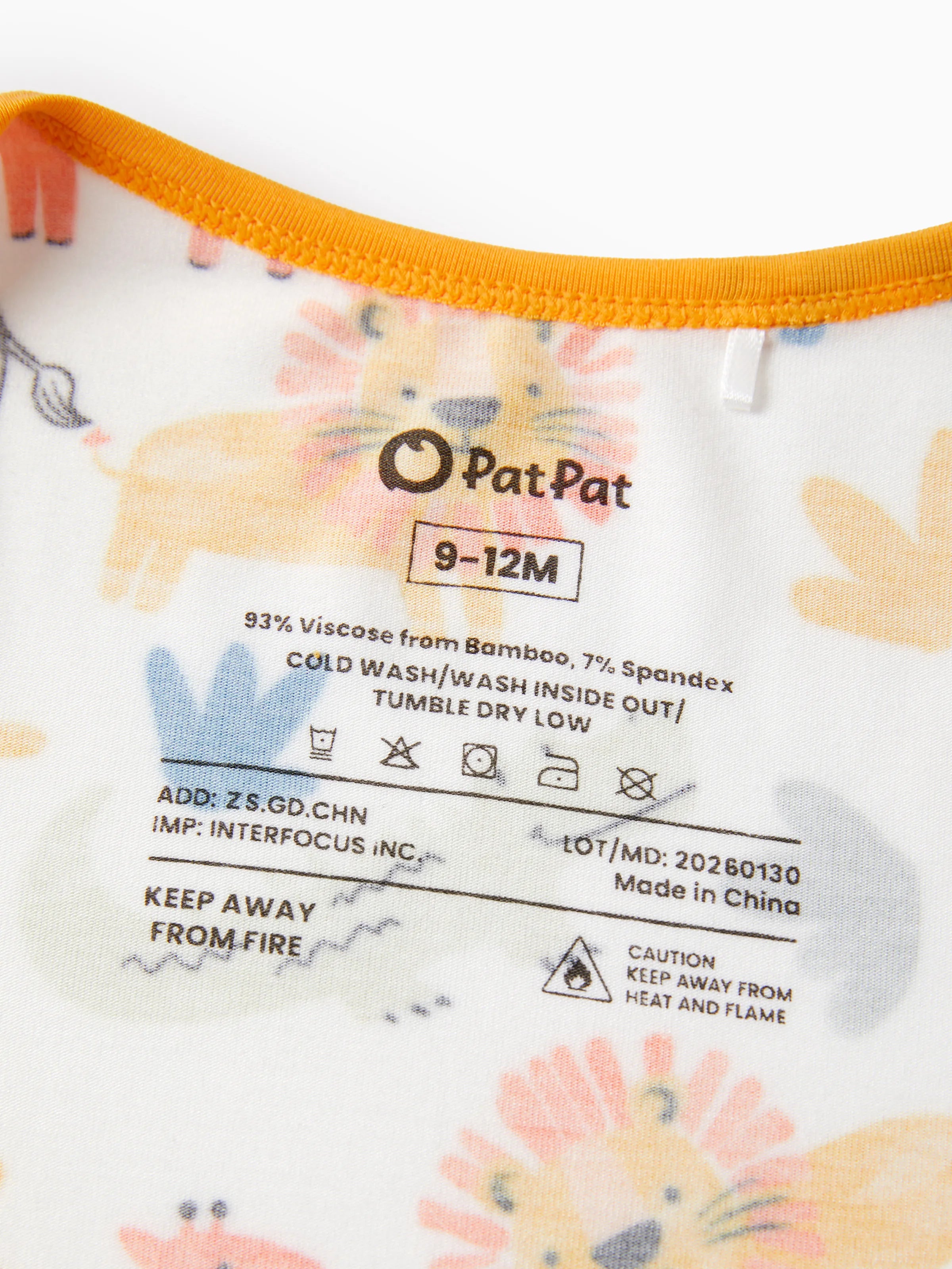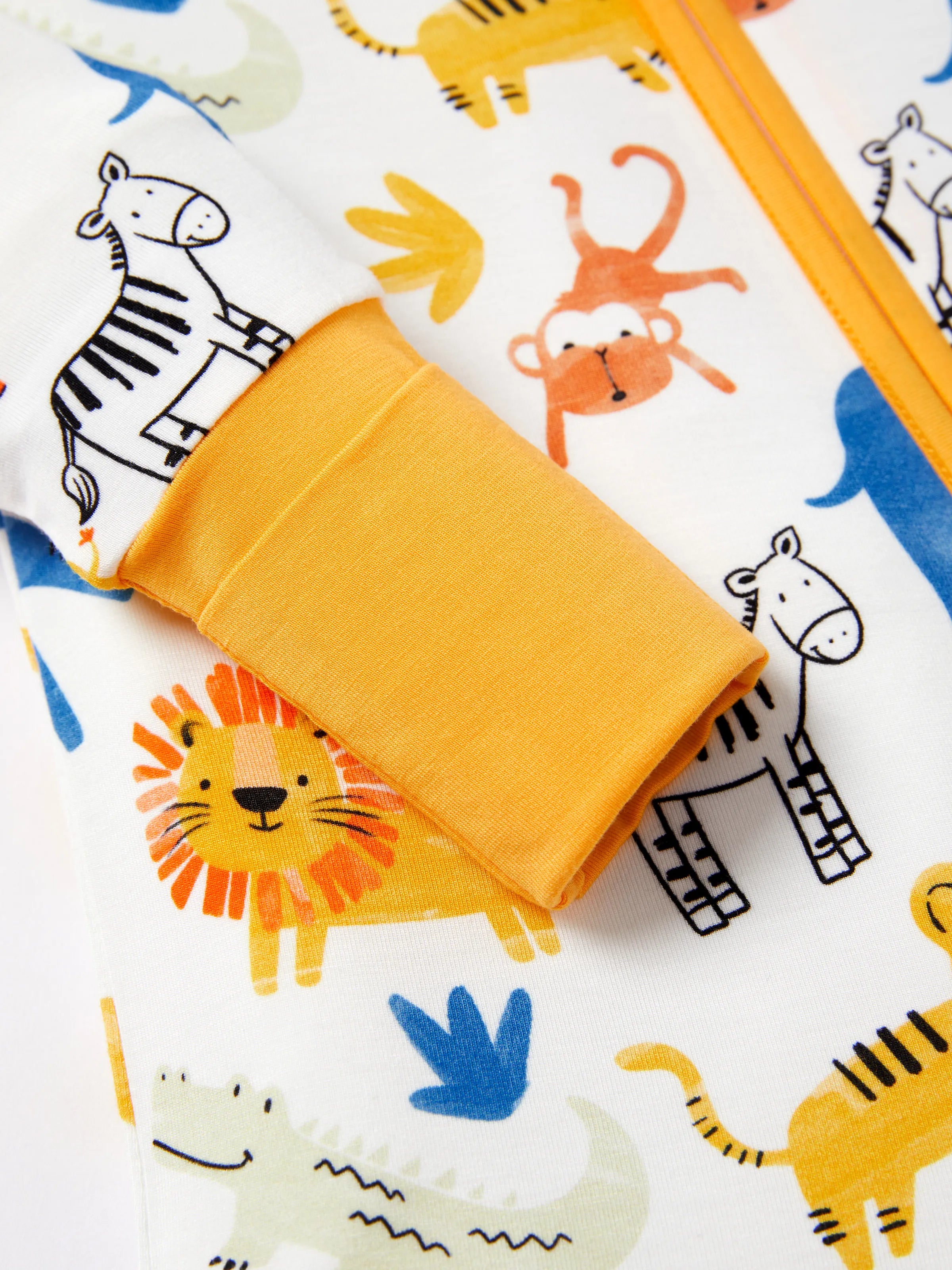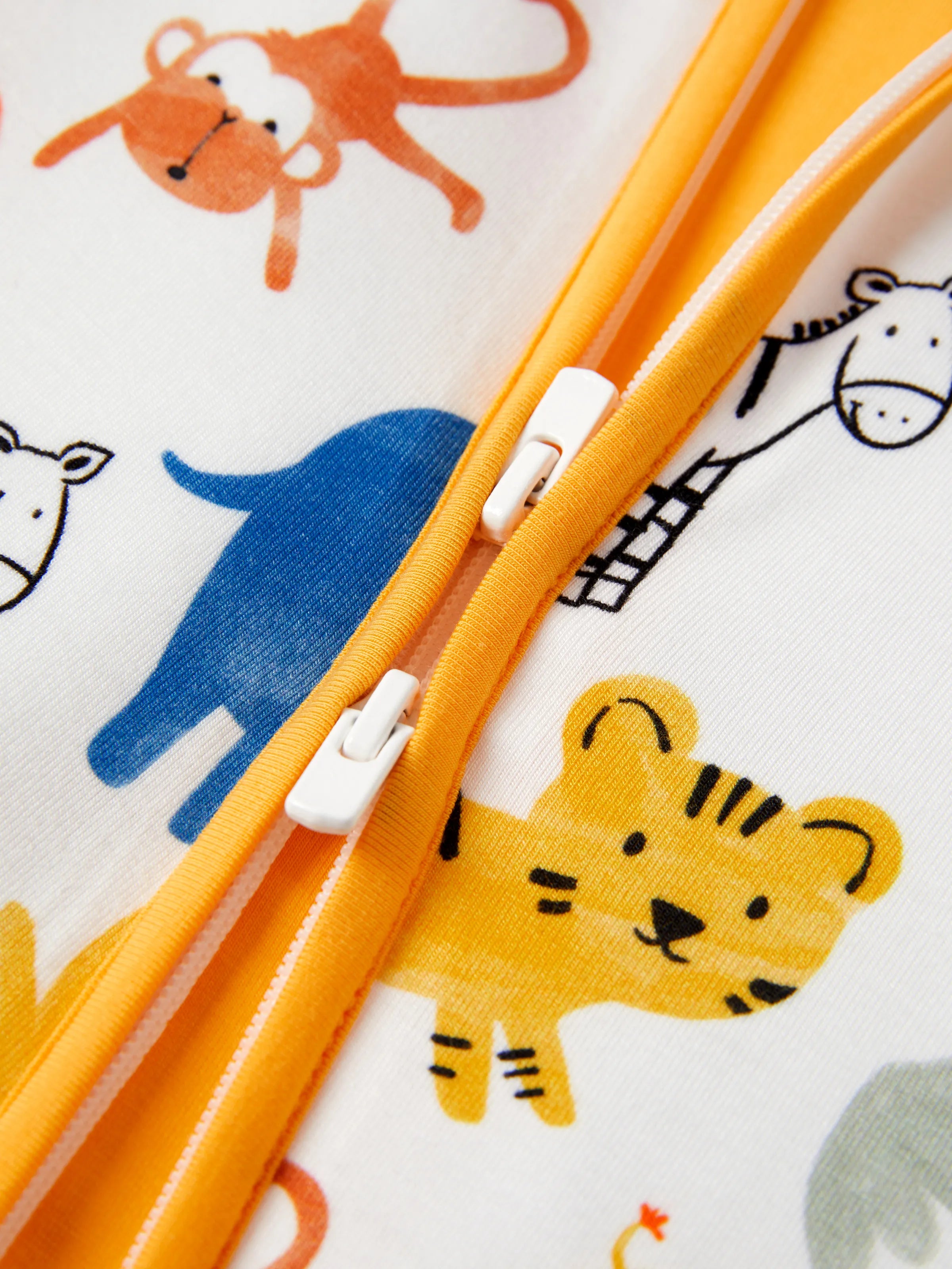 Bamboo Baby Boy/Girl Cartoon Printed 2-Way Zip Onesies Anti Slip Long-sleeve Footie Yellow