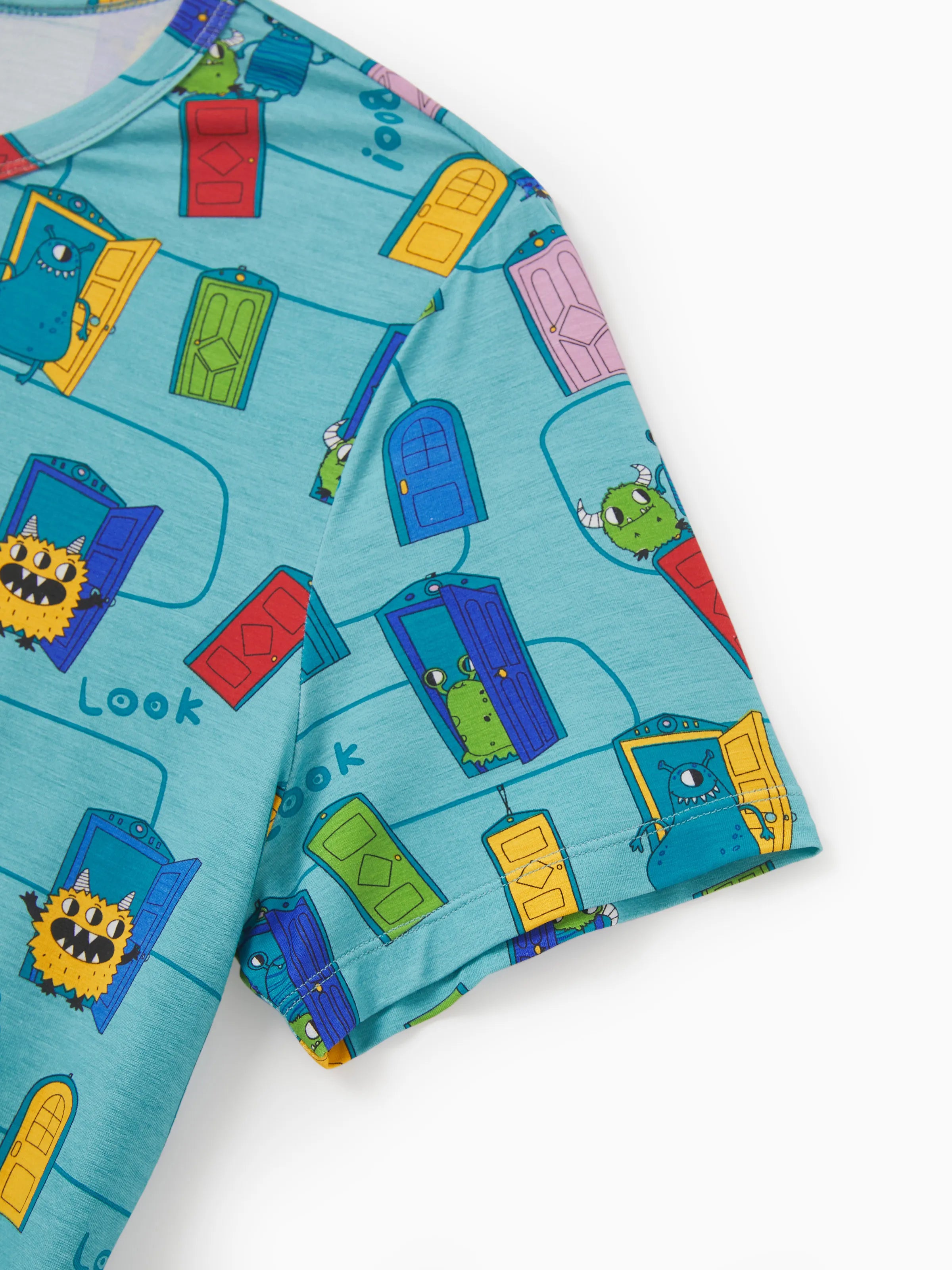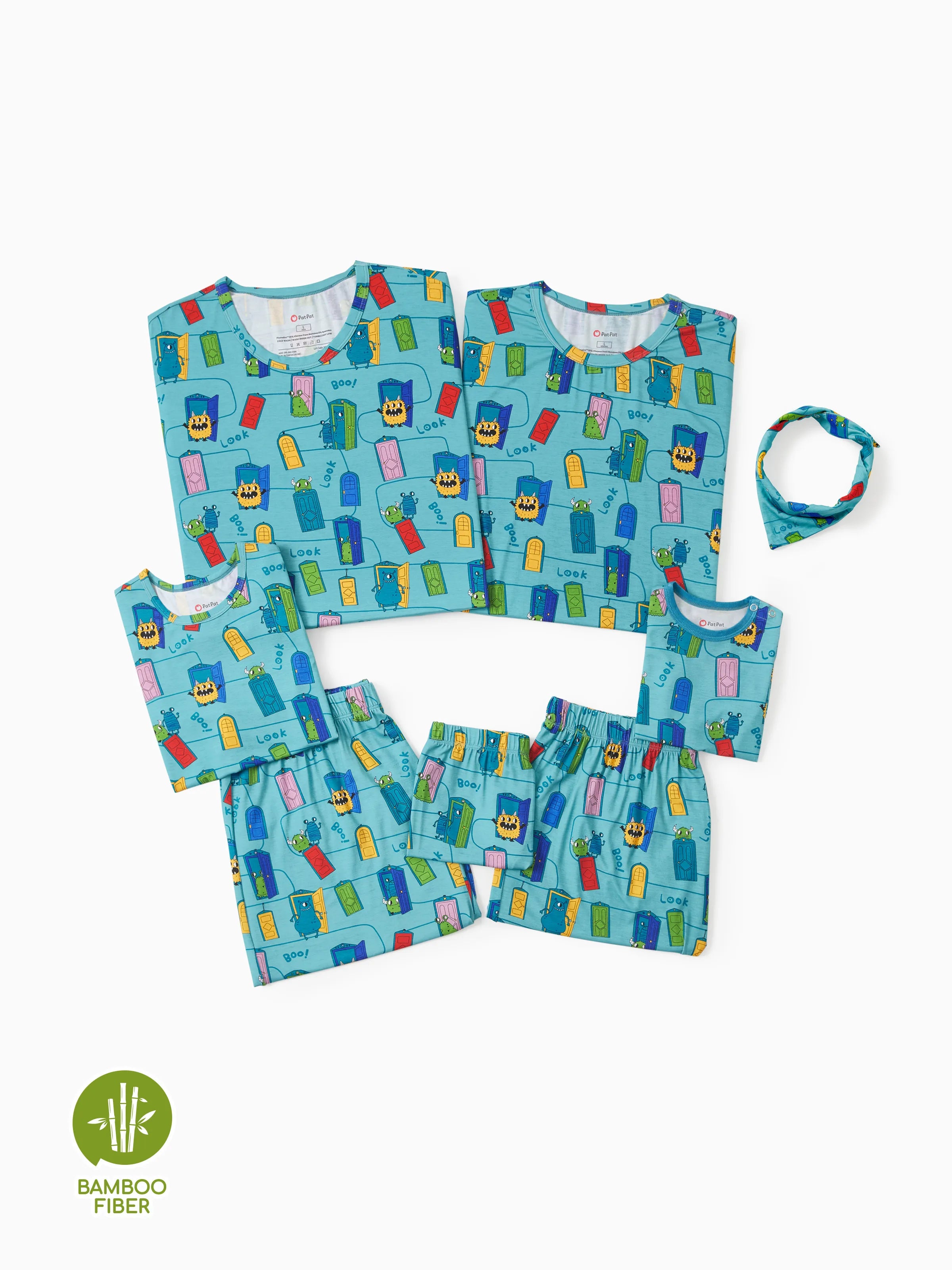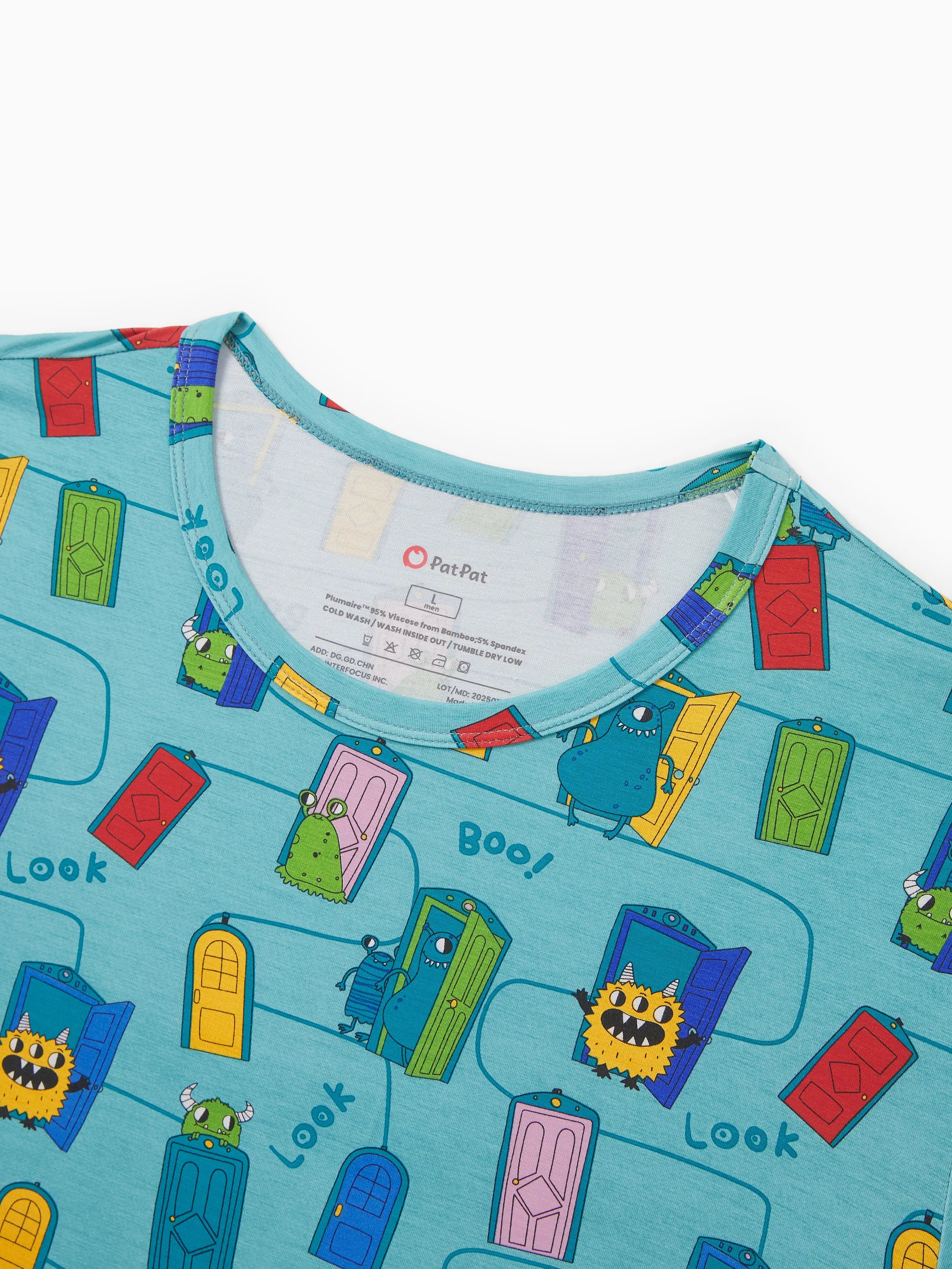 Pyjama familial en bambou imprimé dessin animé, ensemble de pyjama assorti à manches courtes (ajusté pour les enfants) vert