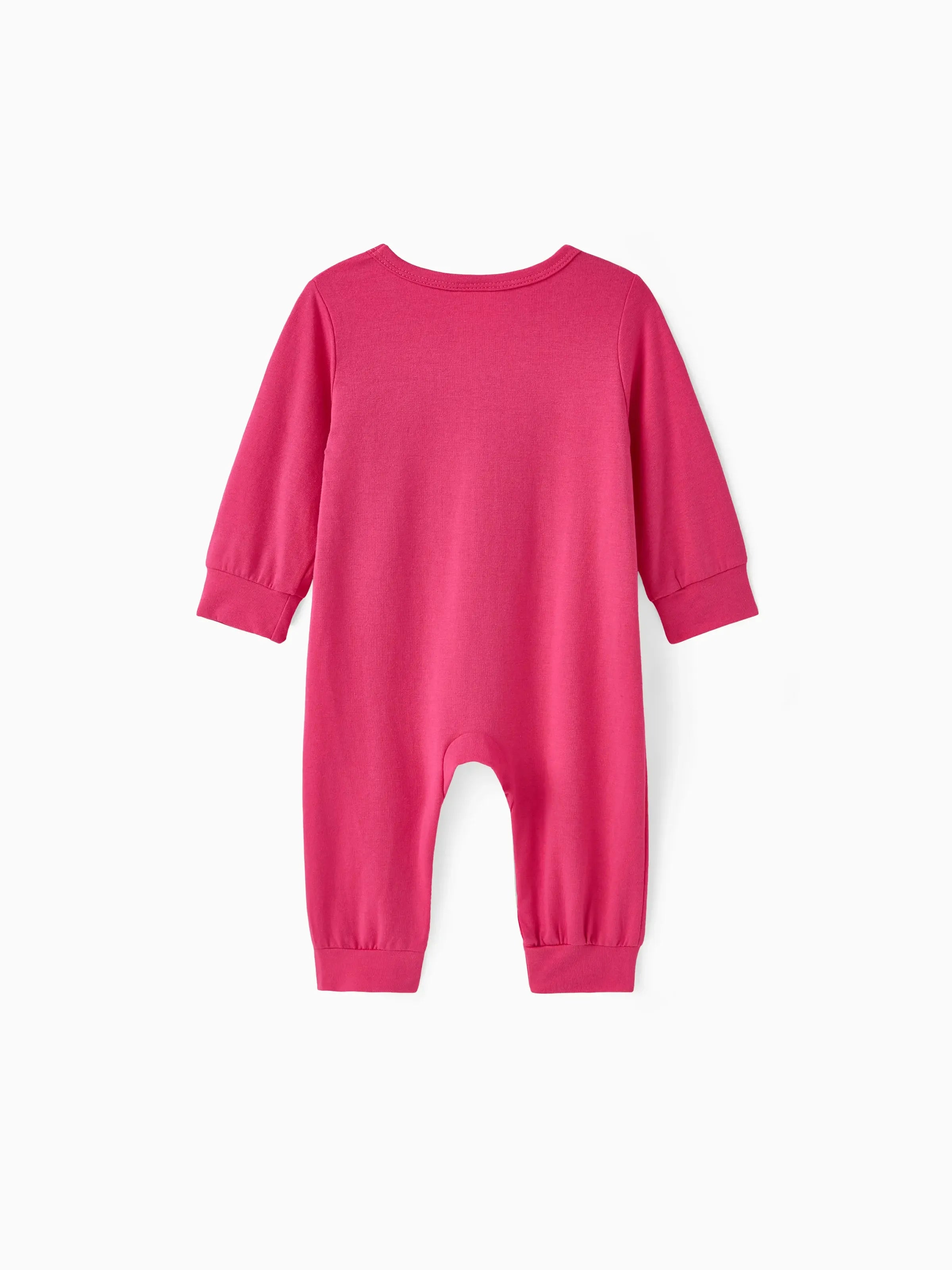 Combinaison à manches longues brodée avec lettres pour bébé fille Barbie, rose vif