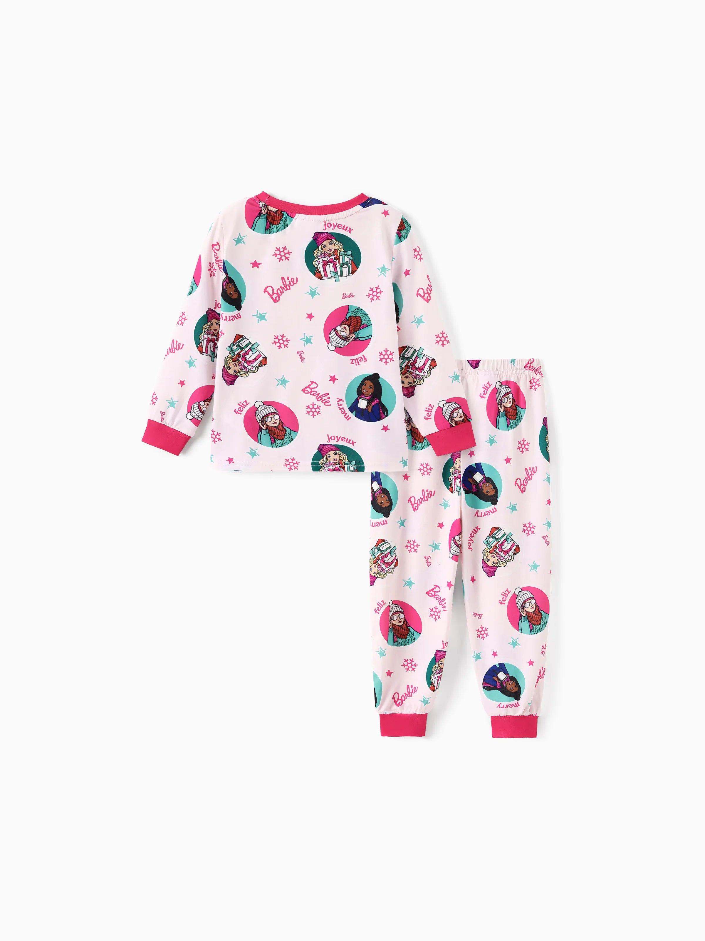 Tenues de Noël assorties tendance sur le thème de Barbie créant un look élégant et amusant.