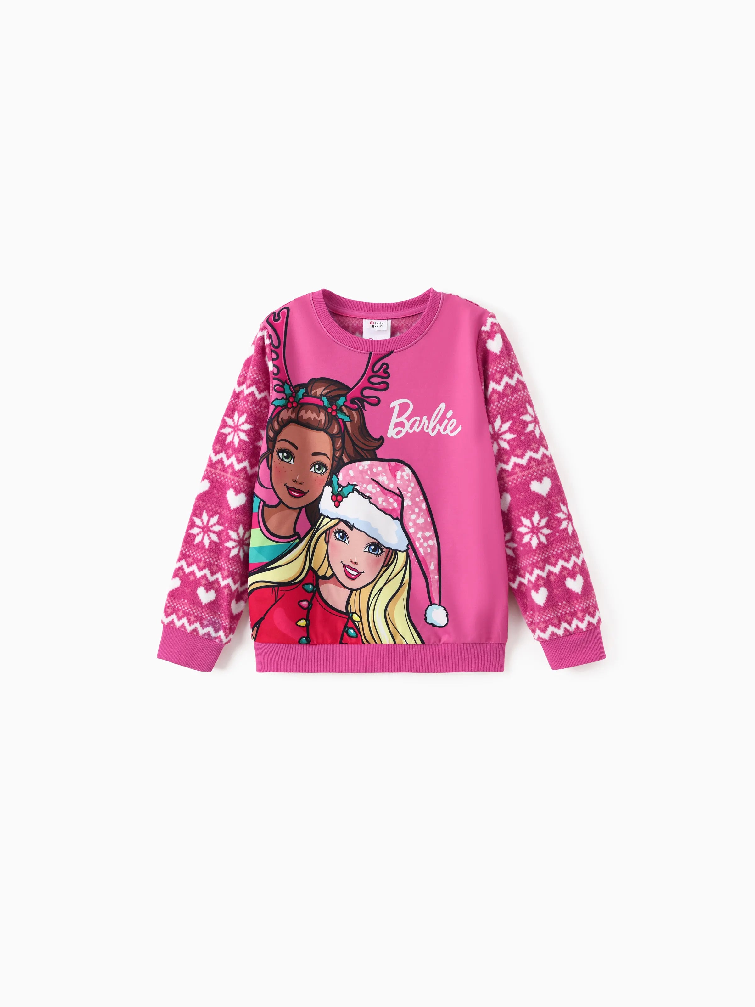 Sweat-shirt à manches longues imprimé personnage de Noël Barbie Kid Girl rose