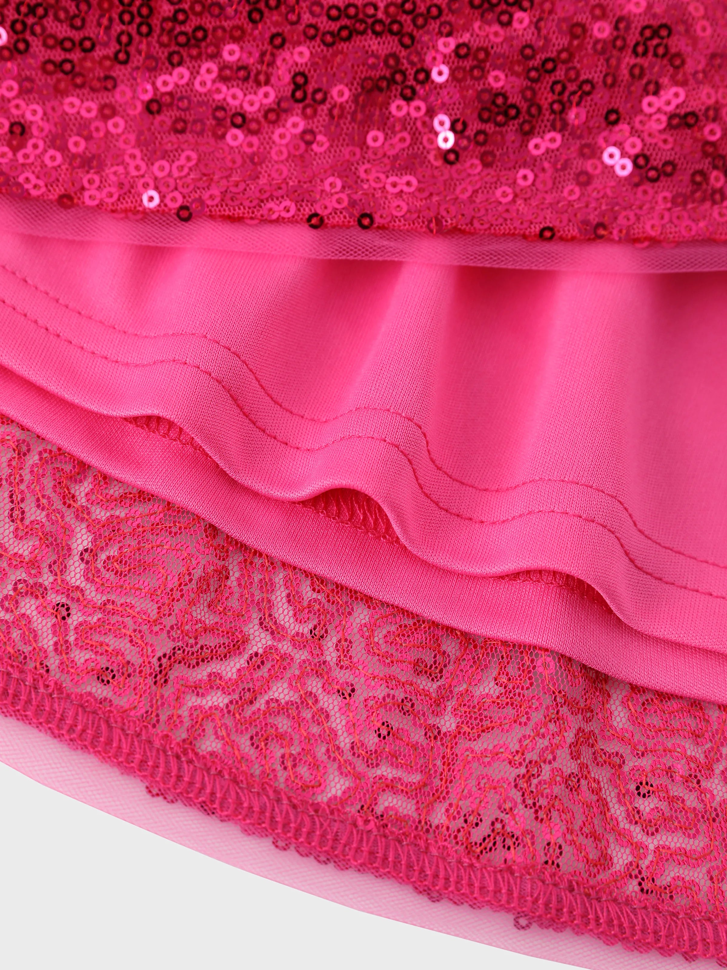 Barbie Toddler/Kid Girl 3pcs Cotton Top and Sequin embroidery Skirt with Headband Set Hot Pink