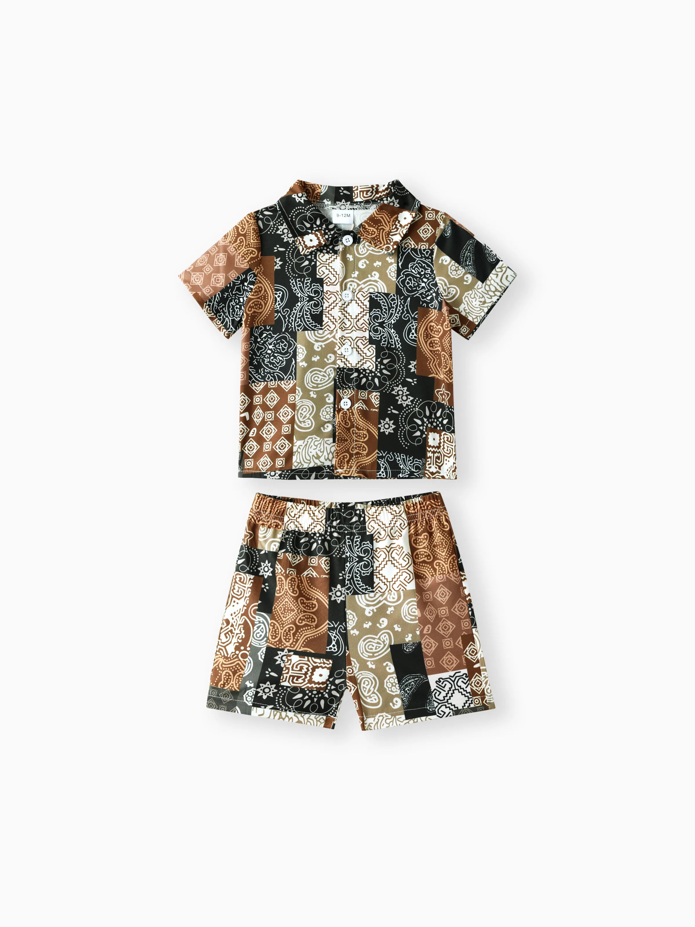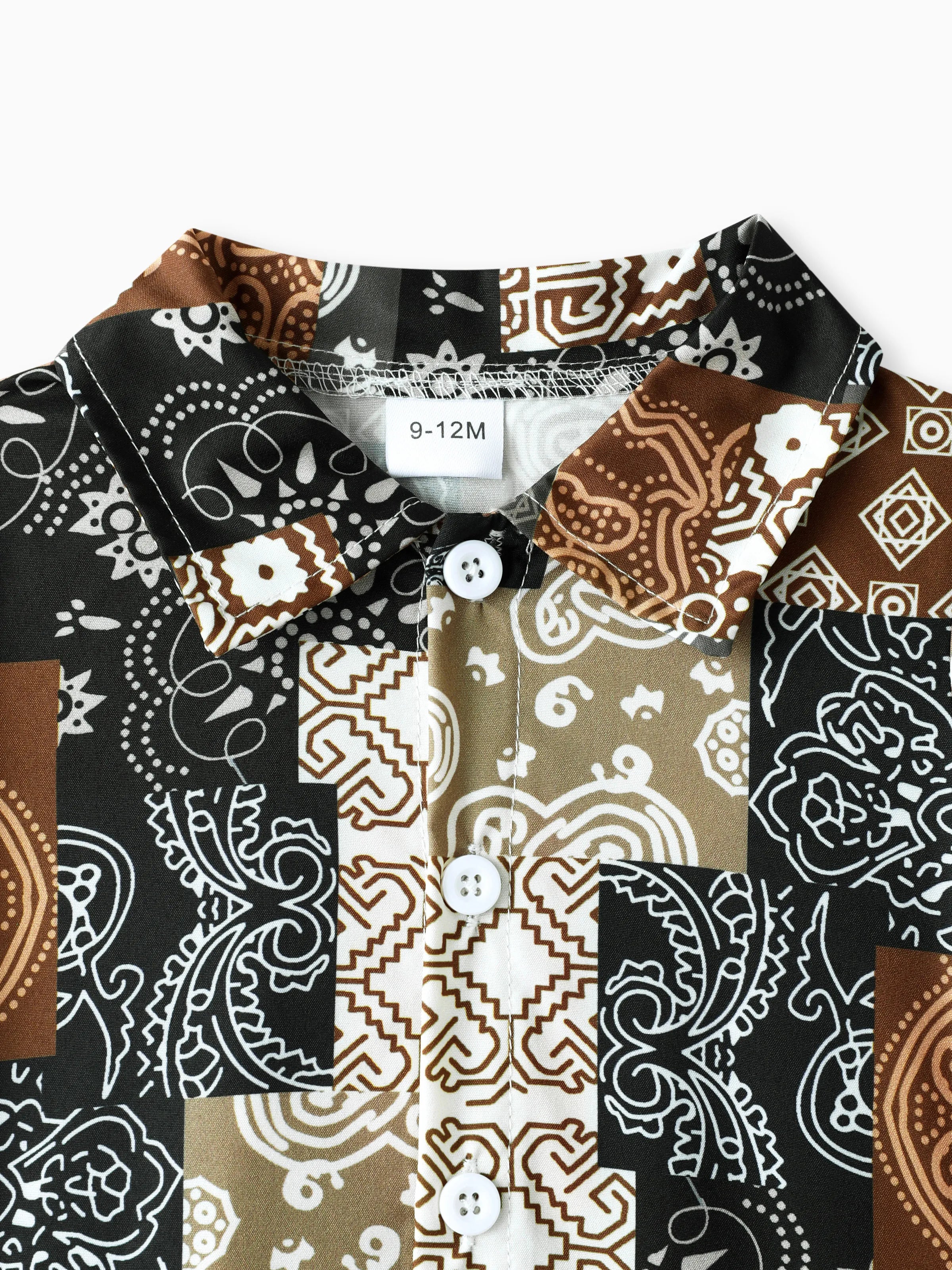 Ensemble 2 pièces décontracté ethnique pour bébé garçon avec revers, 100 % polyester, marron standard