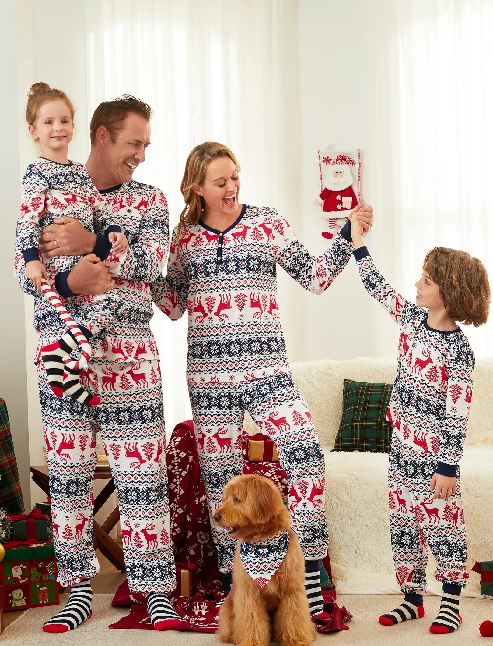 Stay cozy with your loved ones this Christmas with our matching allover print long-sleeve pajamas sets, available in a variety of sizes for the whole family.