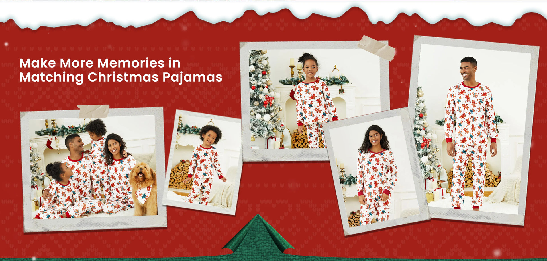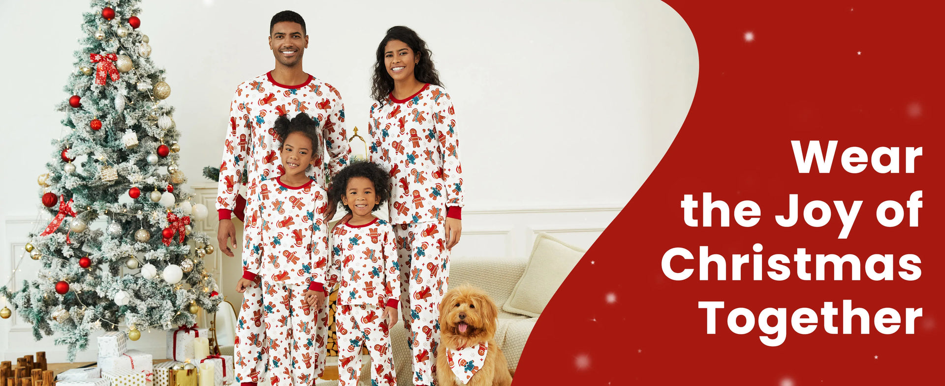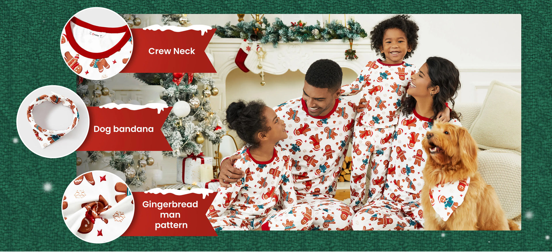 Ensemble pyjama de Noël assorti pour toute la famille, imprimé bonhomme en pain d'épices, avec chaussettes blanches