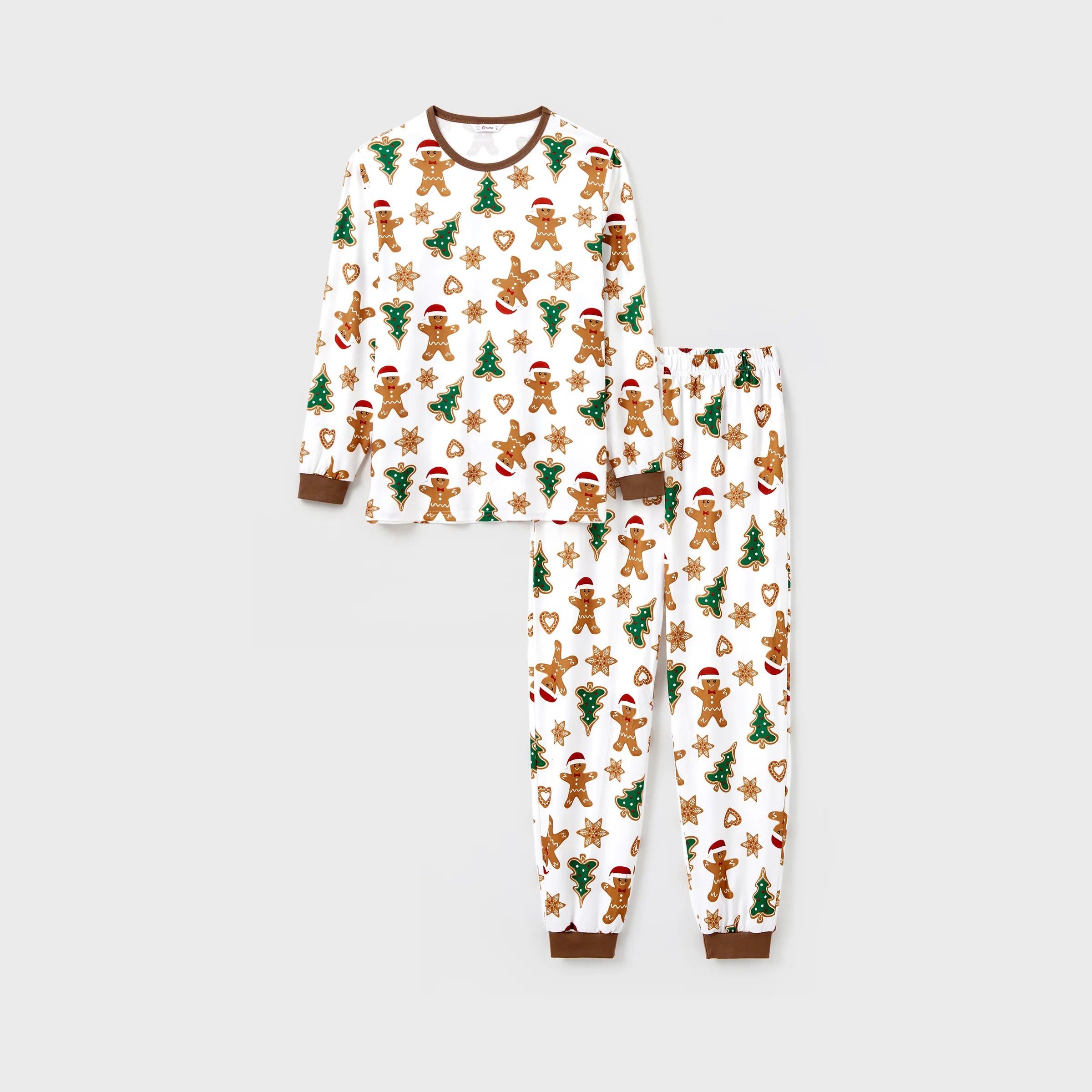 Pyjama de Noël à manches longues et imprimé arbre et bonhomme en pain d'épices, avec chaussettes de Noël, couleur café