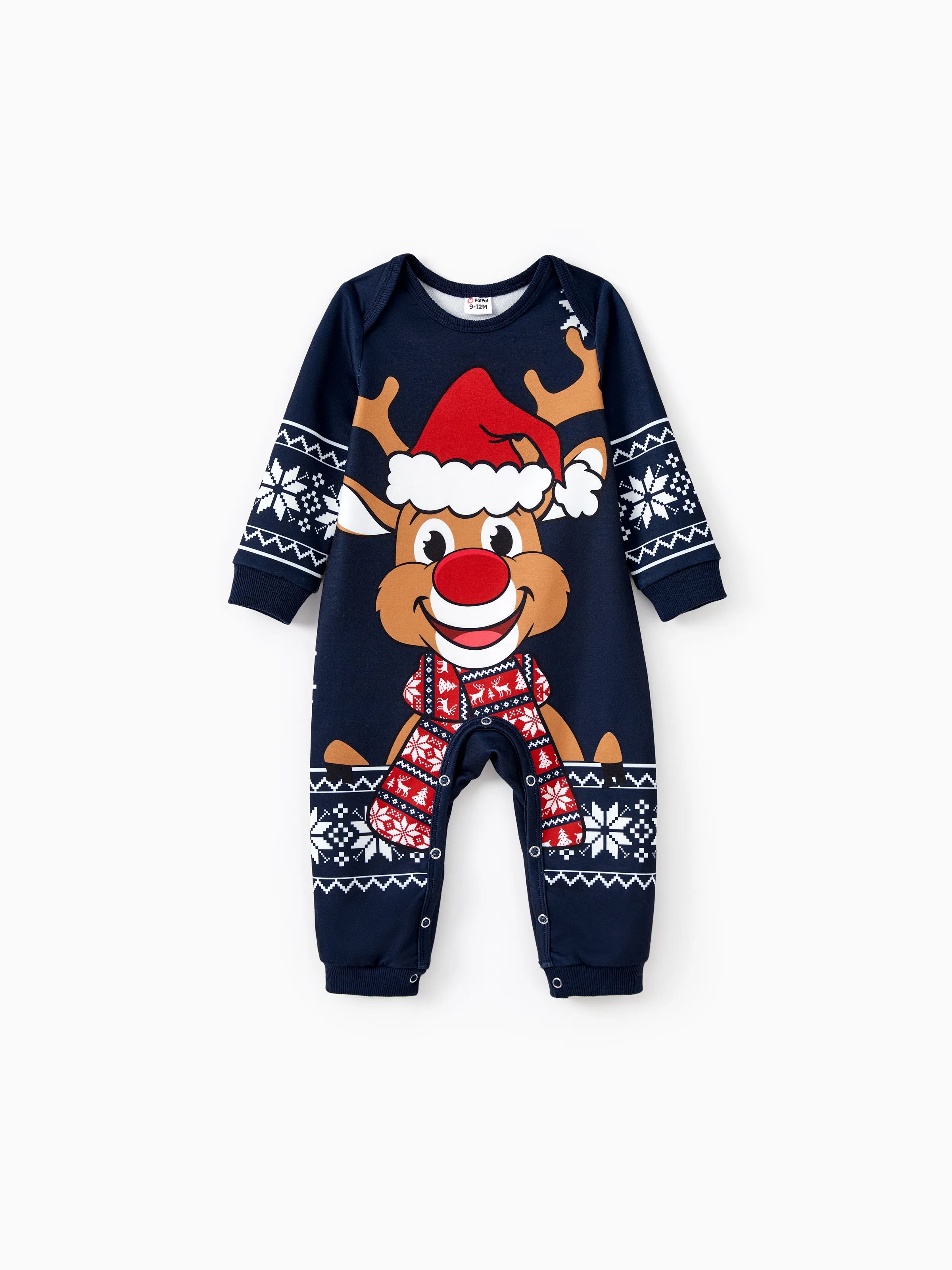 • Caractéristiques du produit : Motif cerf amusant assorti sur les hauts/combinaisons avec fond de flocon de neige.