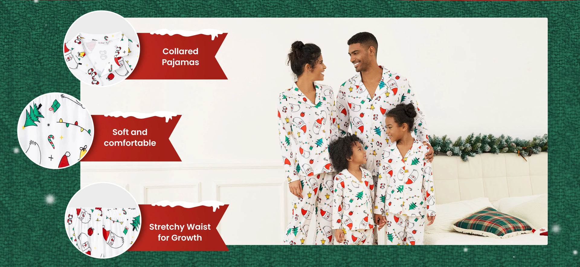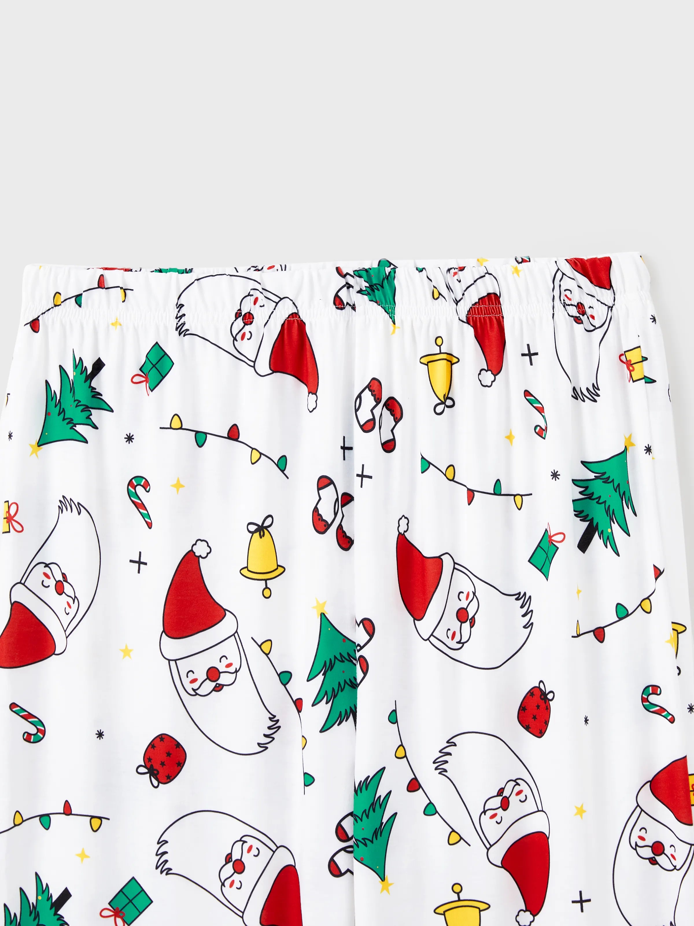 Répandez la joie de Noël avec notre ensemble de pyjama familial assorti, vibrant et confortable, composé de lumières de Noël festives, d'arbres et d'imprimés du Père Noël - parfait pour les acheteurs impulsifs des fêtes.