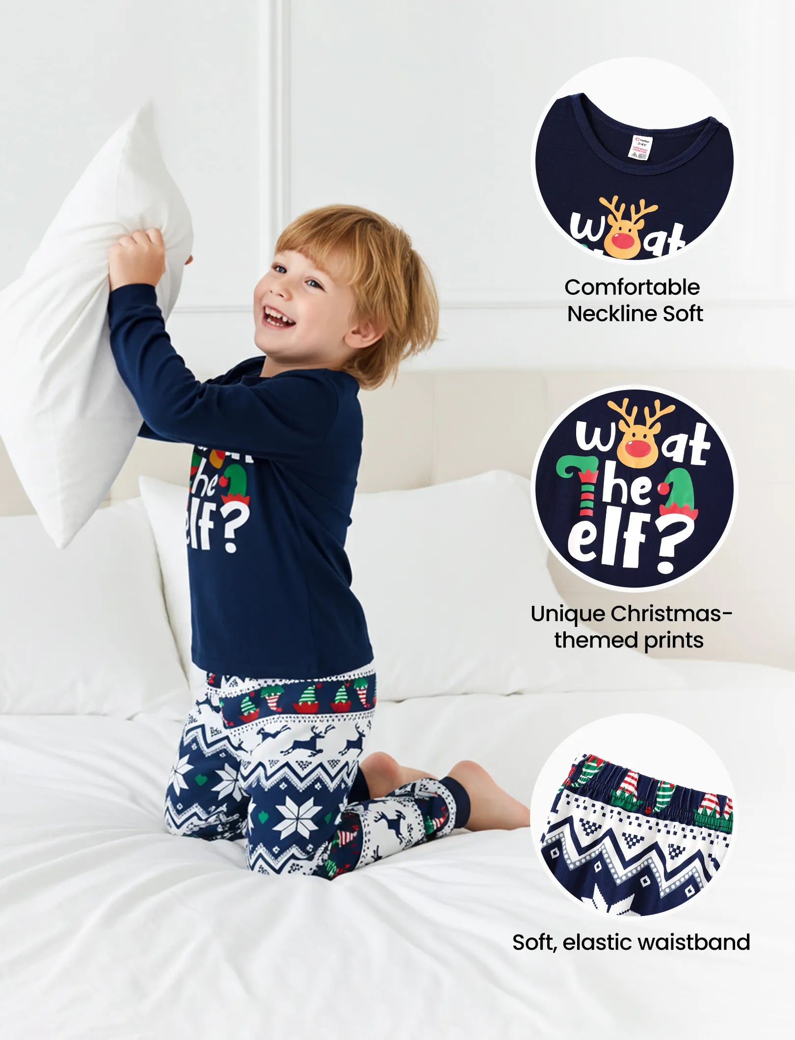 Celebrate the festive season in style with our matching dark blue family pajamas set featuring graphics.
