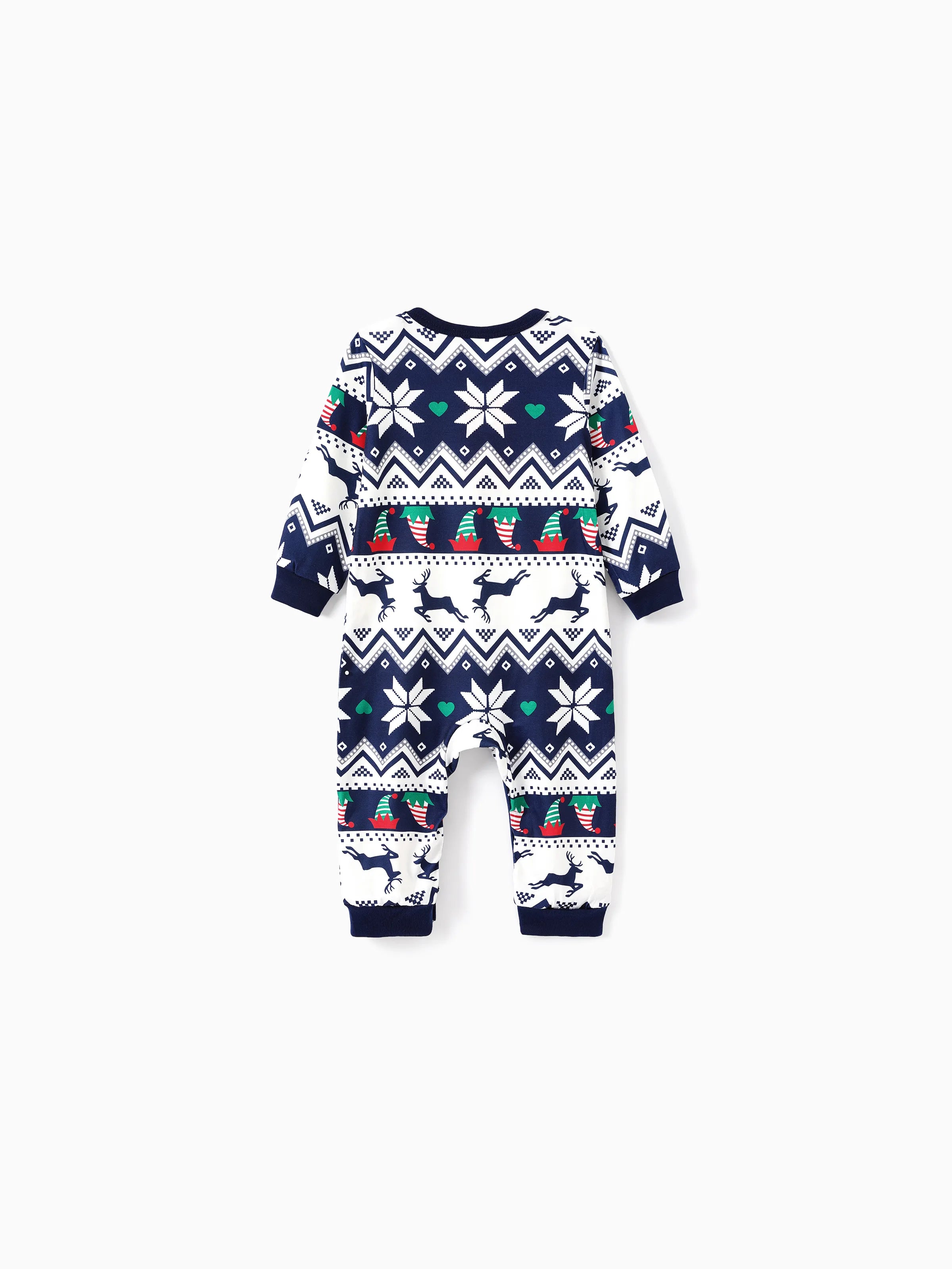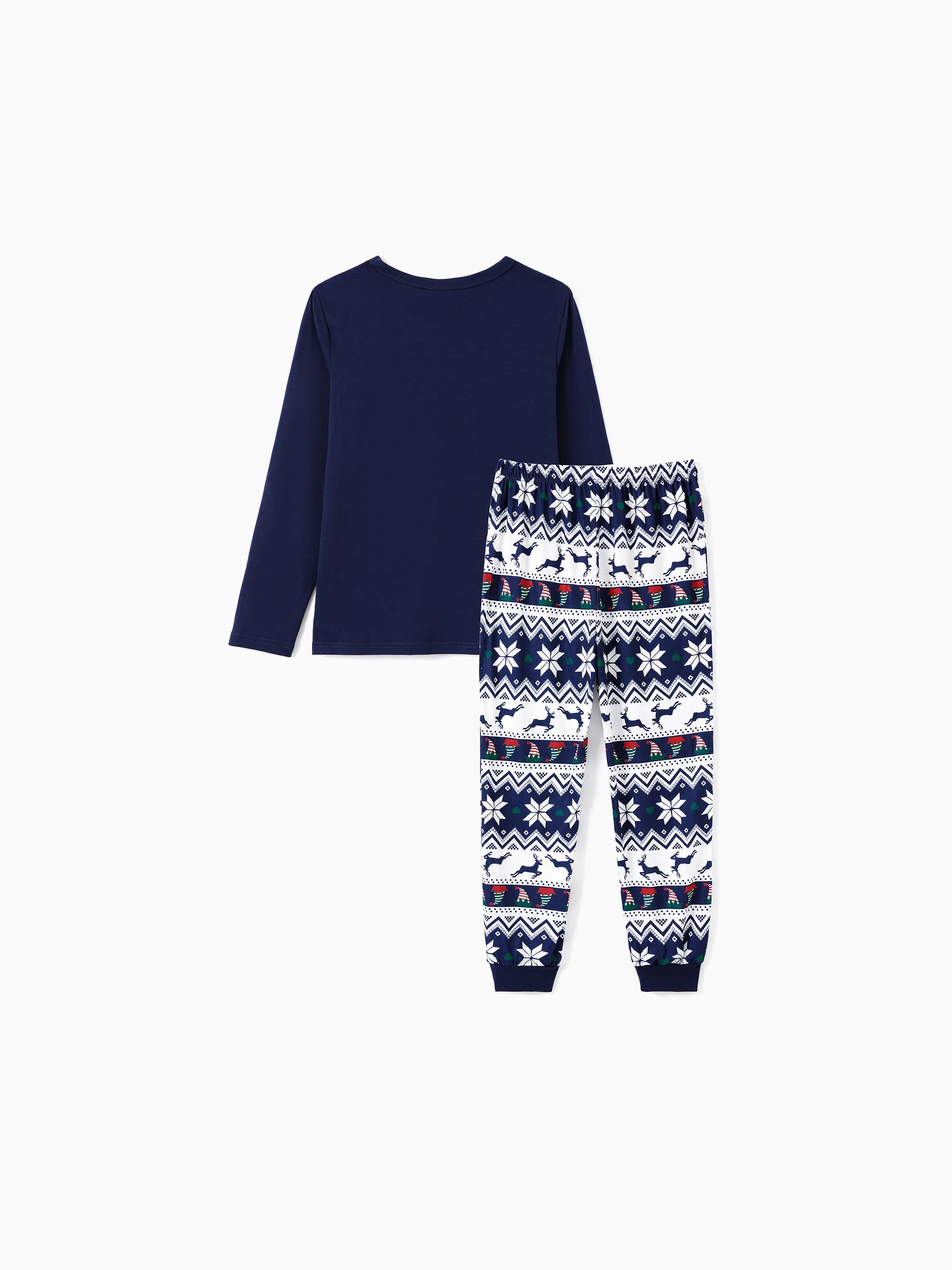 Christmas Family Matching Dark Blue Graphic Long-sleeve Pajamas Sets (Flame Resistant) blueblack