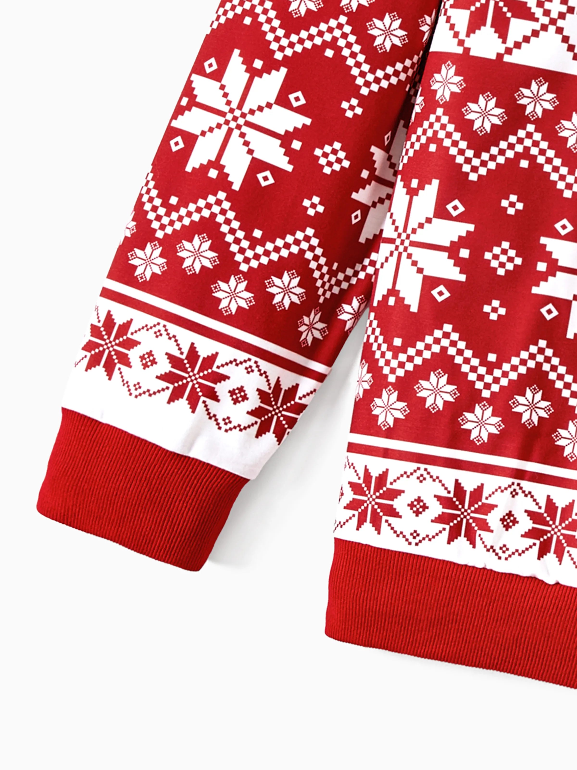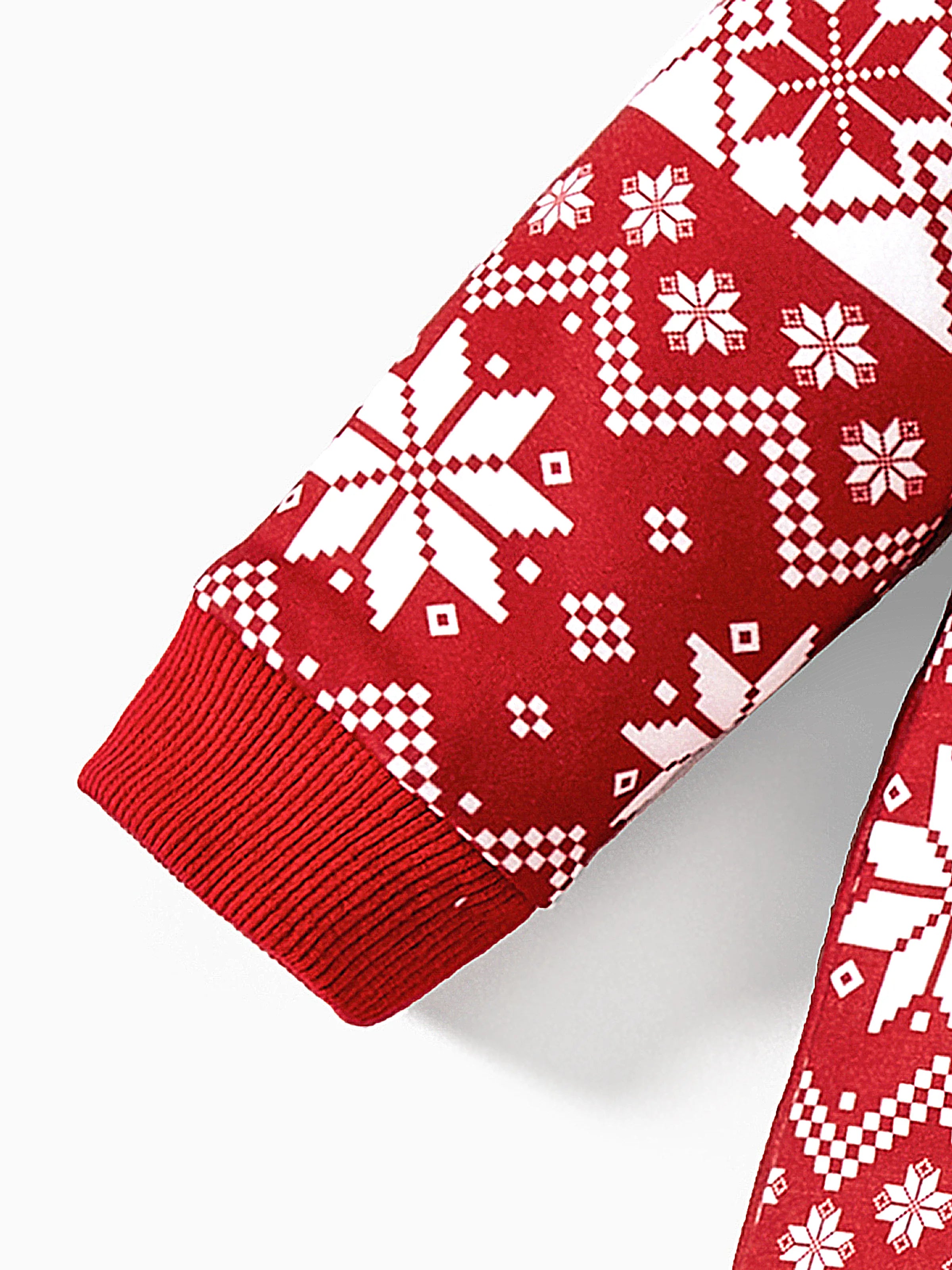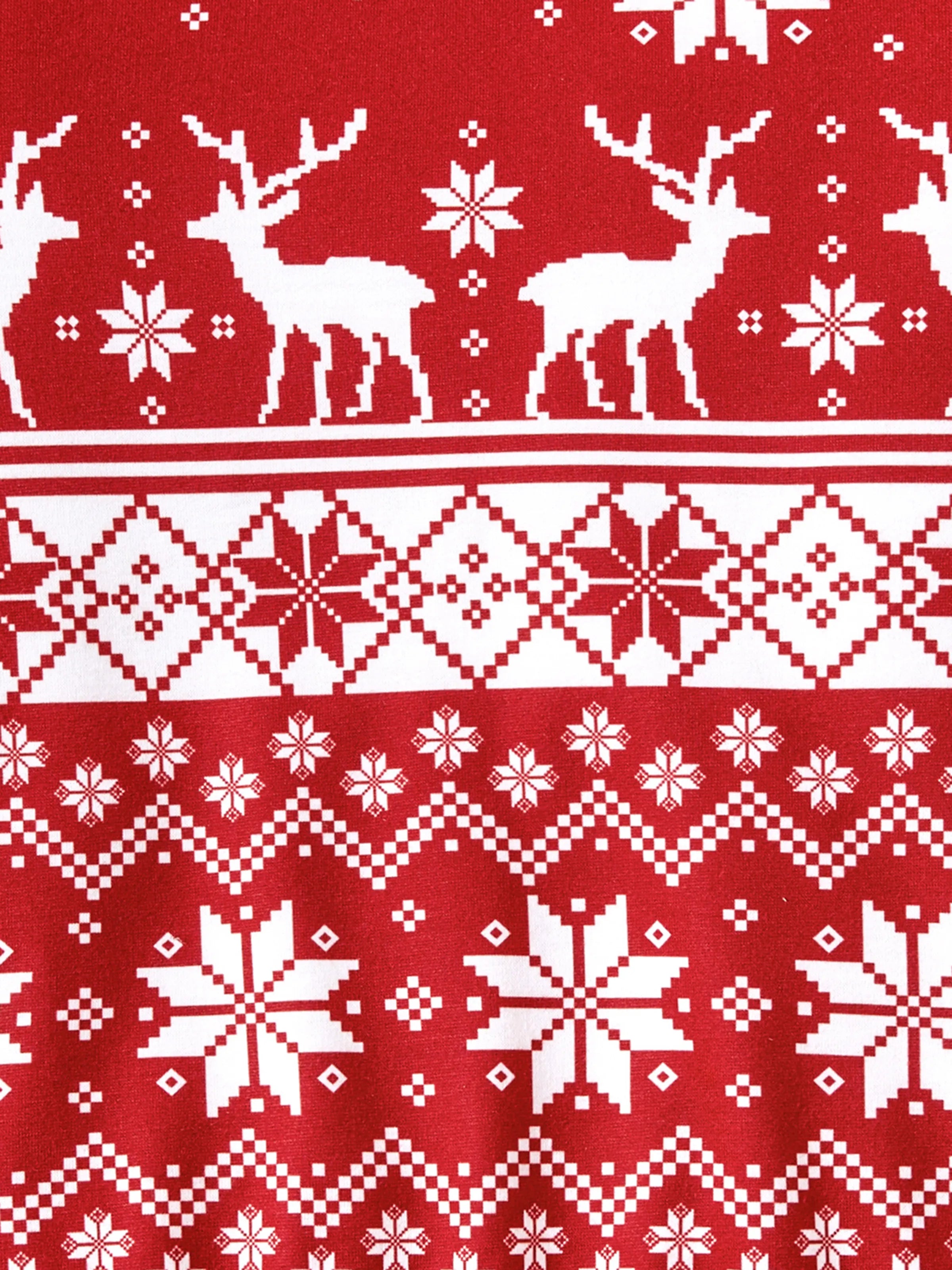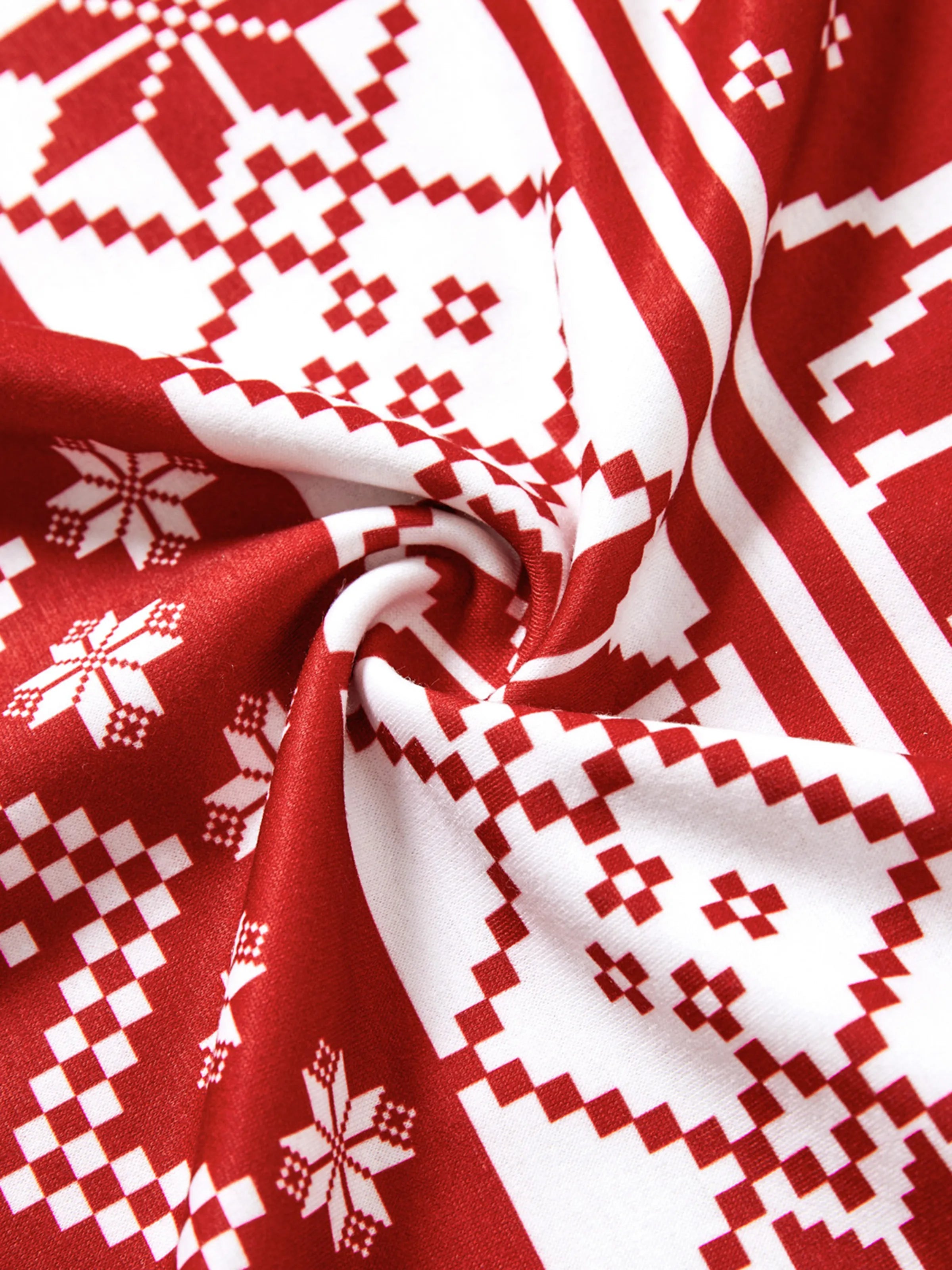 Célébrez la période des fêtes avec cette tenue rouge assortie aux imprimés de rennes et de flocons de neige, parfaite pour les occasions décontractées.