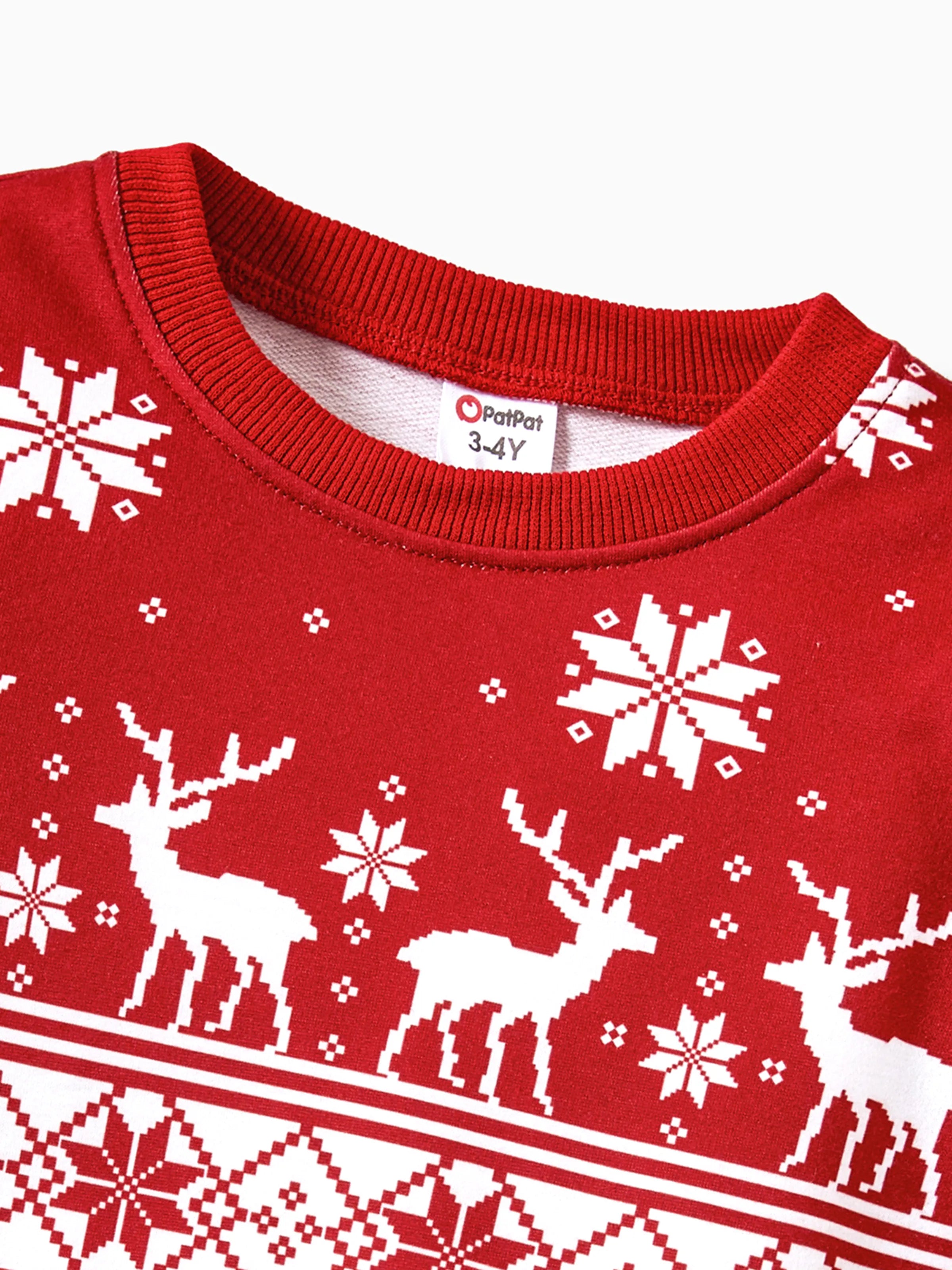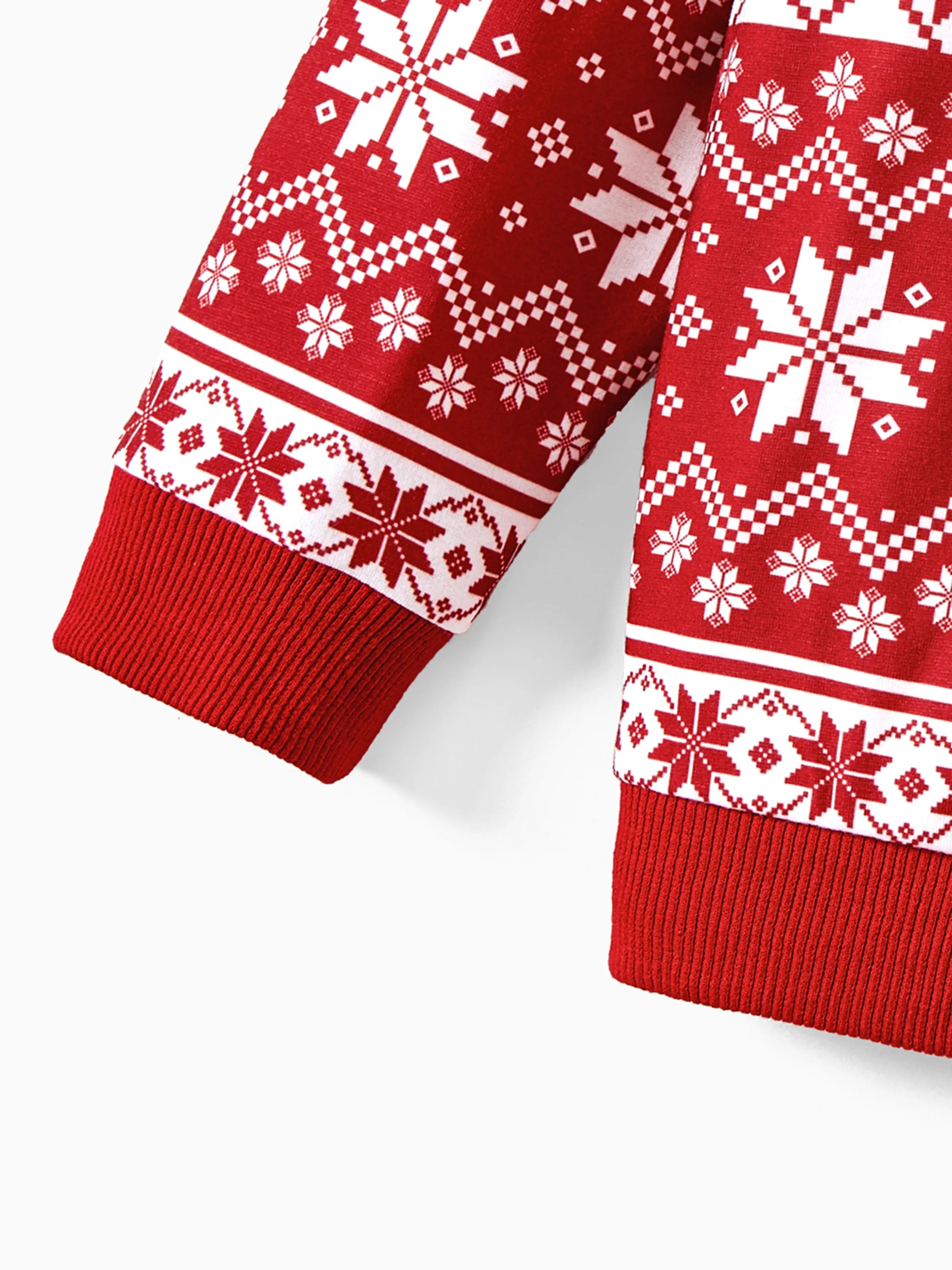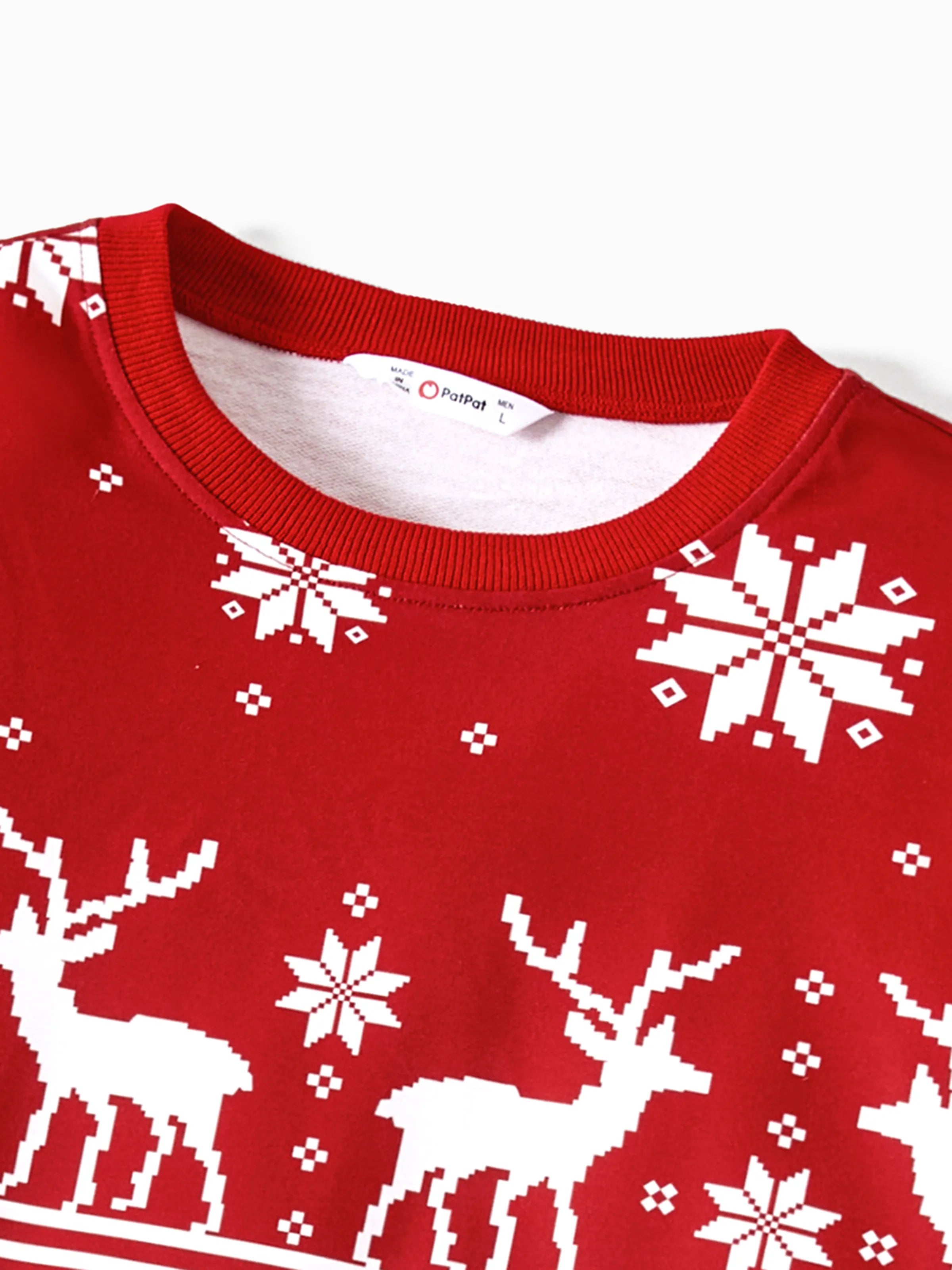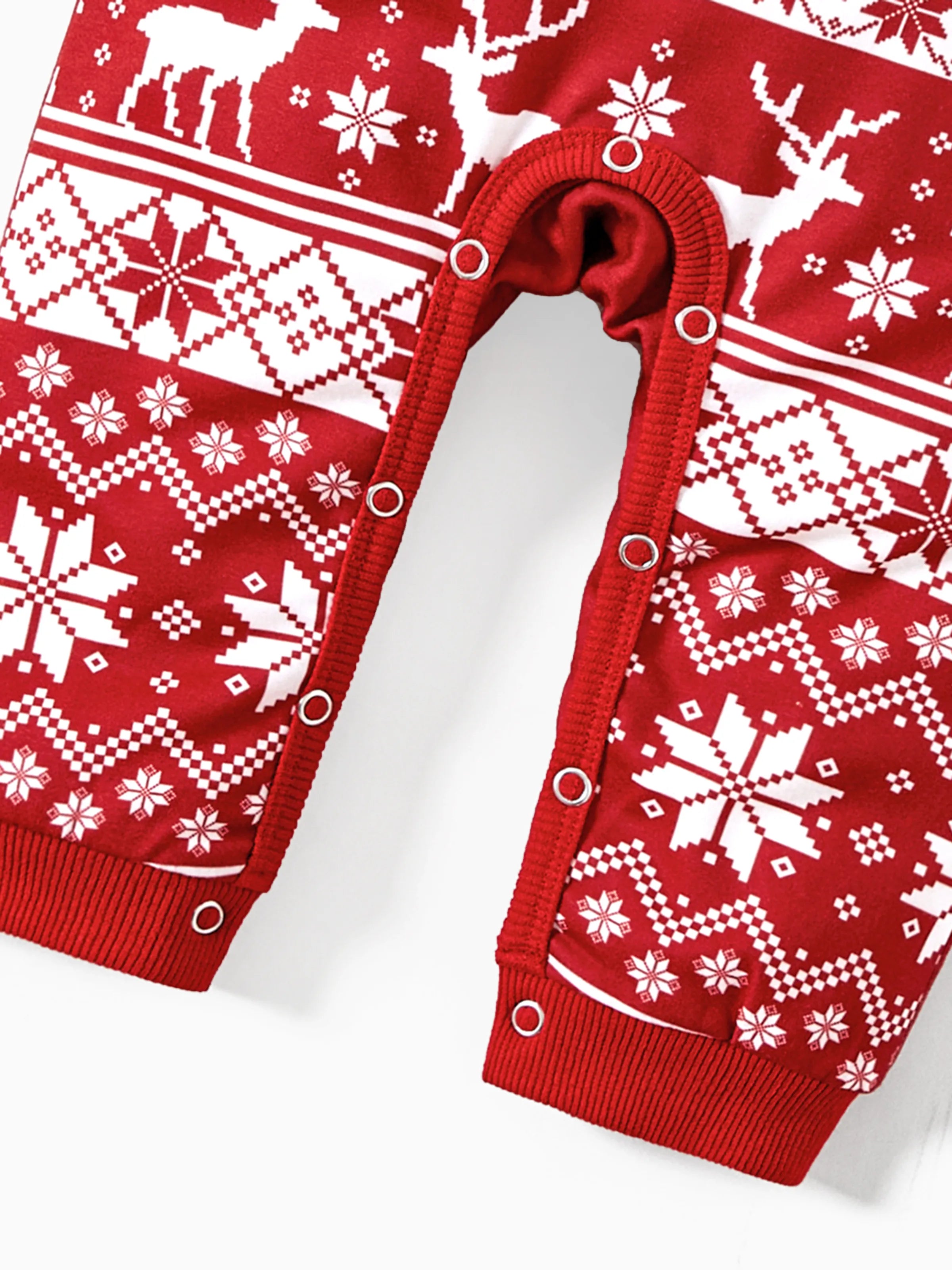 Célébrez la période des fêtes avec cette tenue rouge assortie aux imprimés de rennes et de flocons de neige, parfaite pour les occasions décontractées.