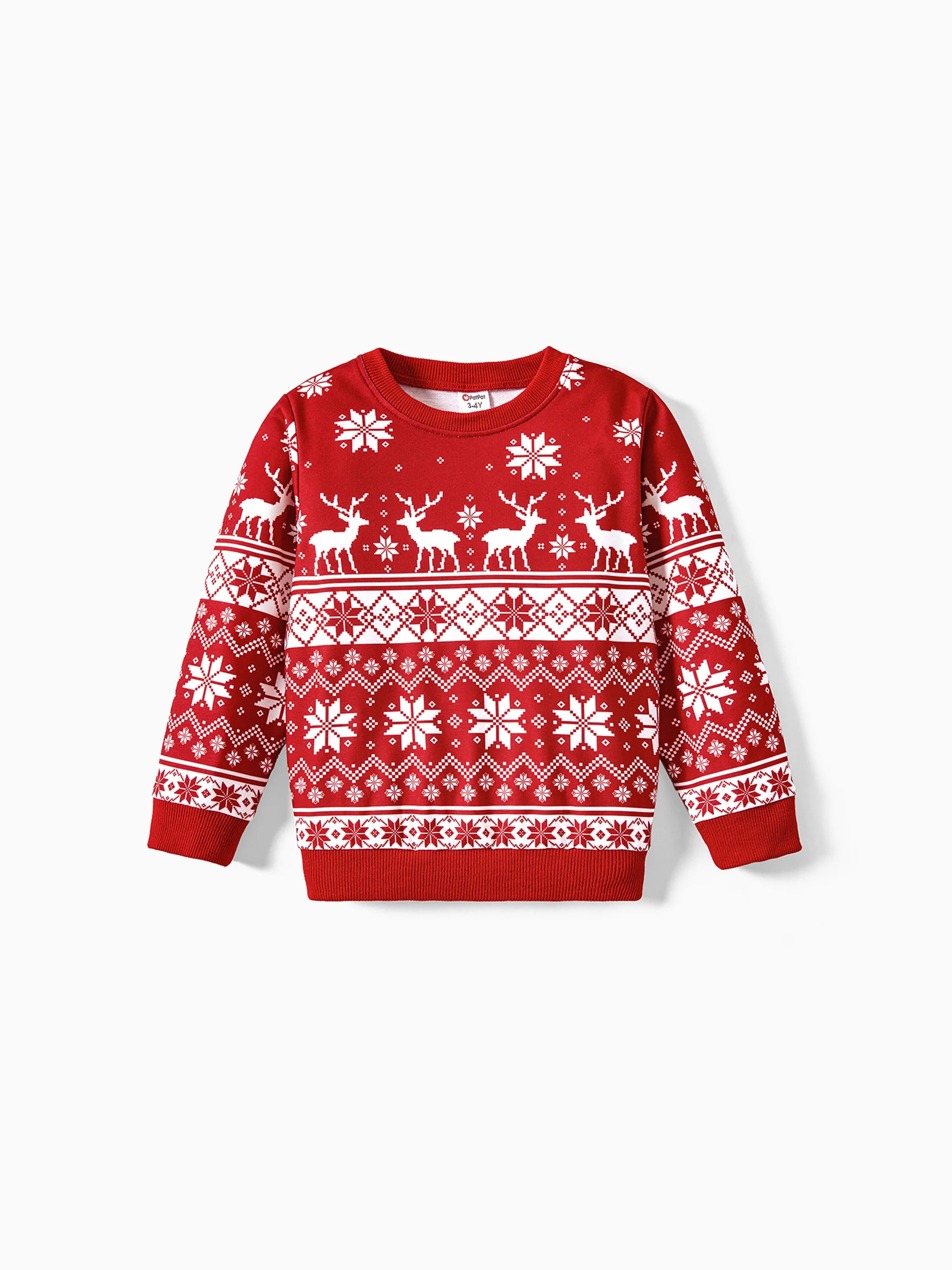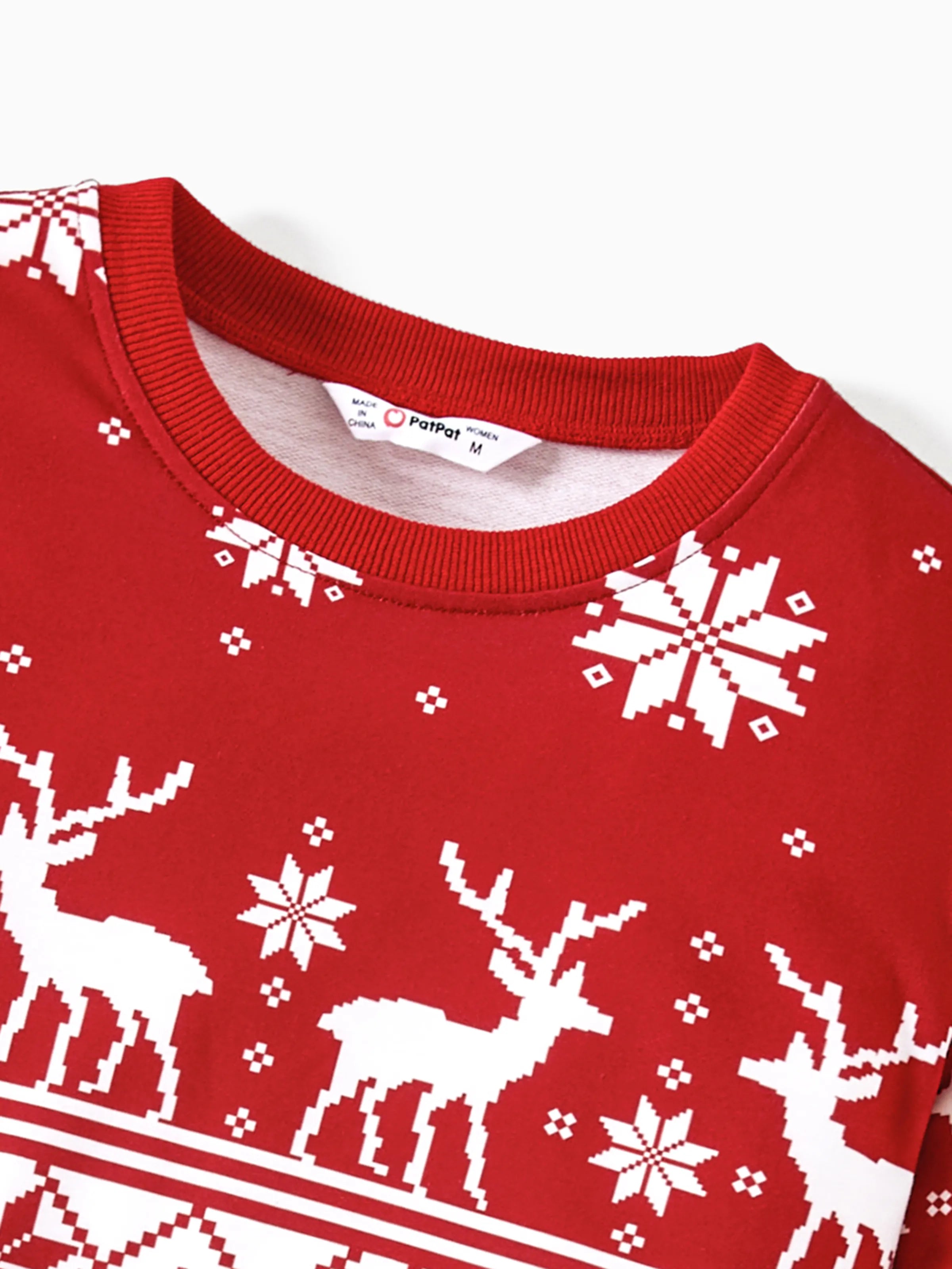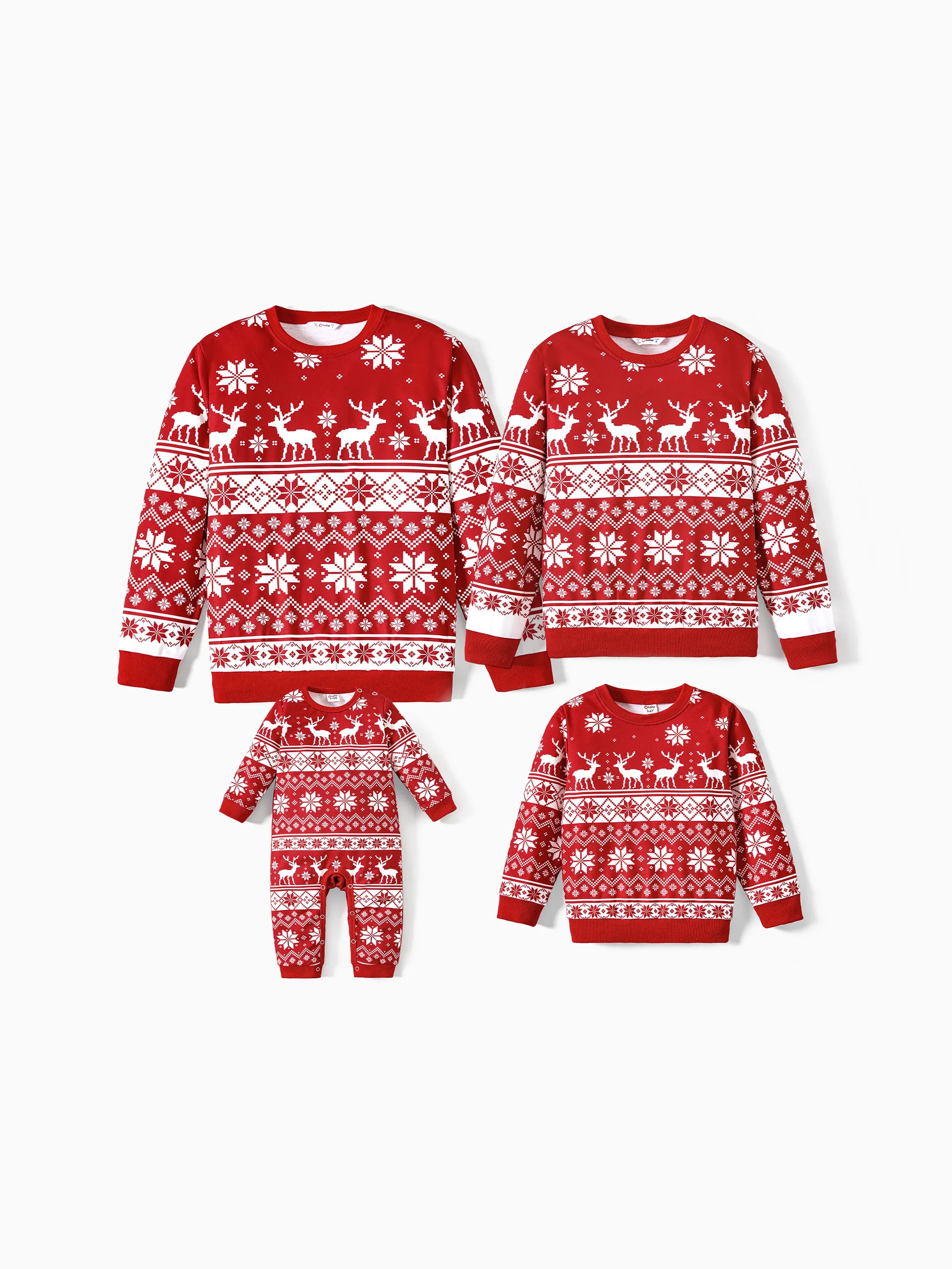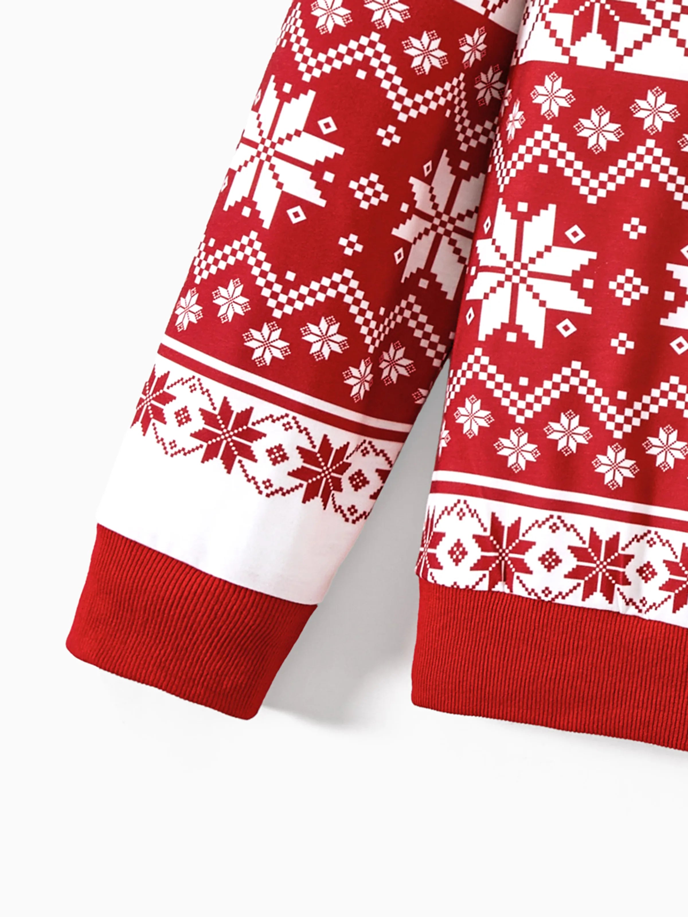 Célébrez la période des fêtes avec cette tenue rouge assortie aux imprimés de rennes et de flocons de neige, parfaite pour les occasions décontractées.