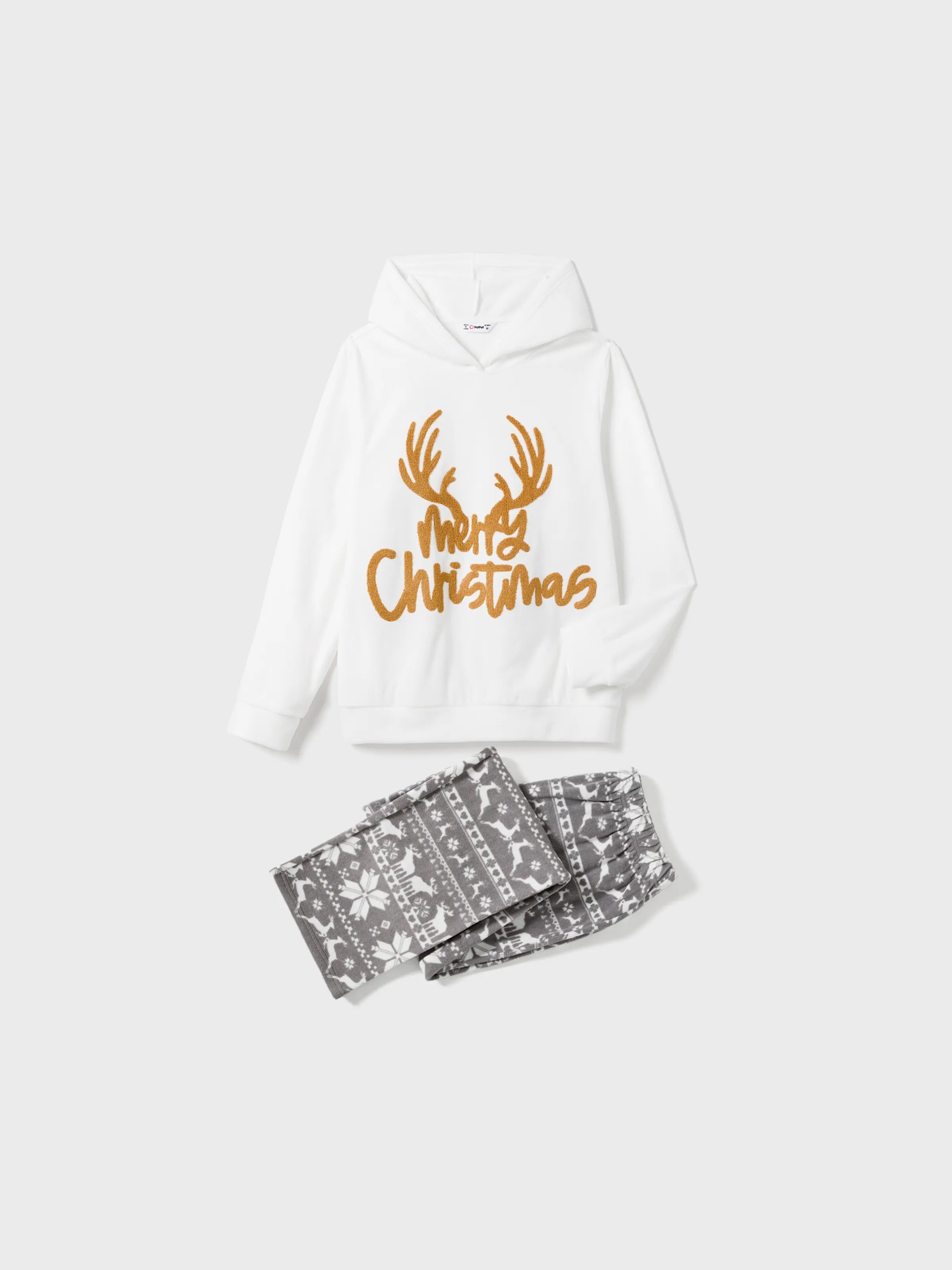 Ensemble pyjama de Noël familial assorti avec lettres brodées, manches longues, capuche et chaussettes de Noël blanches