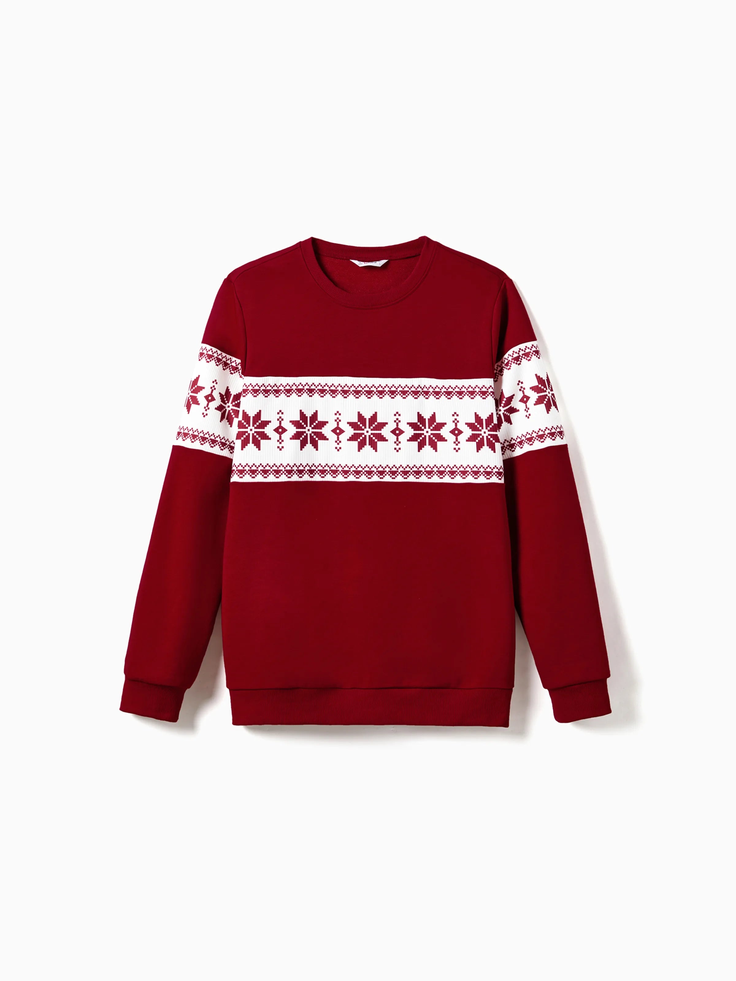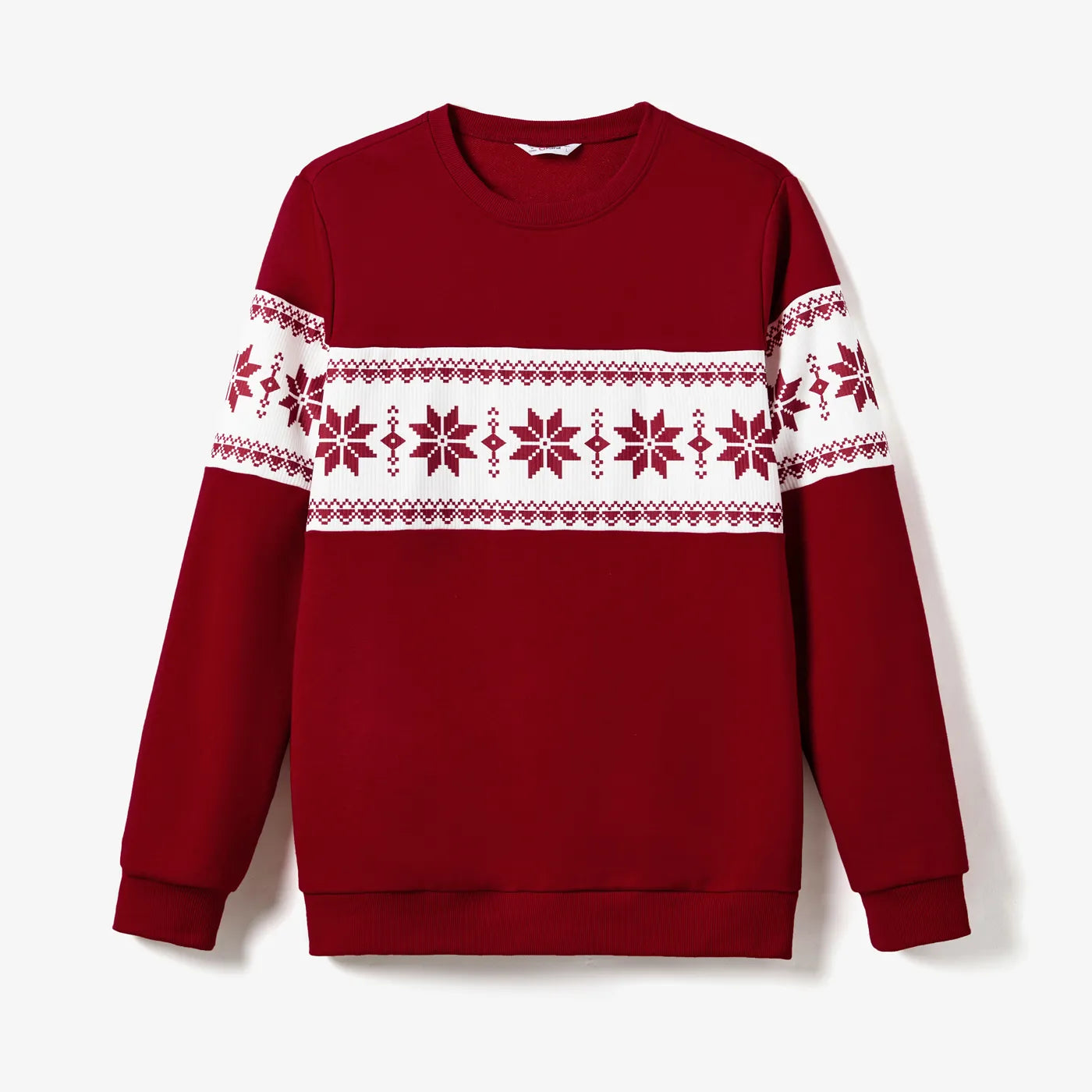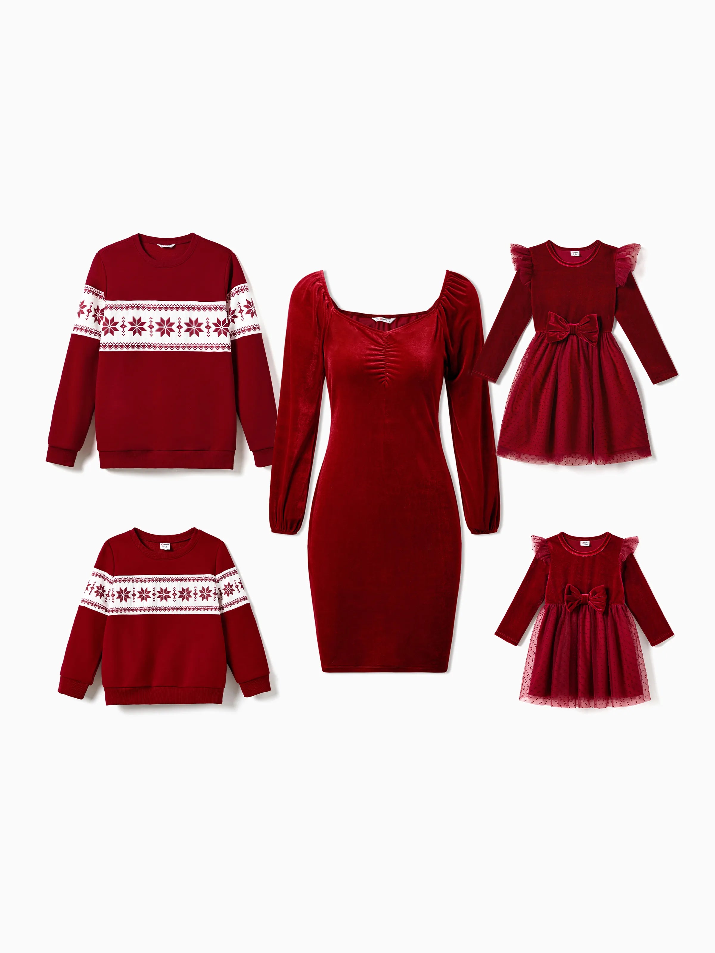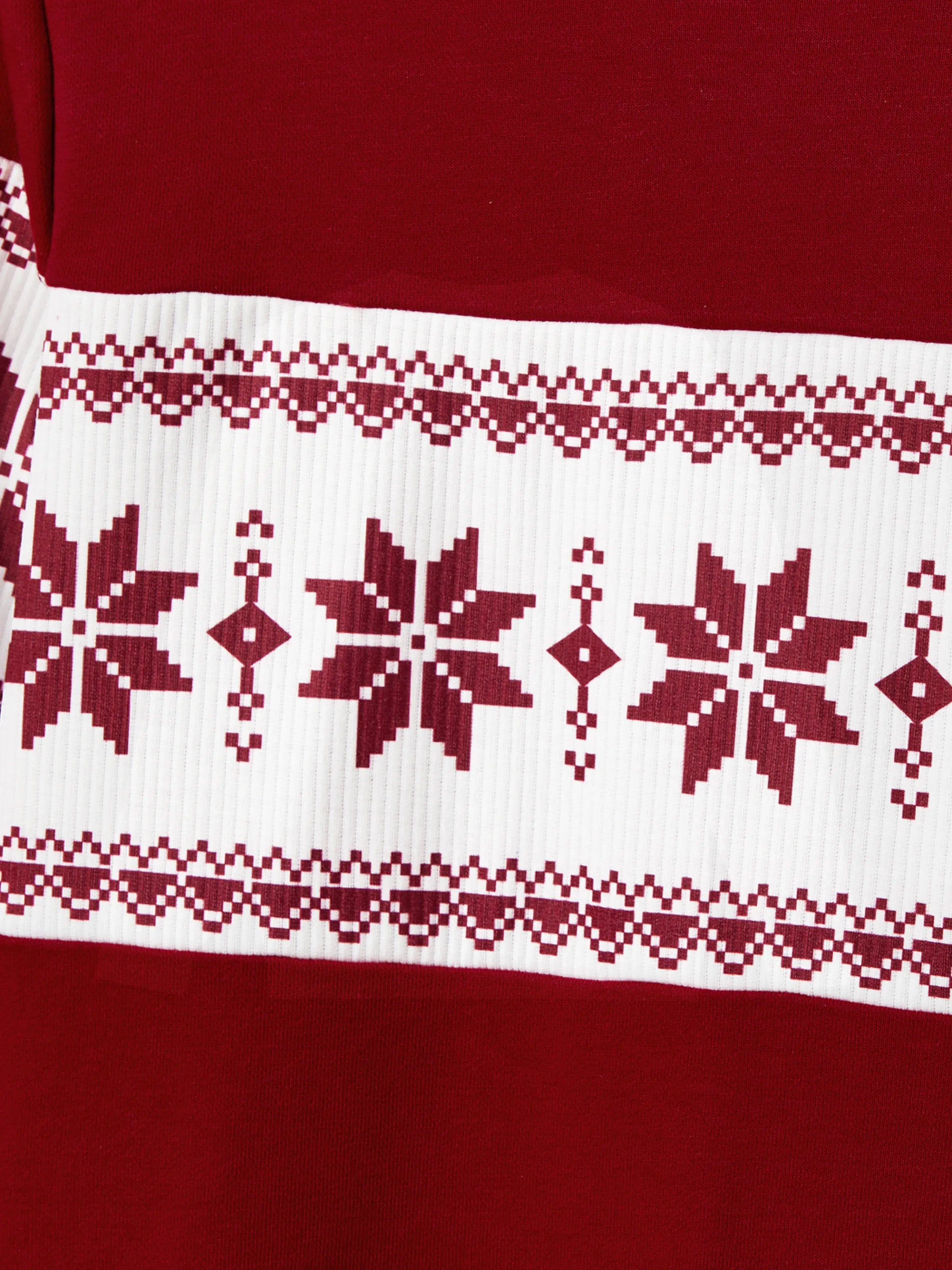 Parfait pour les sorties en famille pendant Noël, cet ensemble de tenues assorties présente un thème imprimé rouge et flocon de neige.