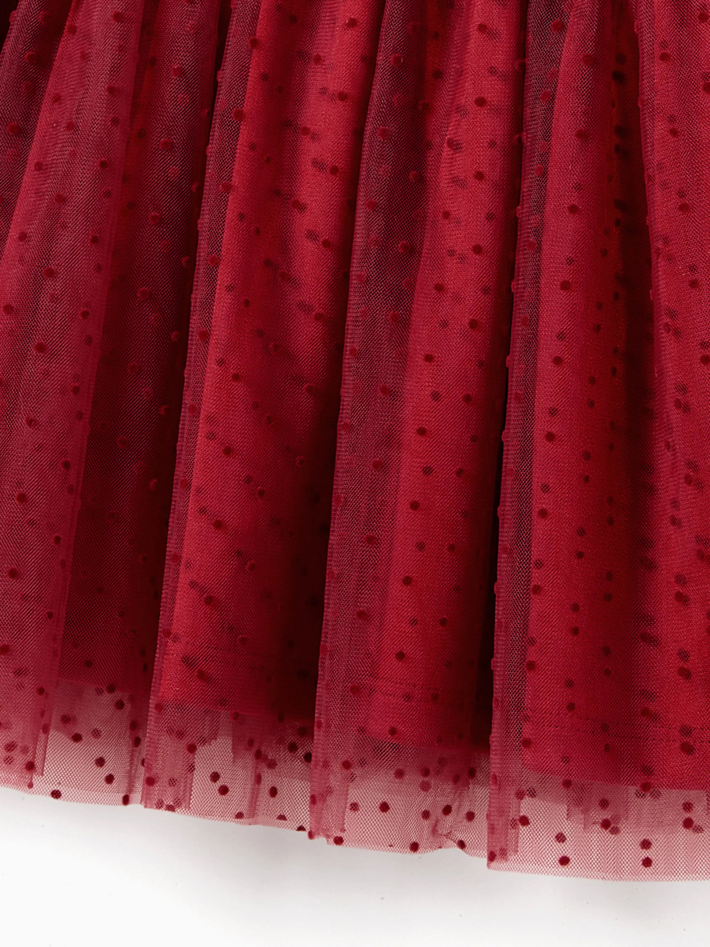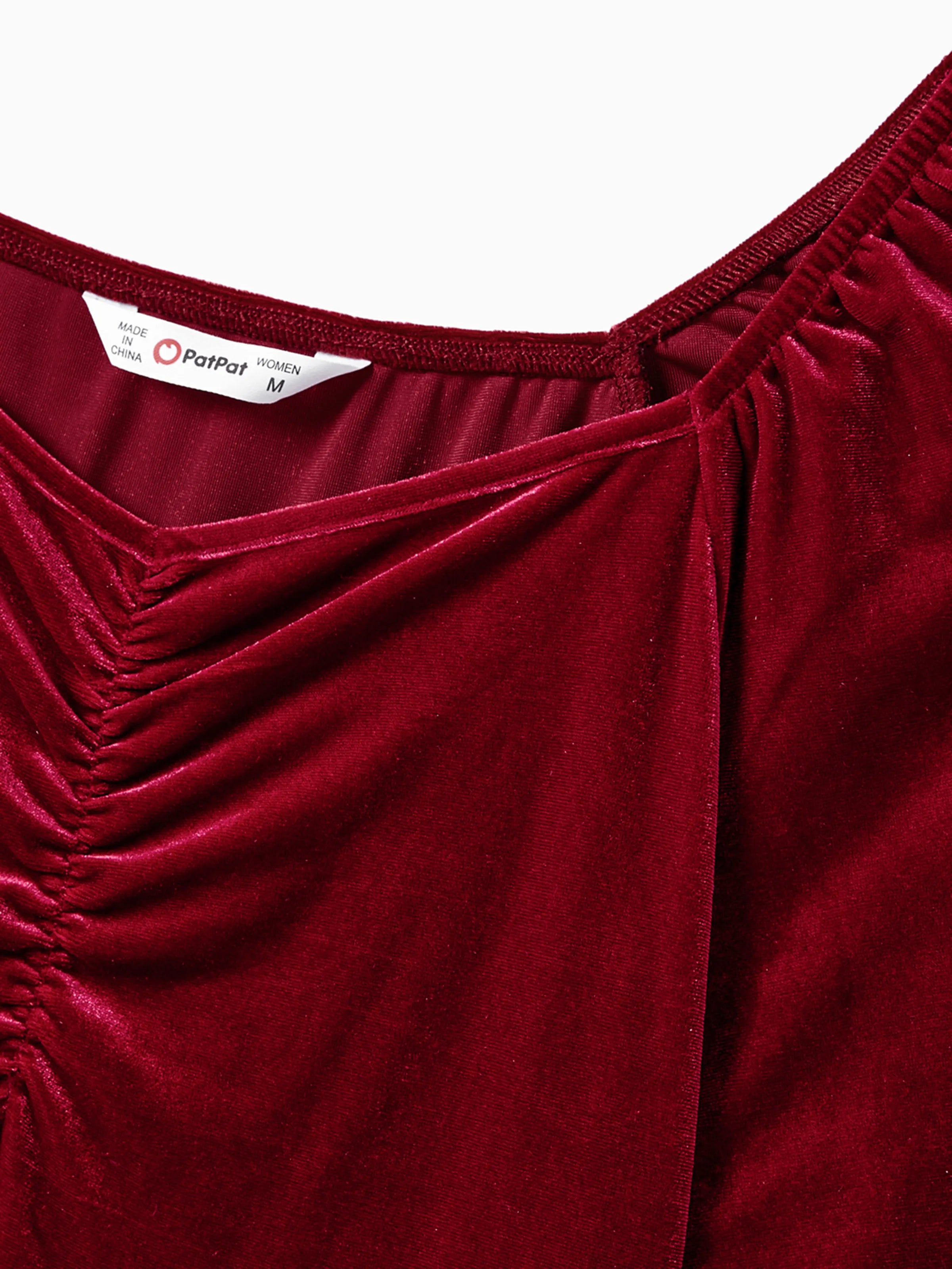 Ensembles de Noël assortis pour toute la famille, hauts à manches longues et robes en velours bordeaux