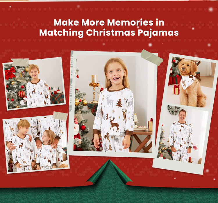 Festive family Christmas pajamas with snowflake, reindeer, and holiday-themed prints, perfect for all seasons.
